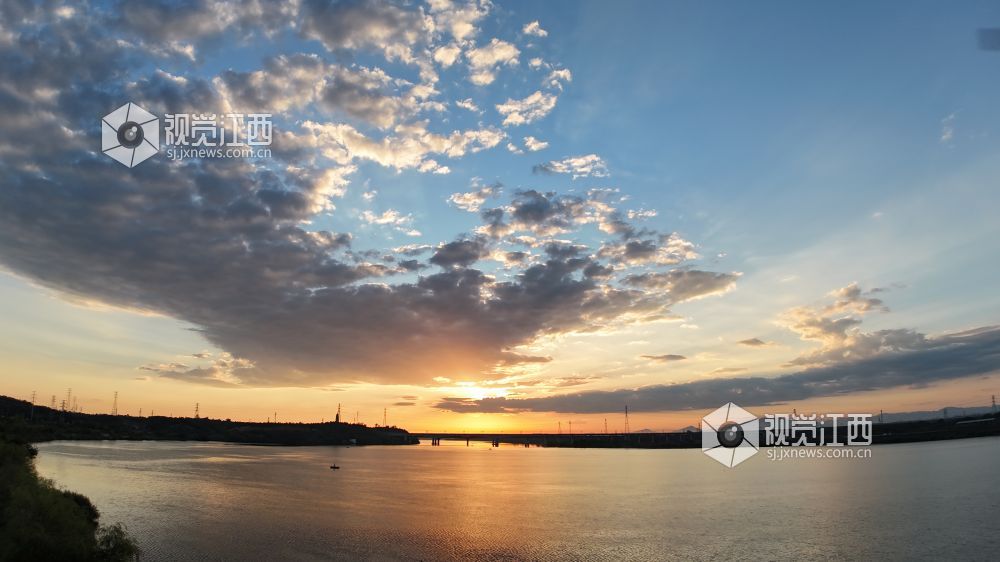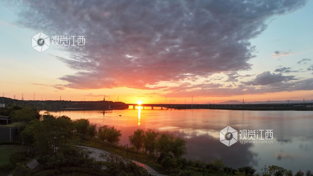 8月17日清晨,江西省吉安市泰和县城的赣江河畔,一轮红日冉冉升起,朝霞漫天,万丈光芒下的蓝天白云、大地、河流交相辉映,绚烂壮美。