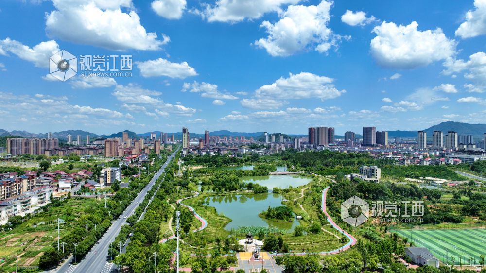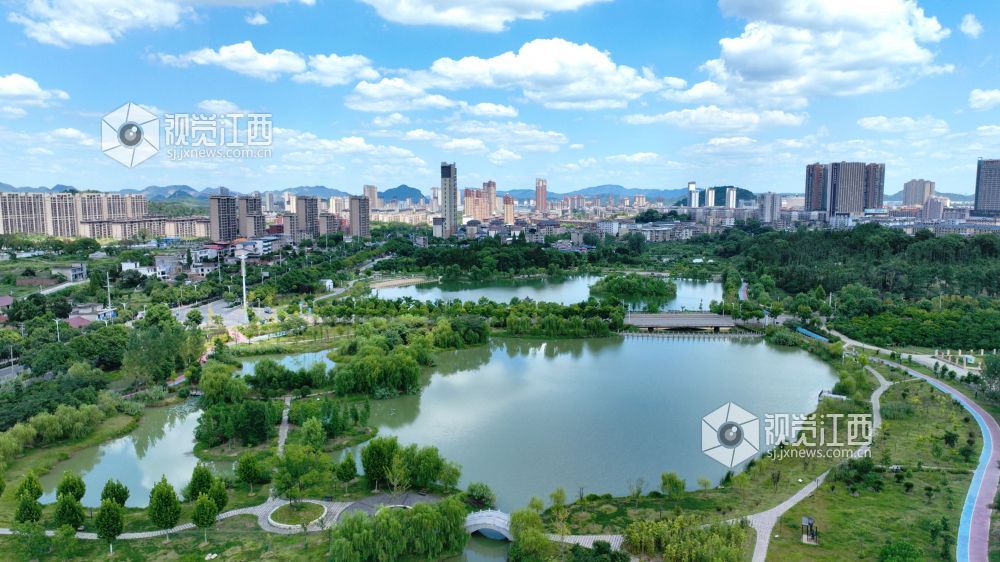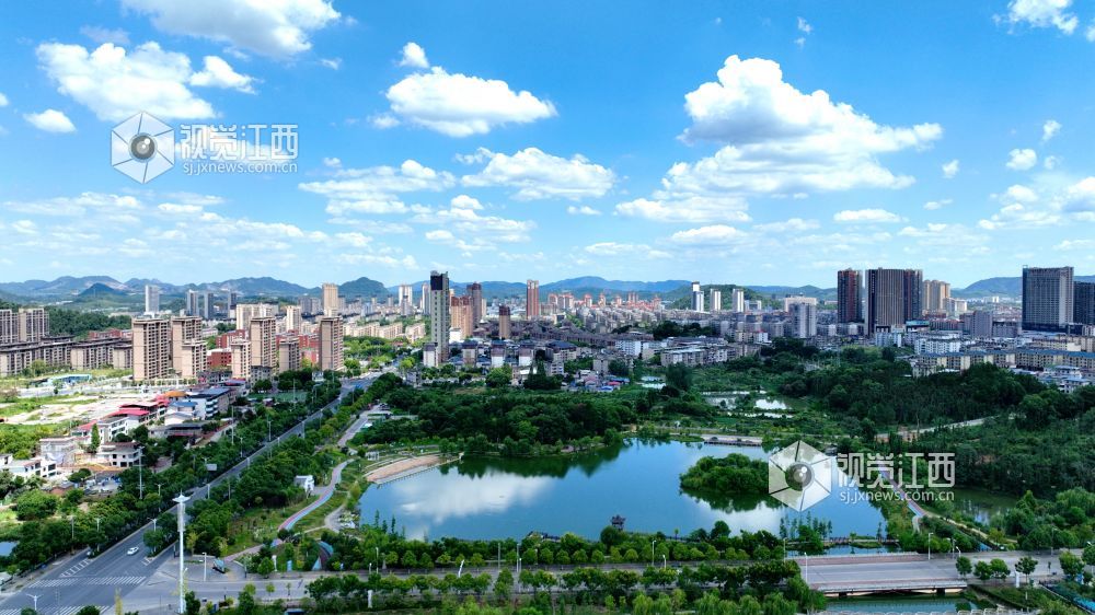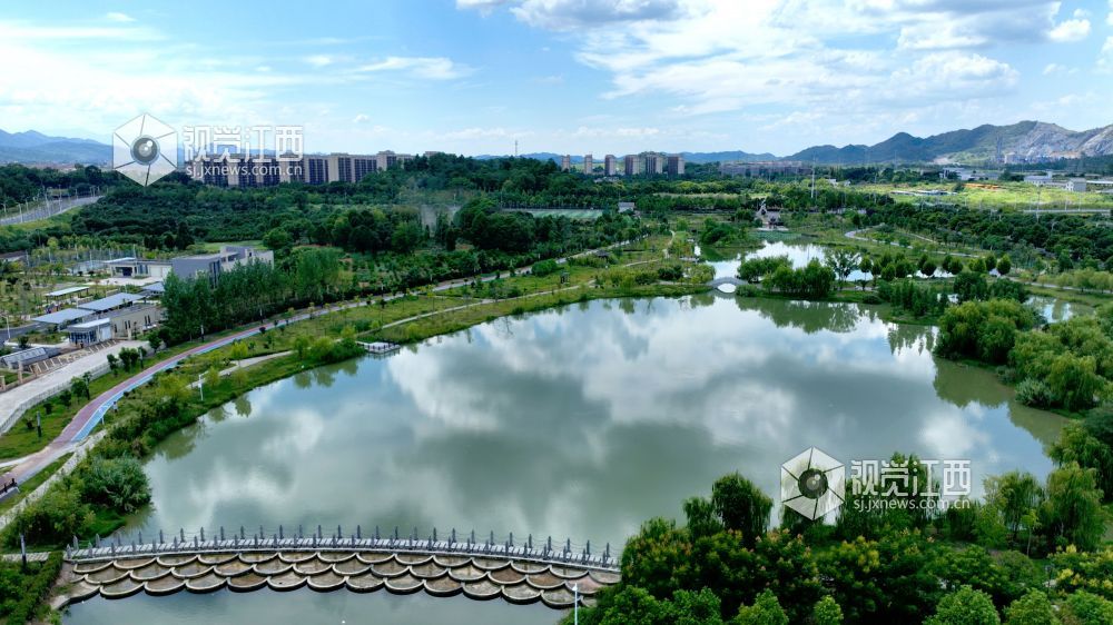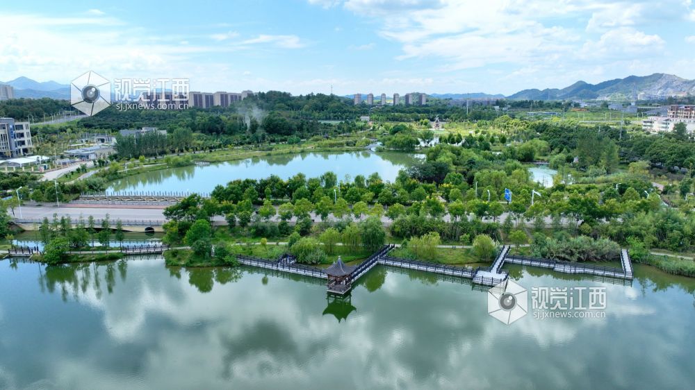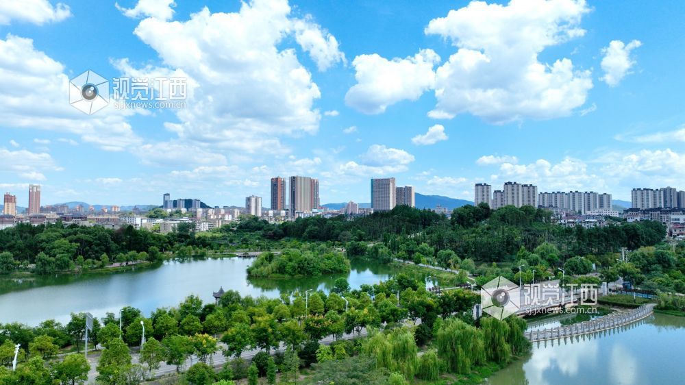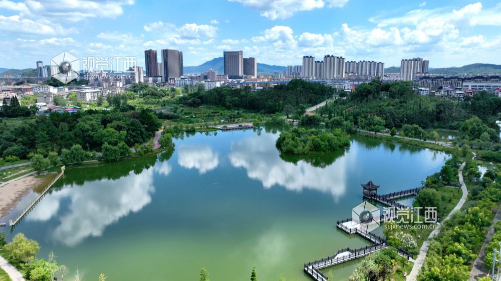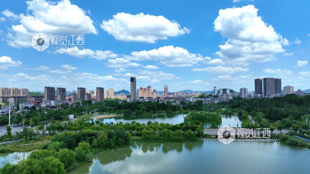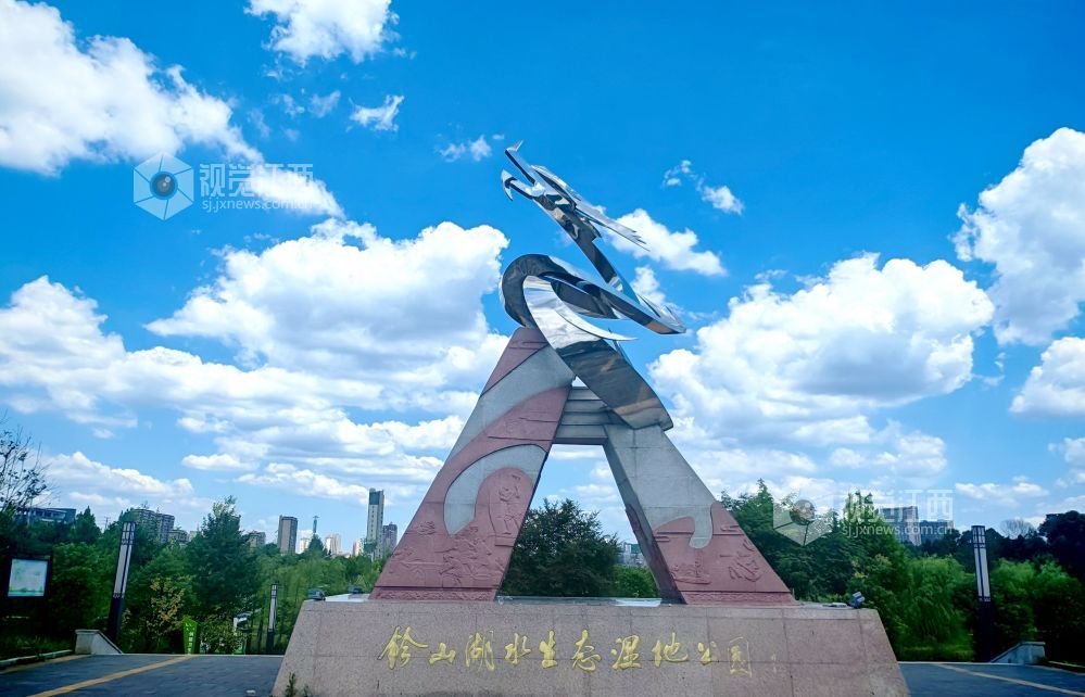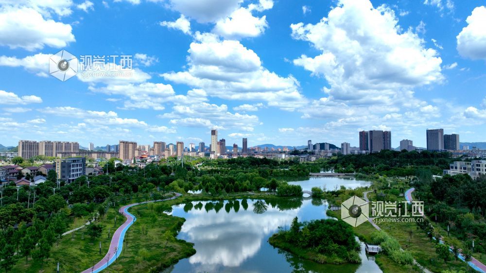 2025年8月17日,在蓝天白云和城中森林映衬下的江西省分宜县钤山湖水生态湿地公园美不胜收。近年来,分宜县坚持“生态优先、绿色发展”理念,在积极推进新型城镇化发展的同时,加大对城乡植绿补绿和生态湿地?;ちΧ?,使蓝天白云成为常态,进一步增强了群众的获得感、幸福感。