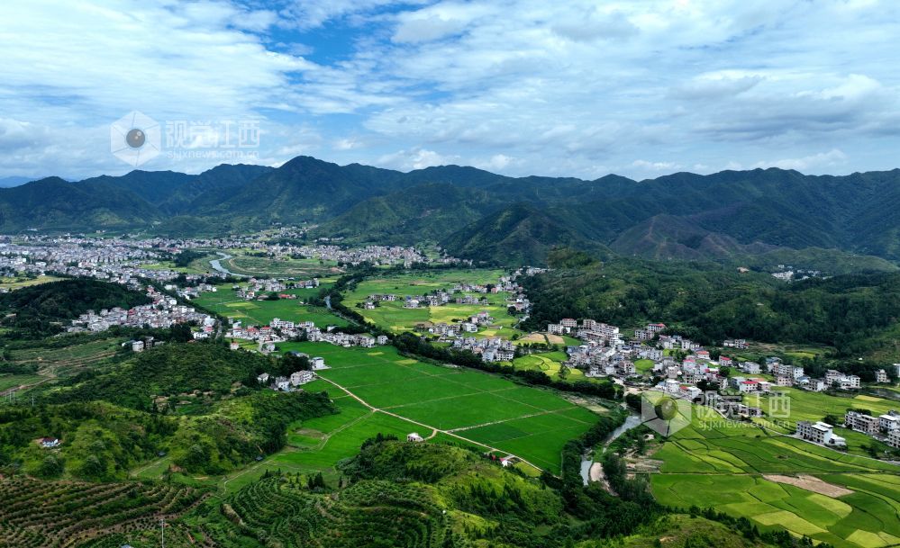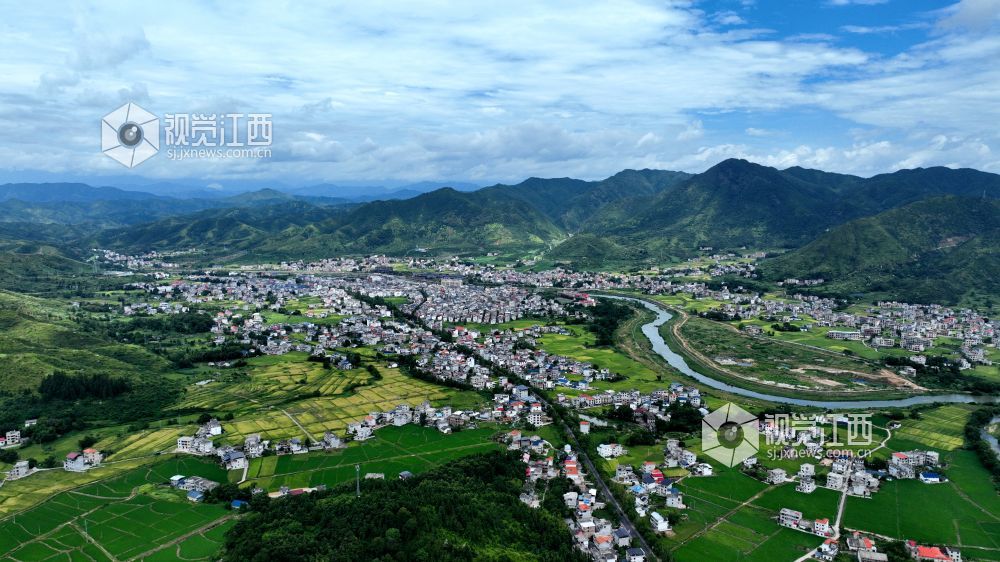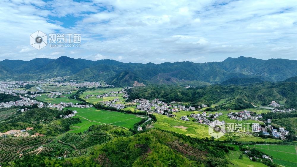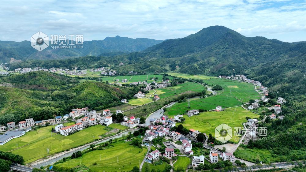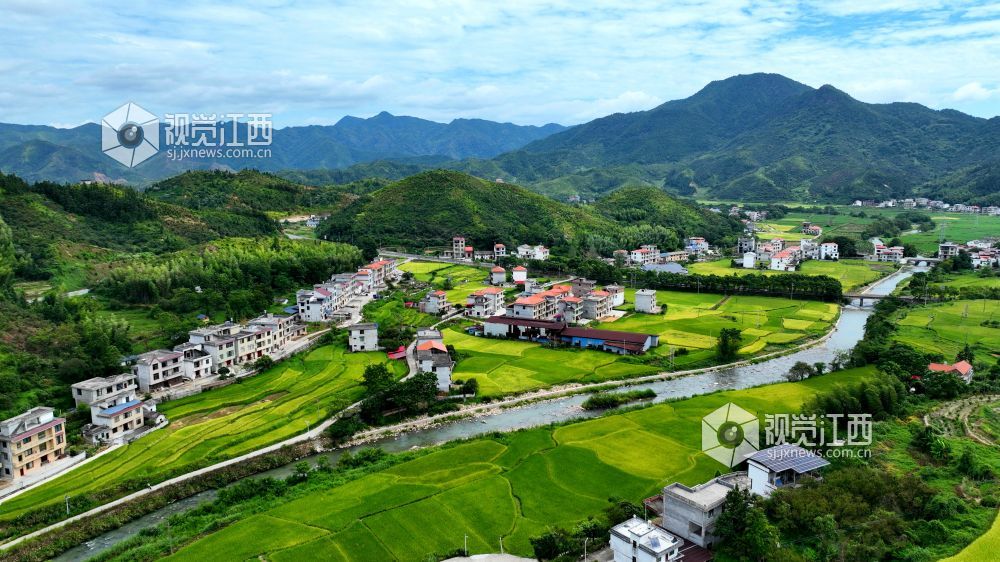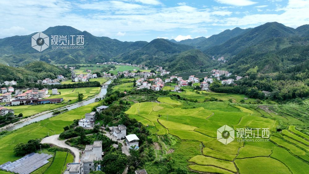 2025年8月20日,江西省吉安市遂川县草林镇唐虞村,青山如黛,房屋错落有致,乡村尽显生态宜人的静谧与美好,构成了一幅人与自然和谐共生的乡村画卷。
