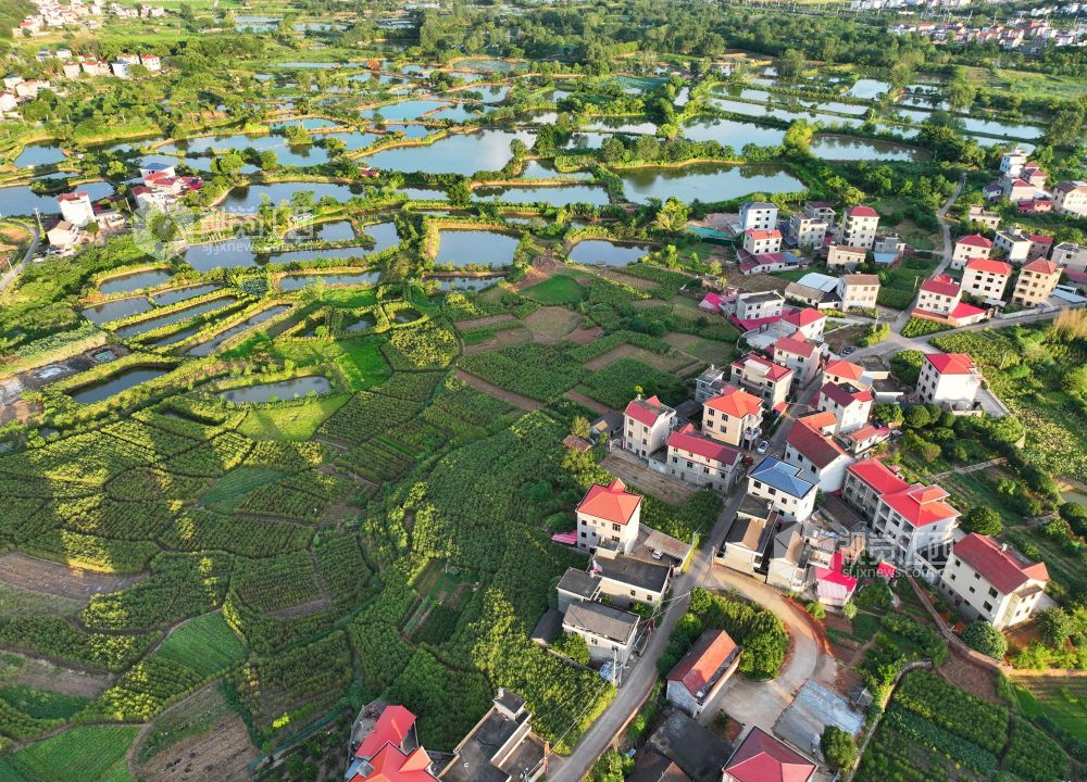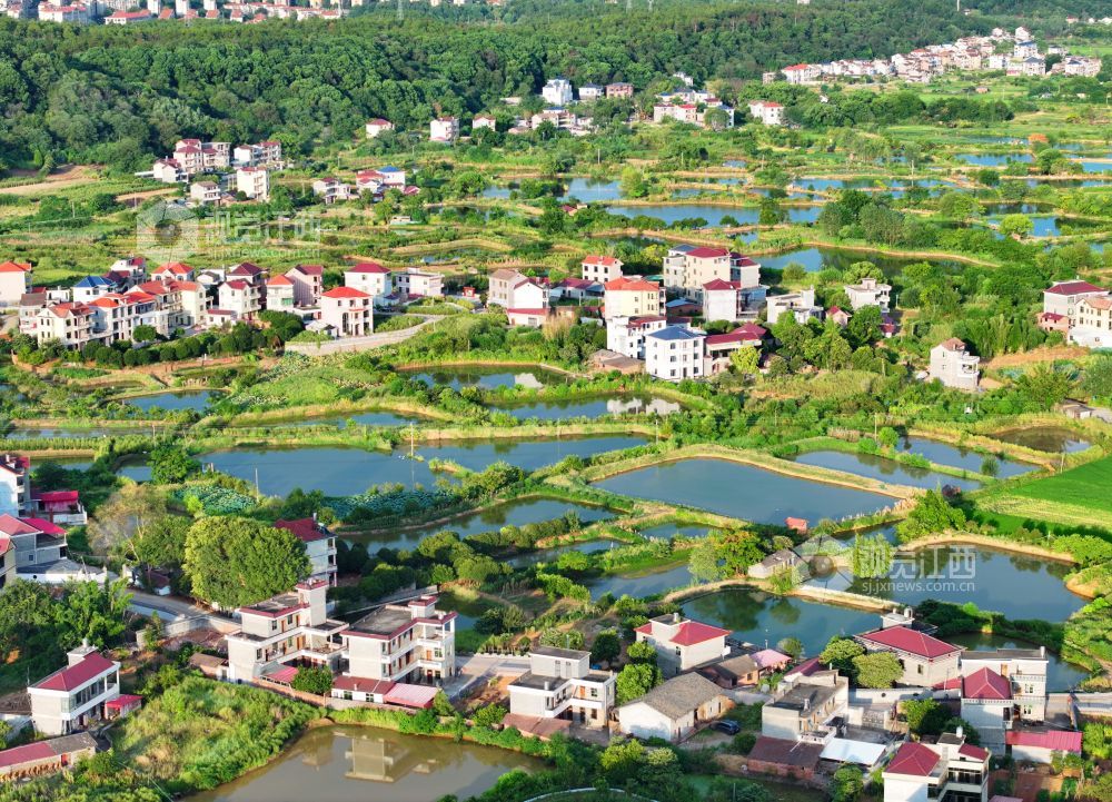 8月24日,江西省吉安市泰和县澄江镇杏岭村,空中俯瞰,生态田园风景如画。