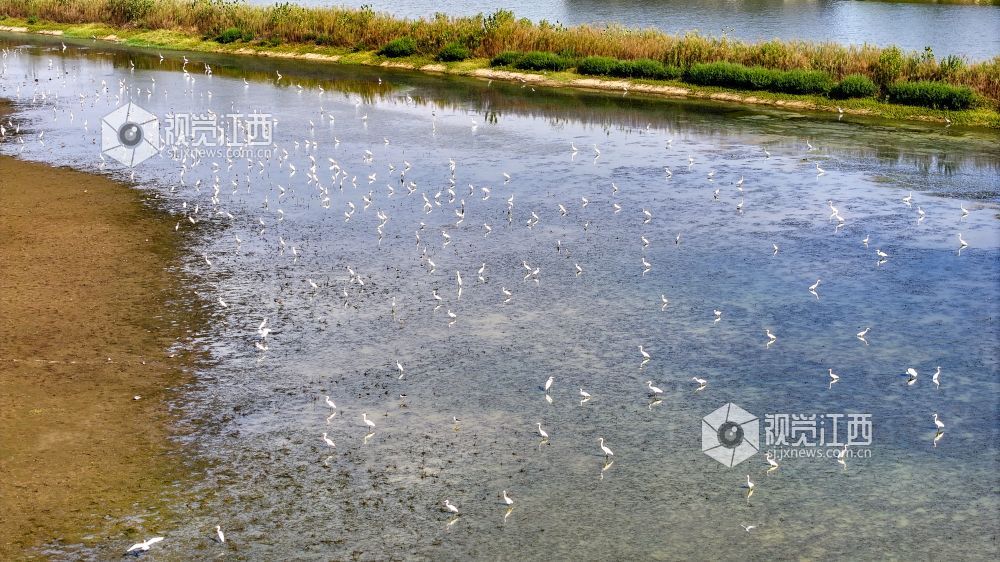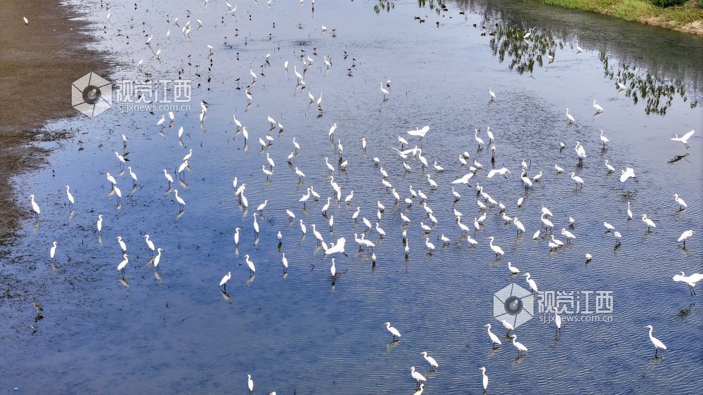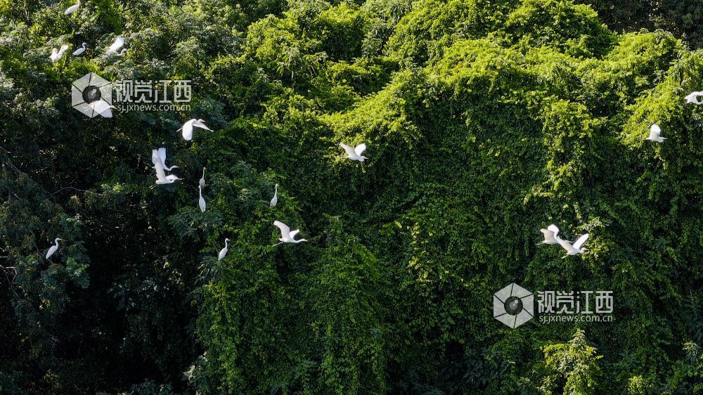 8月26日,初秋的午后,在江西南昌东湖区扬子洲镇莘洲村横河后自然村附近,一群群白鹭或栖息于苍翠绿冠,或嬉戏于滩涂浅泽,灵动身姿与碧水绿树交织成一幅生态美卷,尽显自然之韵。