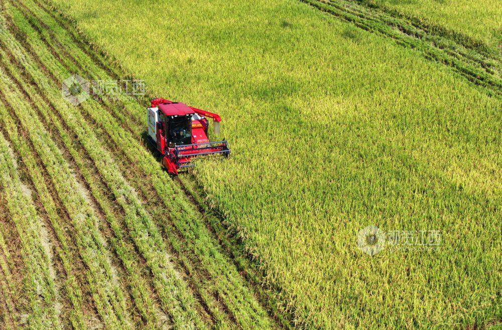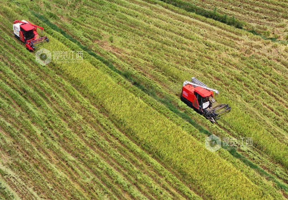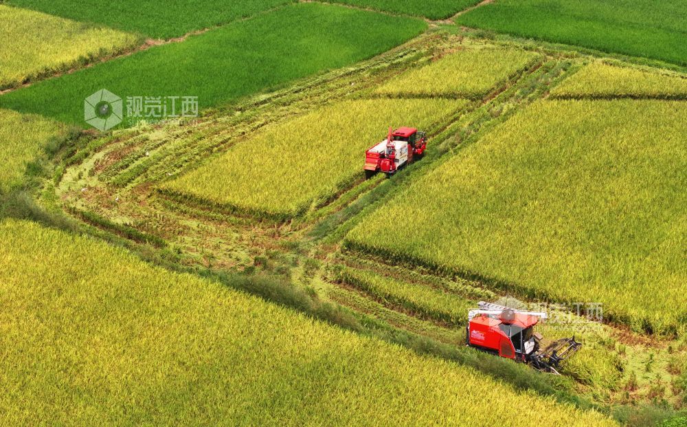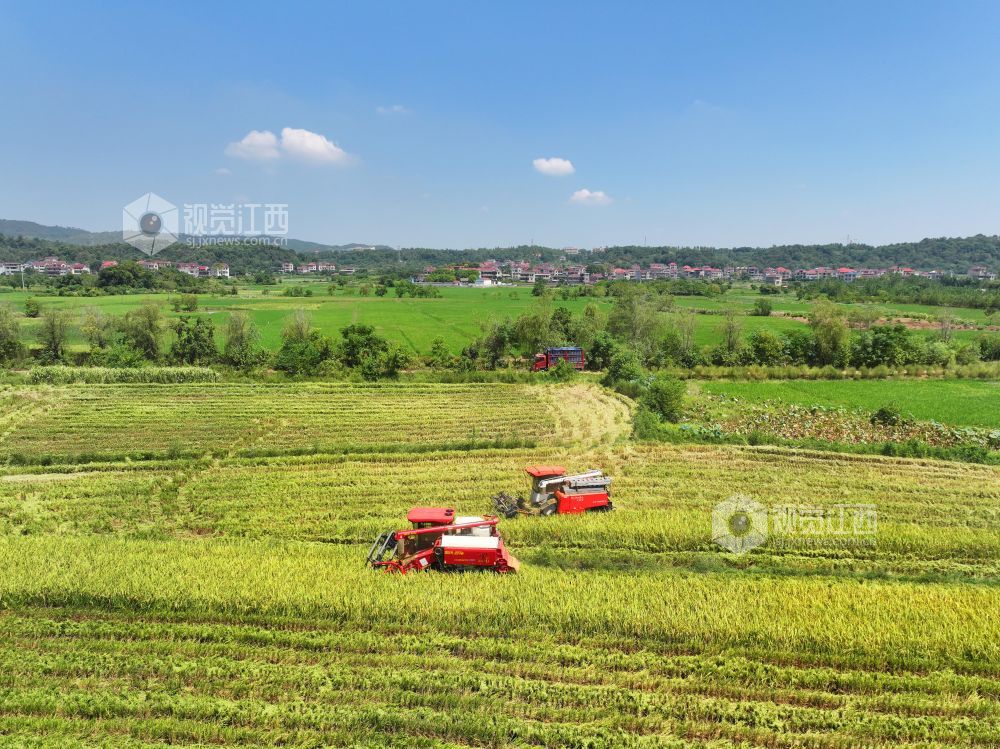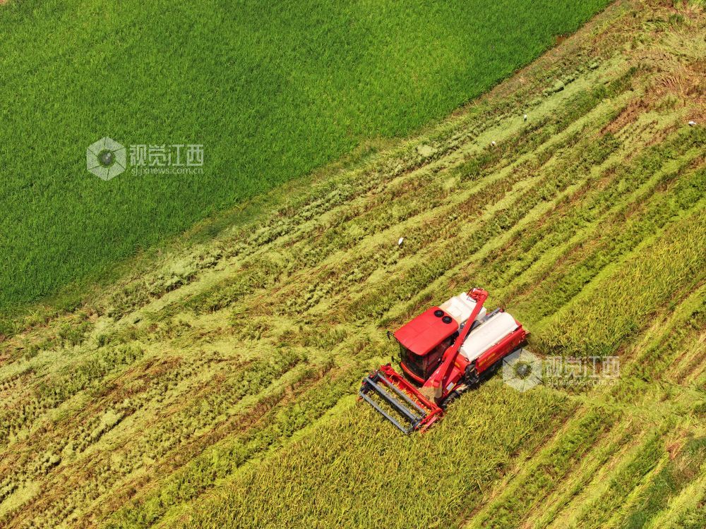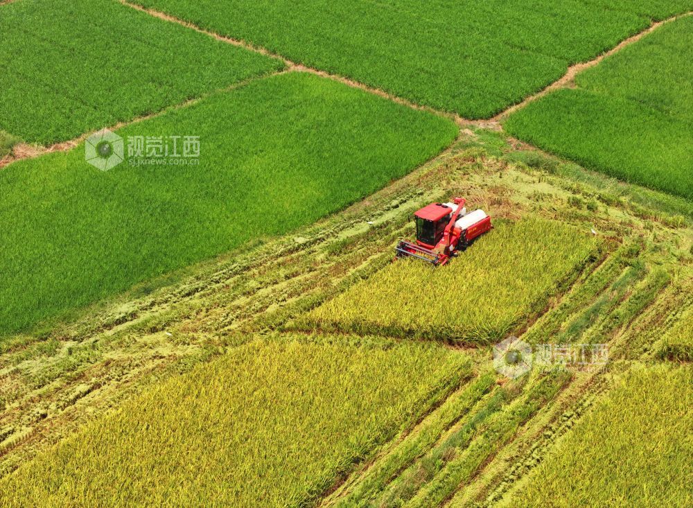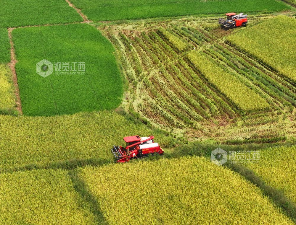 秋收时节,江西省泰和县中稻喜获丰收,农民抢抓农时收割,确保秋粮颗粒归仓。