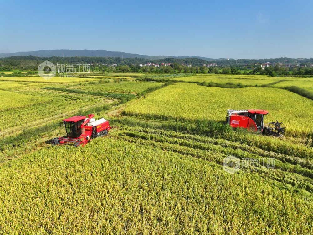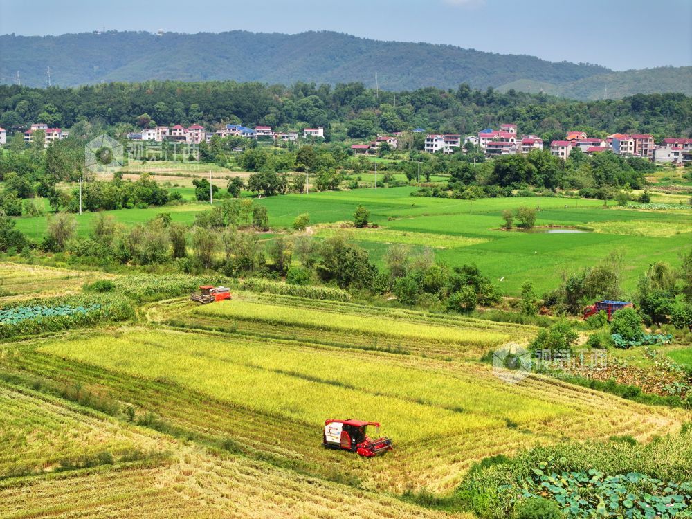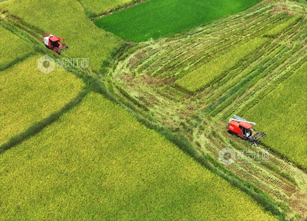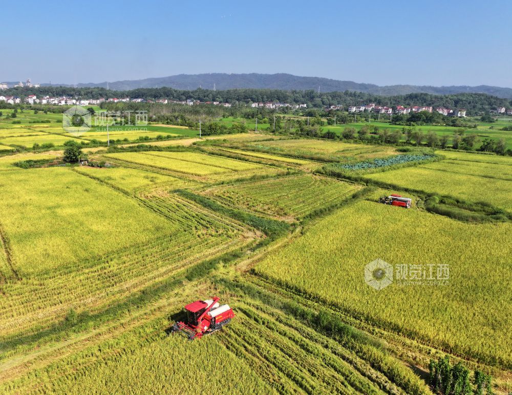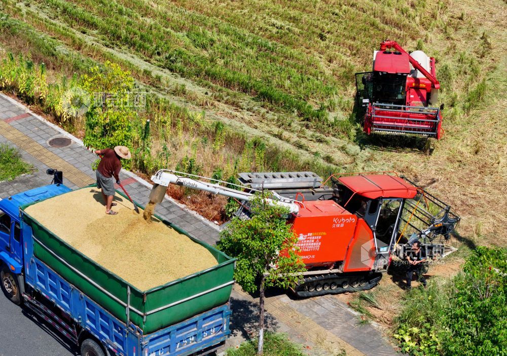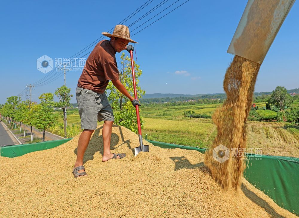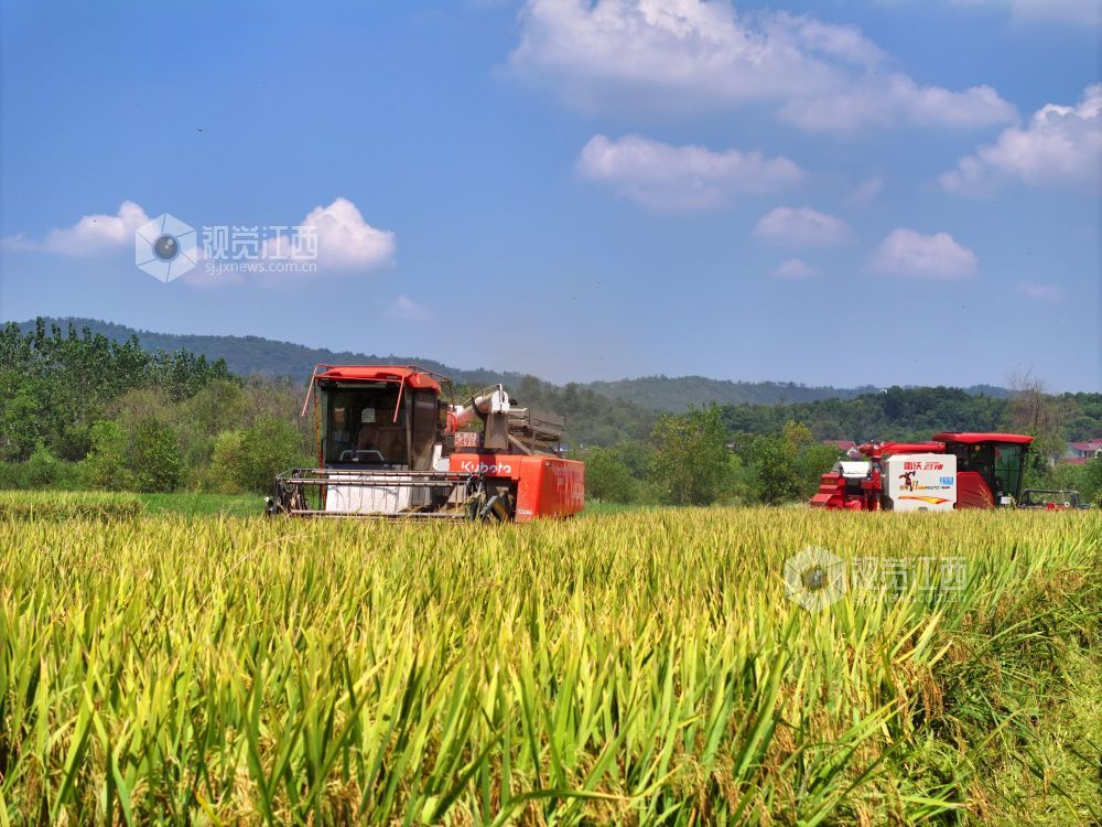 秋收时节,江西省泰和县中稻喜获丰收,农民抢抓农时收割,确保秋粮颗粒归仓。