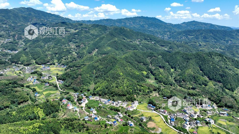 2025年8月28日,江西省遂川县汤湖镇青山如黛,层层茶山与梯田相依,错落民居点缀其间。蜿蜒道路串起乡村烟火,生态底色绘就富民图景画卷,尽显乡村振兴蓬勃生机。