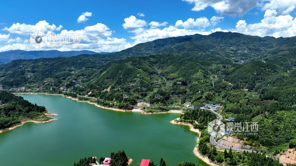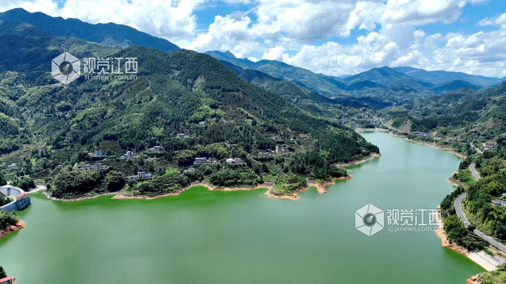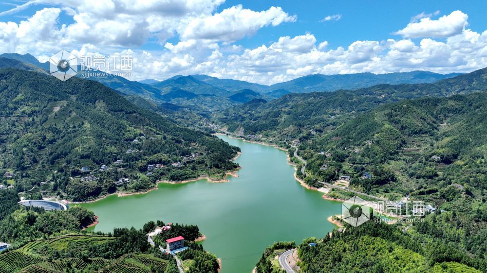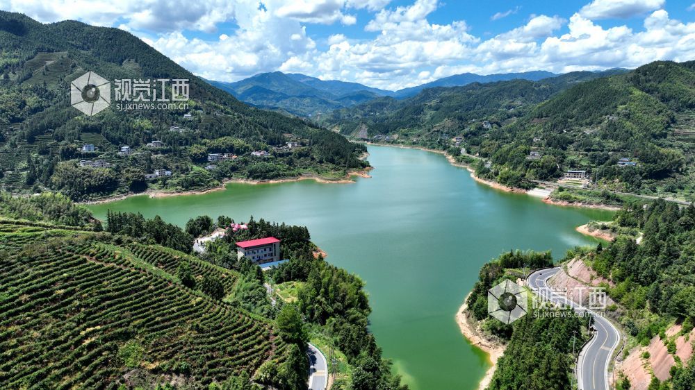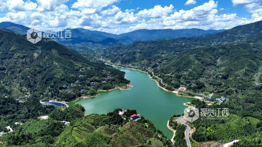 2025年8月29日,航拍江西遂川汤湖镇安村水库群山如黛,植被繁茂,良好生态让山体绿意盎然。水库似翡翠嵌于山间,岸边房屋错落、梯田顺山势铺展,盘山公路蜿蜒如带,山水、村路与生态相融,尽显自然人文和谐之美。