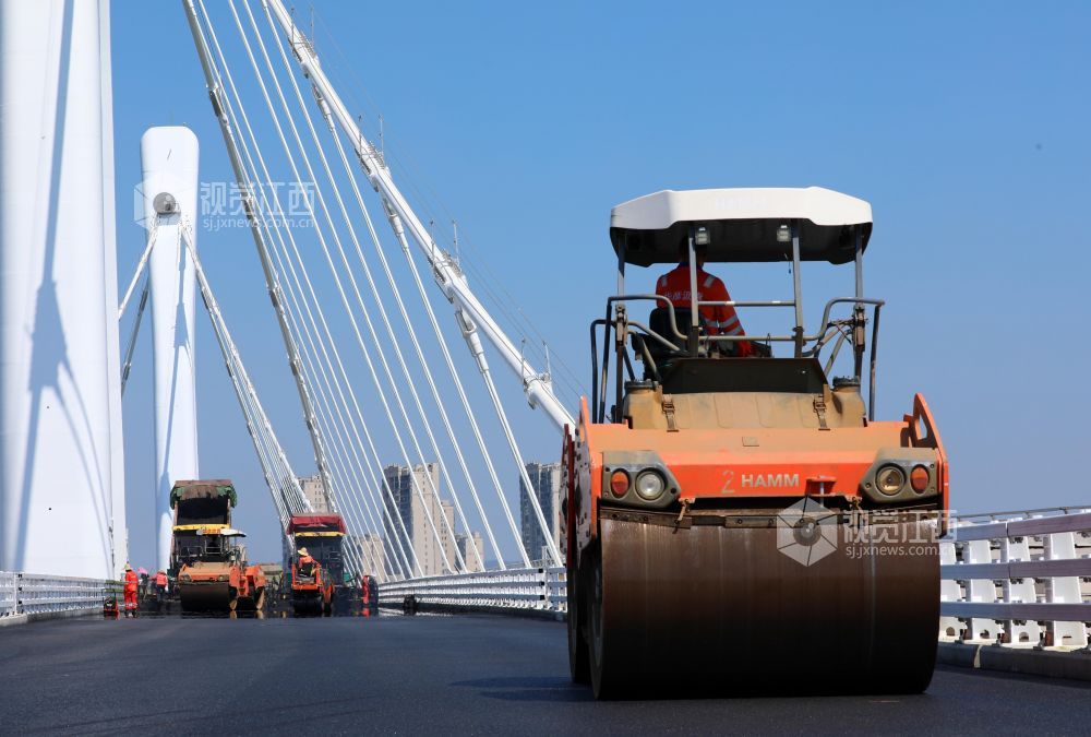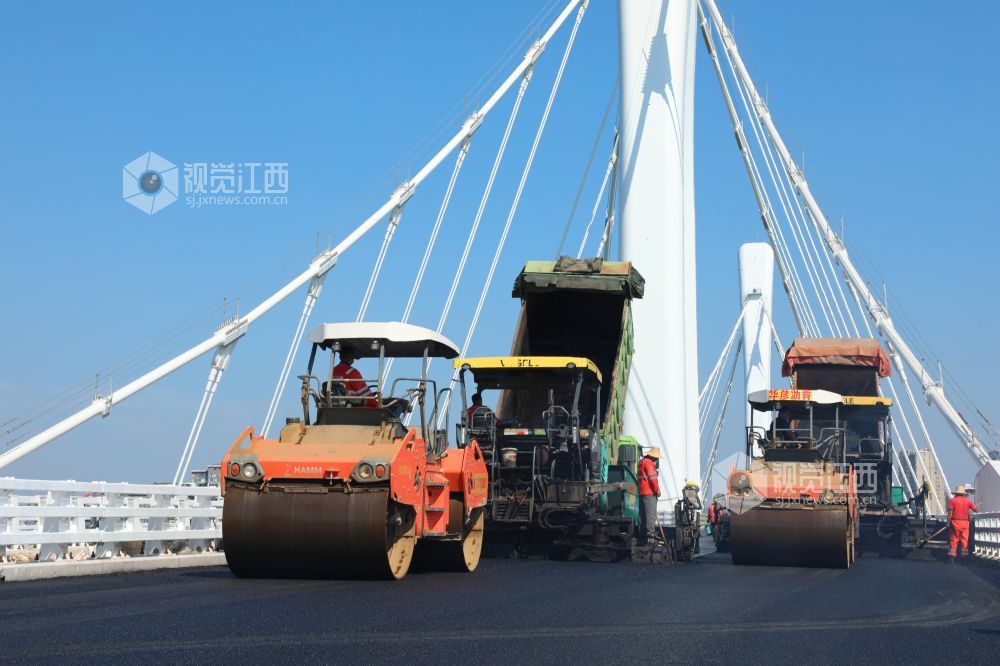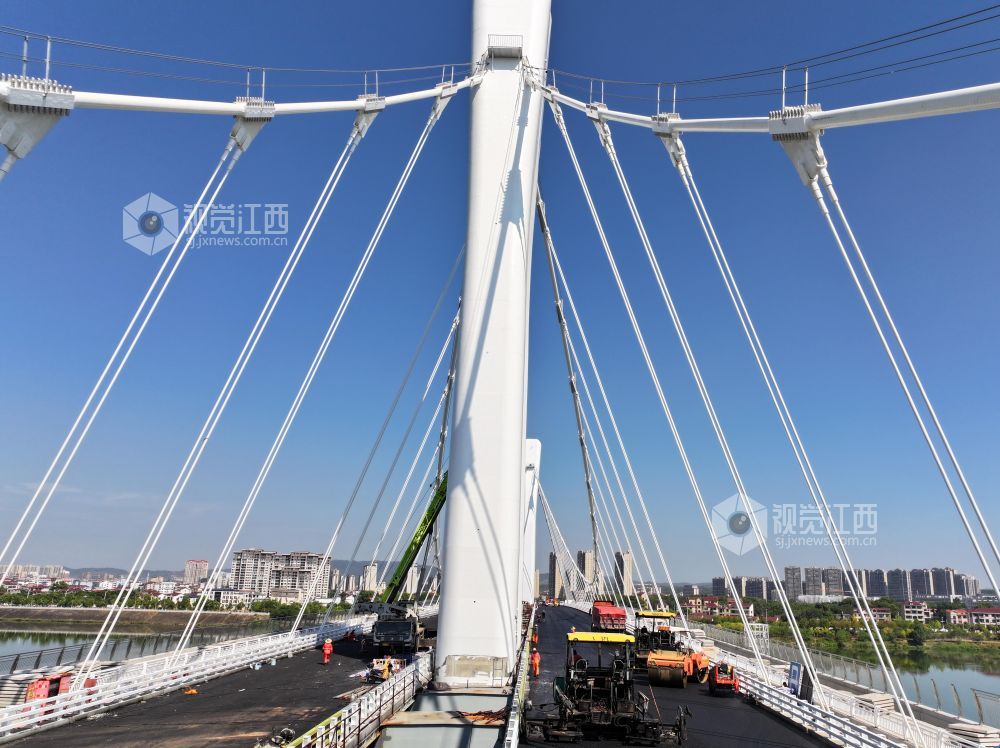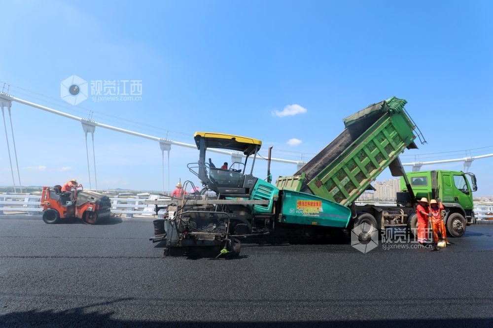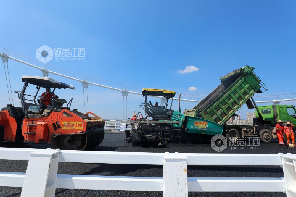 8月30日,江西省吉安市泰和县澄江大桥项目正在进行沥青摊铺施工。澄江大桥项目是江西省重点工程,由中交二航局承建,项目建成后将助力泰和“一江两岸”发展。