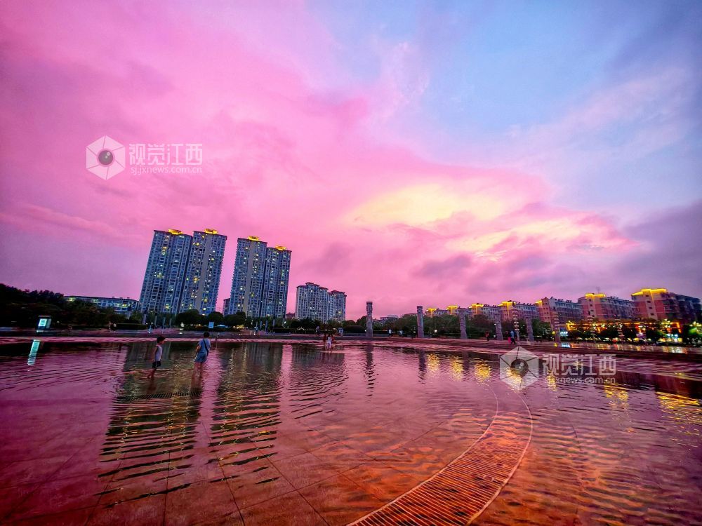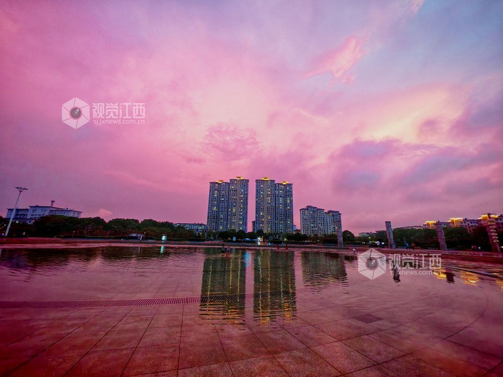 2025年8月31日傍晚,江西省分宜县天工广场上空,云层像是被打翻的调色盘一般绚烂 ,让人分不清是落日染红了云朵,还是云朵晕染了落日,美不胜收。