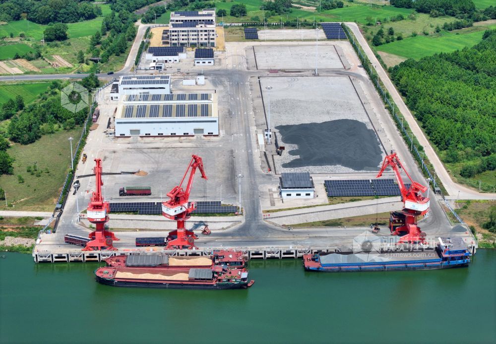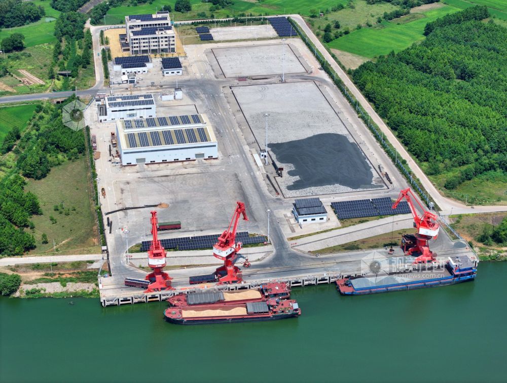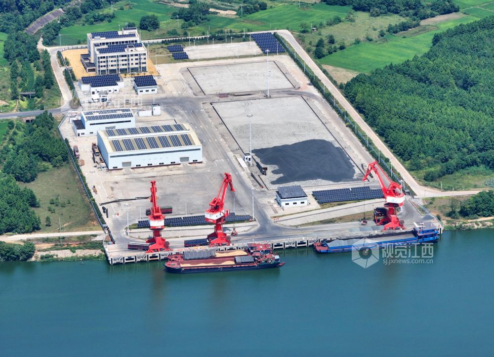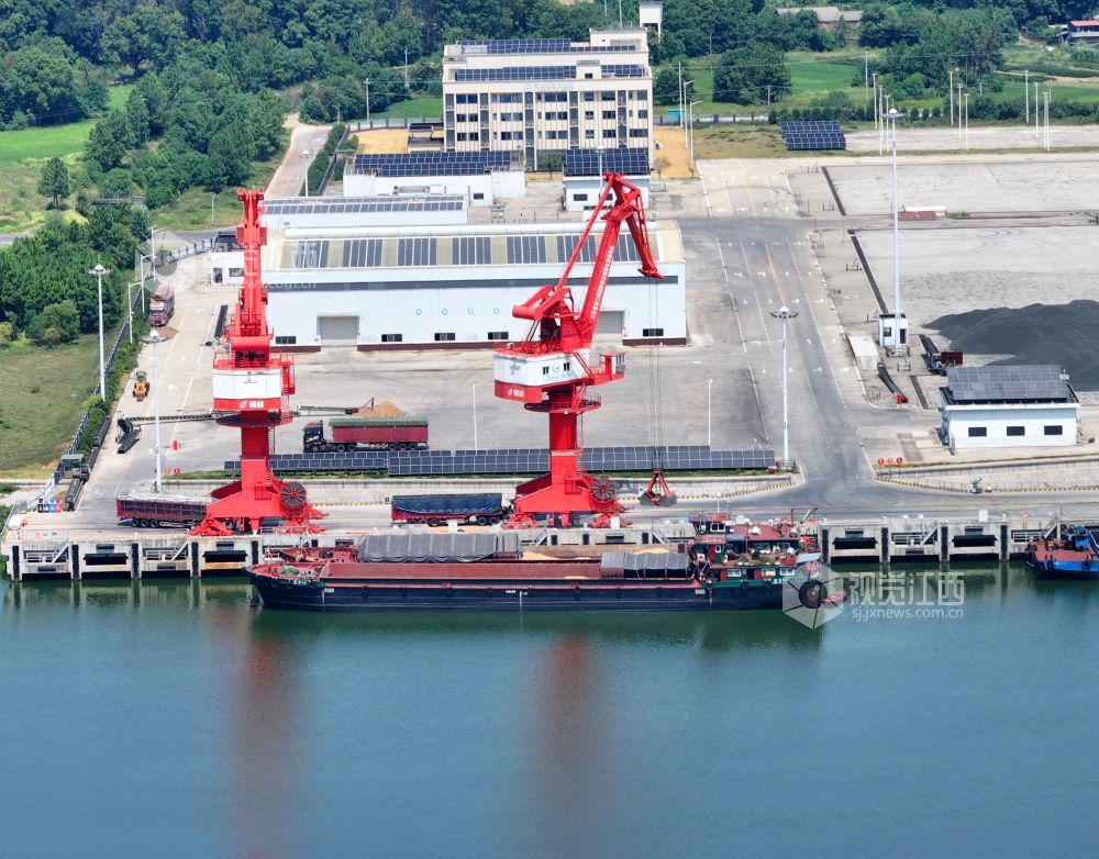 9月6日,江西省港口集团泰和沿溪综合货运码头光伏发电站,光伏板整齐划一,壮观如画。泰和沿溪综合货运码头开发利用码头仓库、楼房屋顶及闲置土地建设光伏发电站,打造绿色码头。?