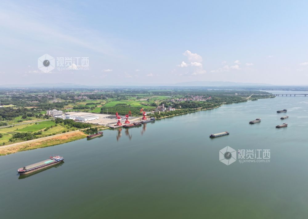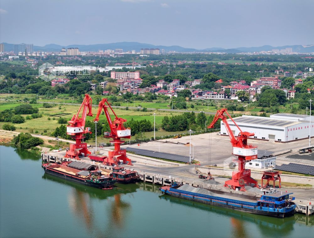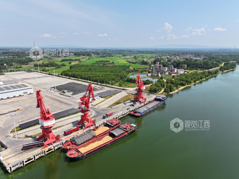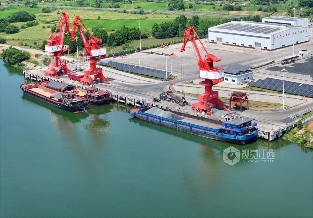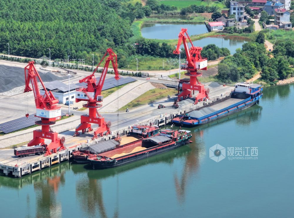 9月6日,江西省港口集团泰和沿溪综合货运码头起重机正在装卸货物作业。