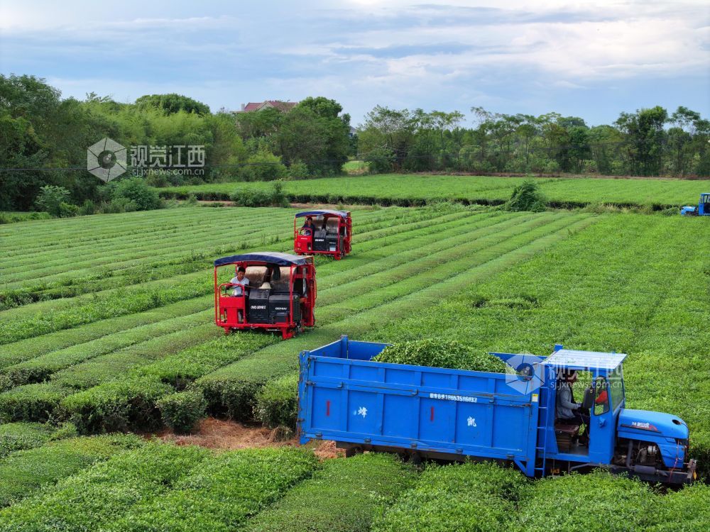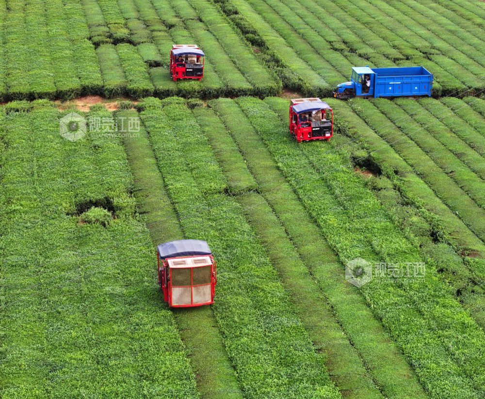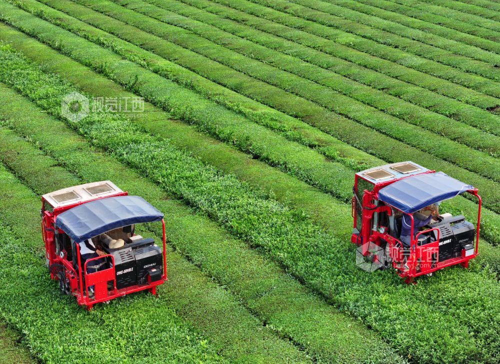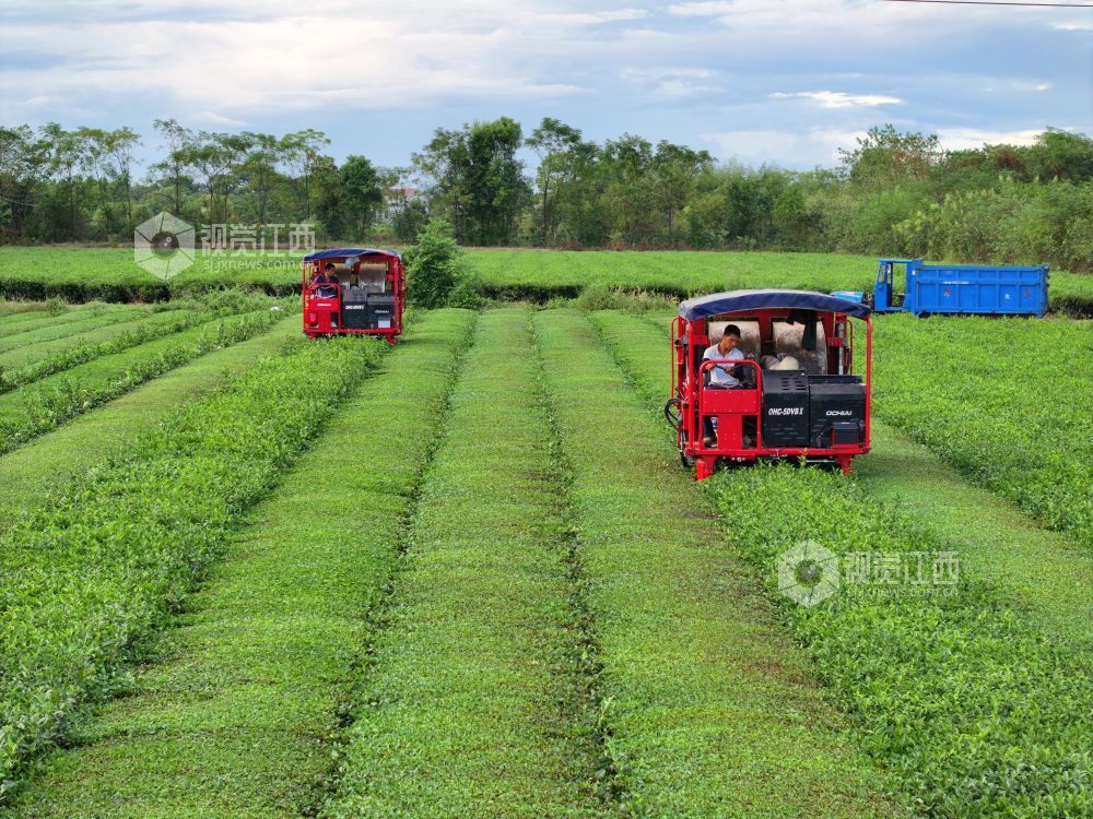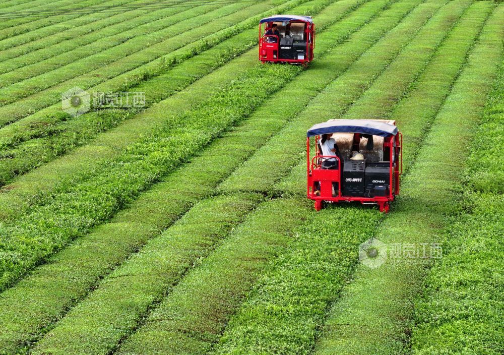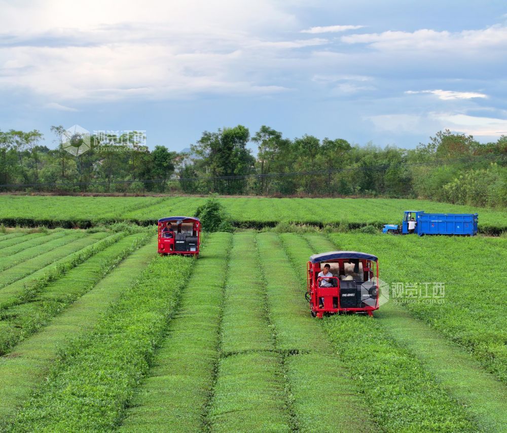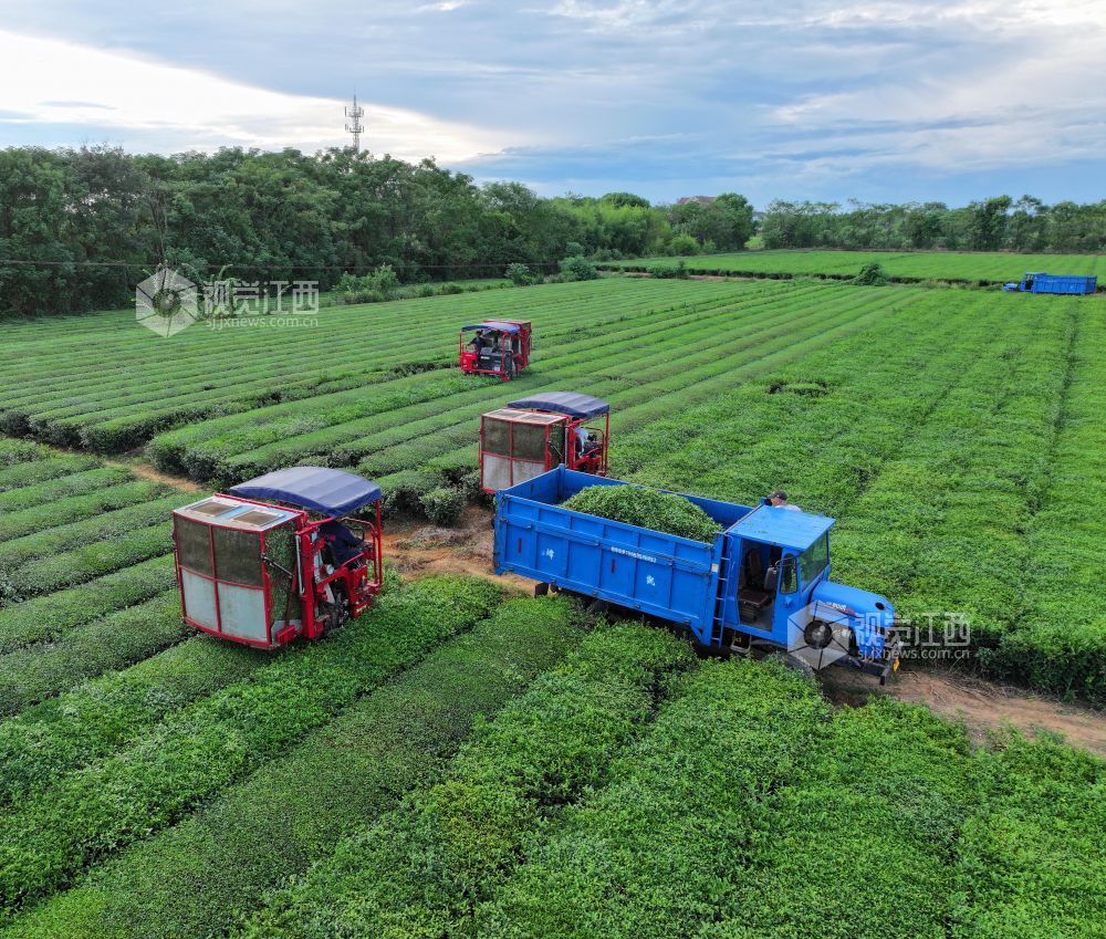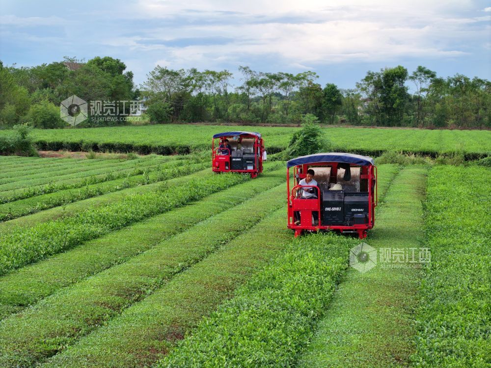 9月8日,江西省吉安市泰和县泰和垦殖场茶园,工人驾驶智能采茶机正在采收秋茶。