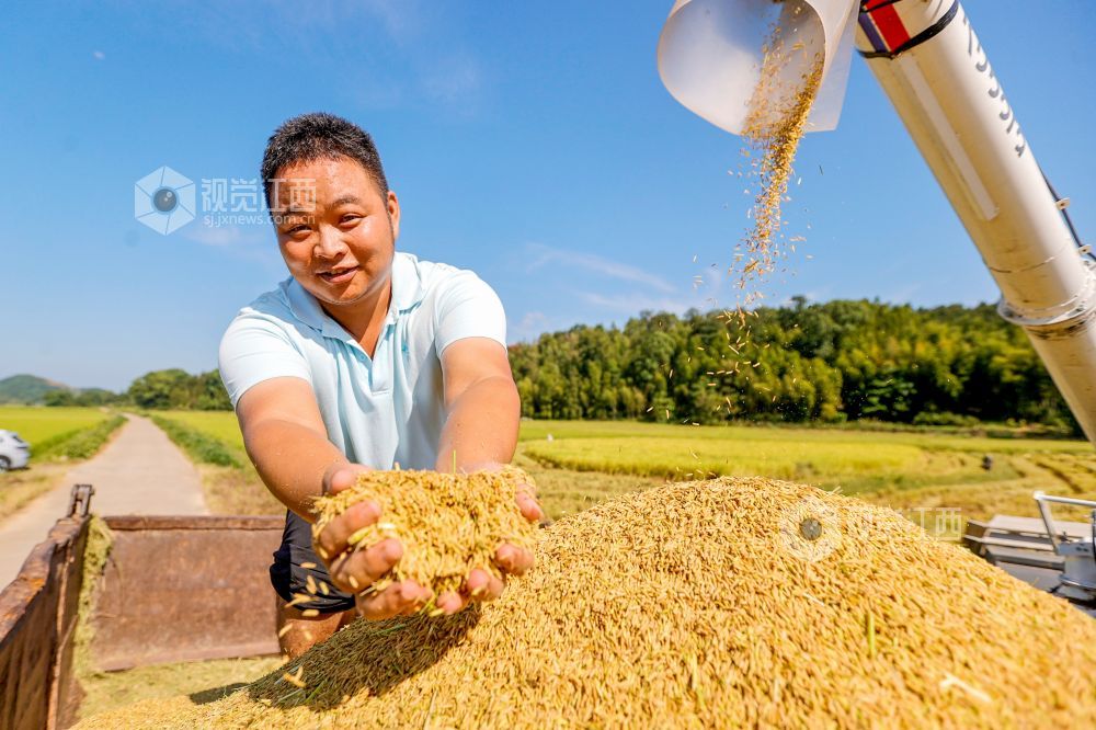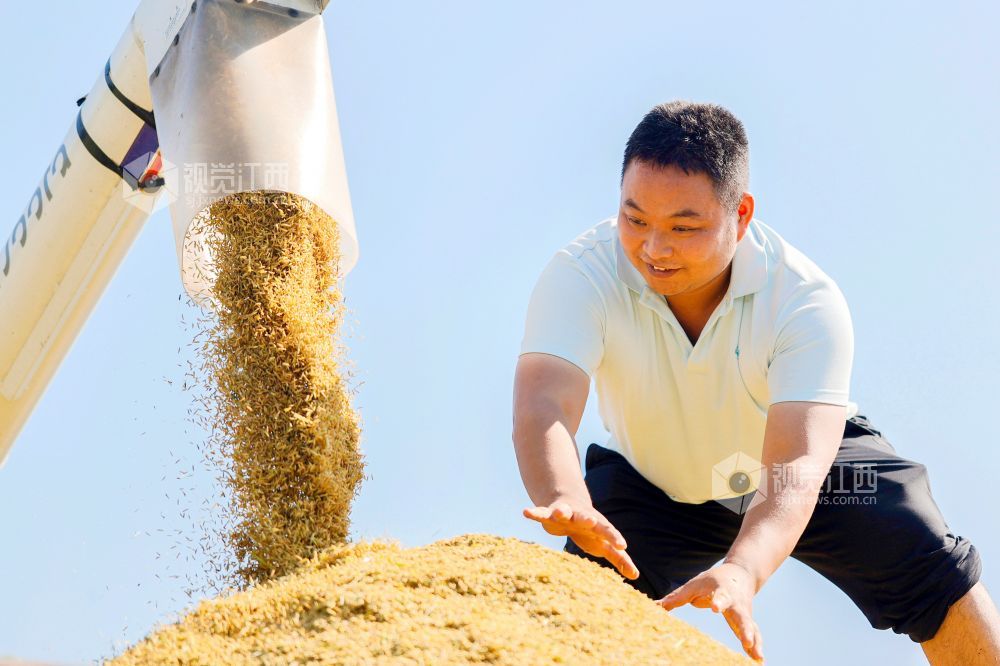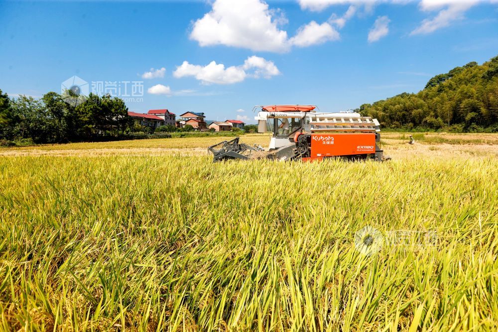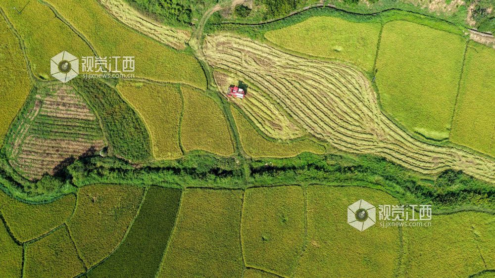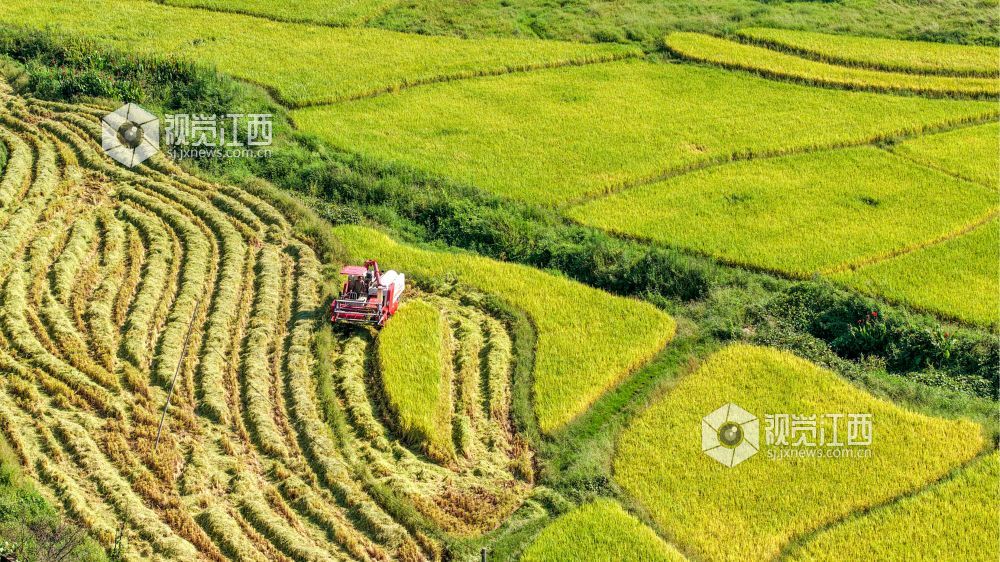 秋收时节,江西省吉安市峡江县中稻迎来丰收季,当地农民抢抓农时收割中稻,确保丰产丰收。