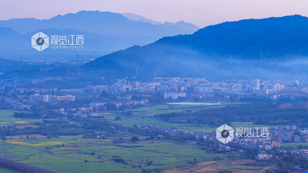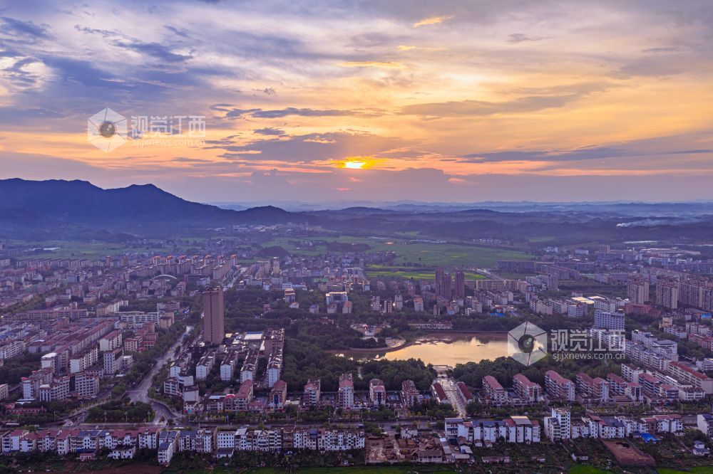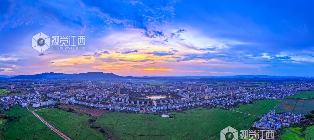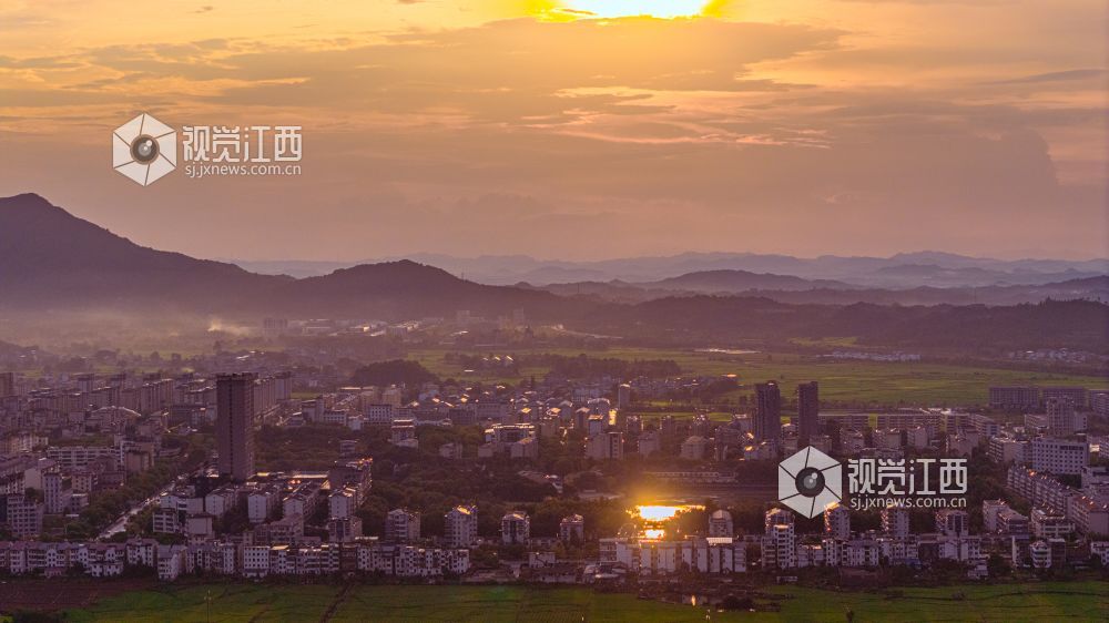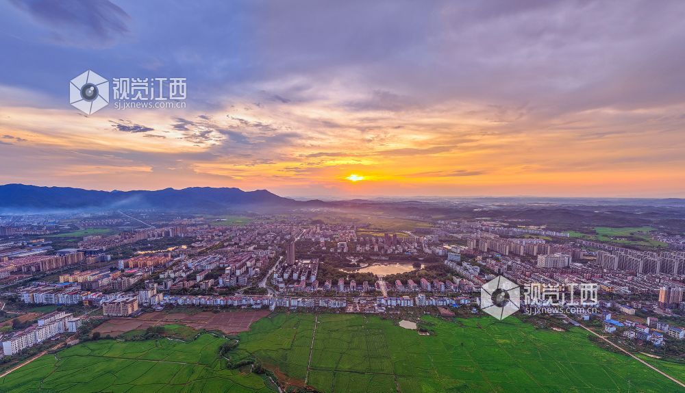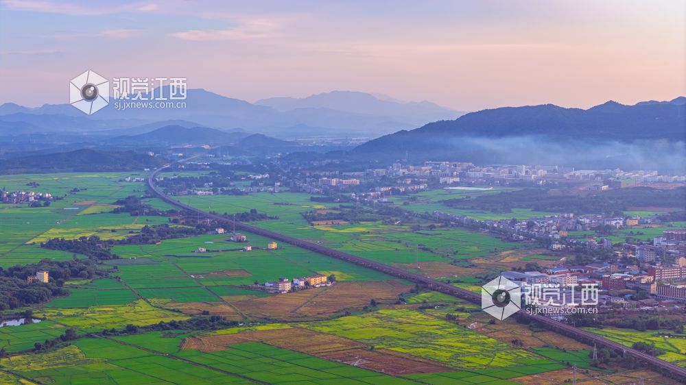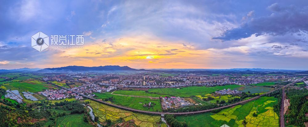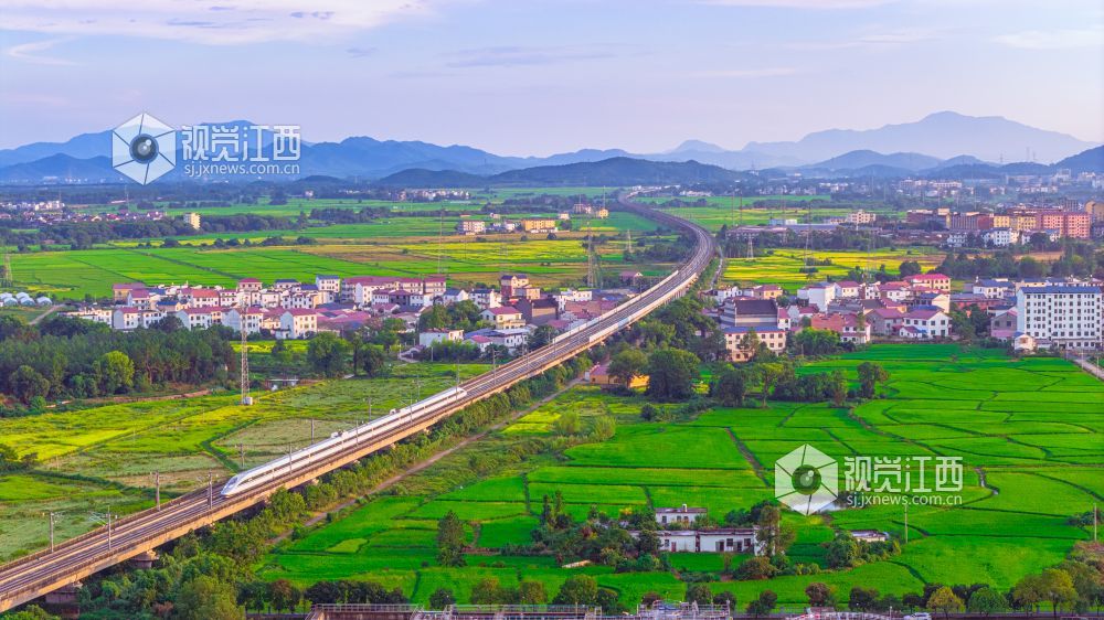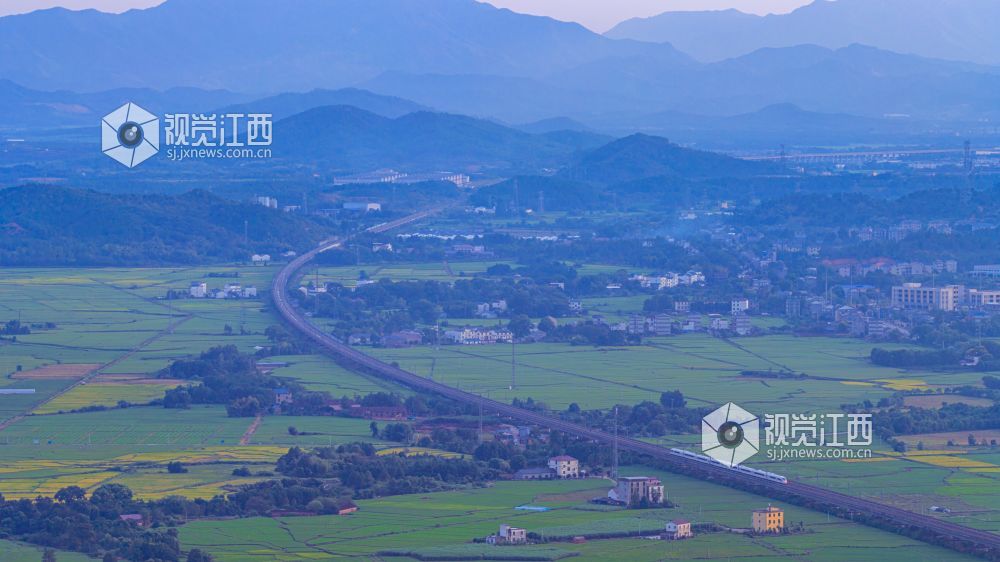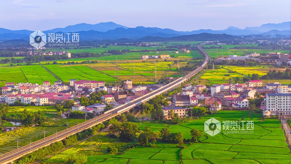 9月12日,在江西省吉安市峡江县水边镇的秋日里,一面是高铁如银梭穿织金黄田园,村落与远山相映成趣,绘就乡村振兴的动感图景;一面是晚霞似金绸铺展城镇天际,建筑与田野在余晖中交融,晕染出小城发展的静谧诗意。一动一静间,尽展赣中乡村的秋之韵、发展之美。