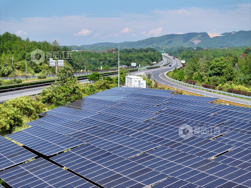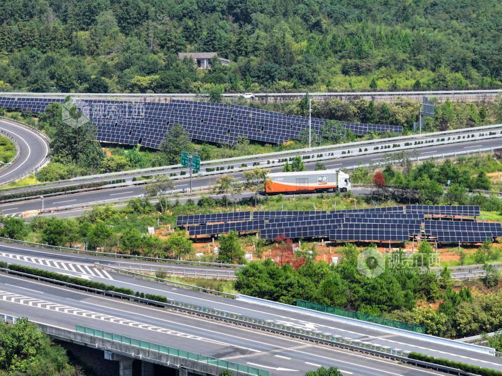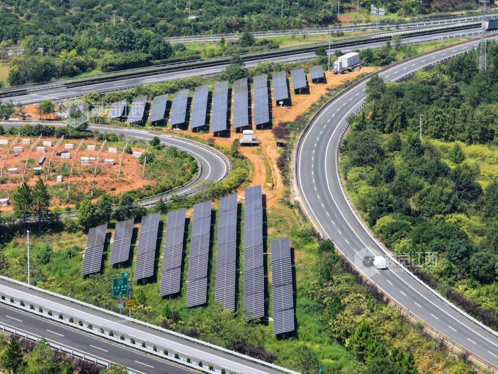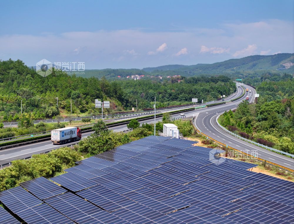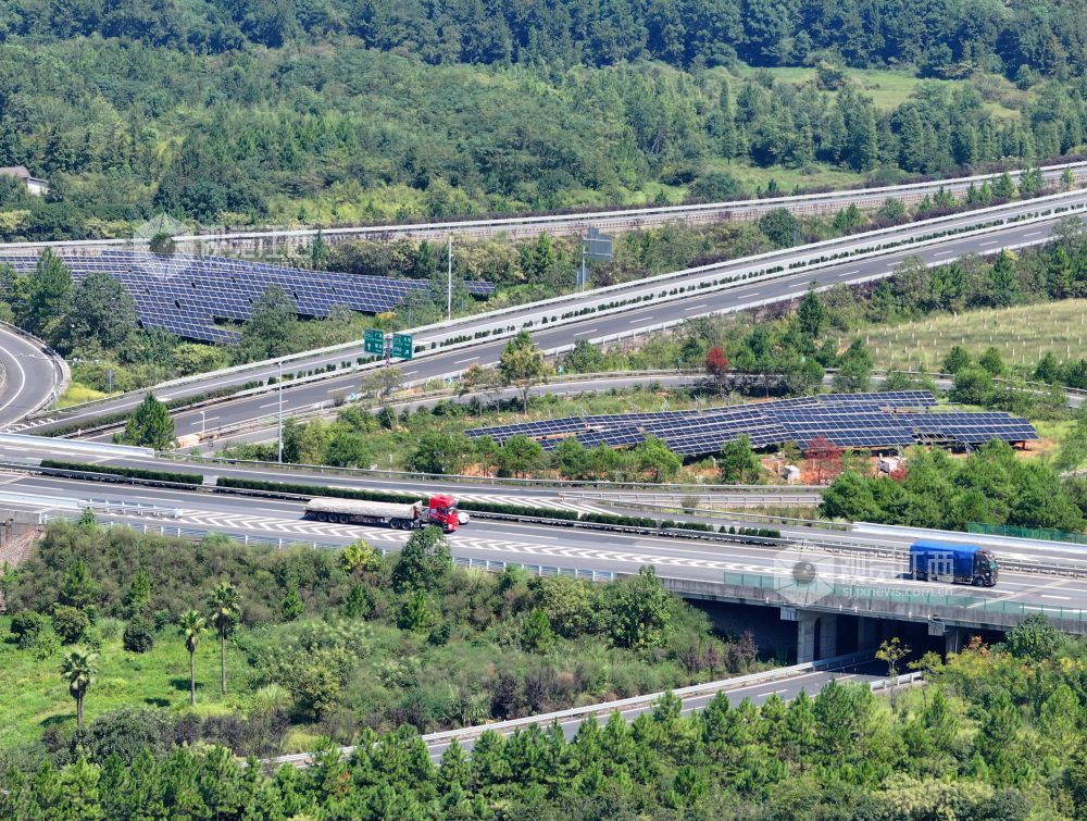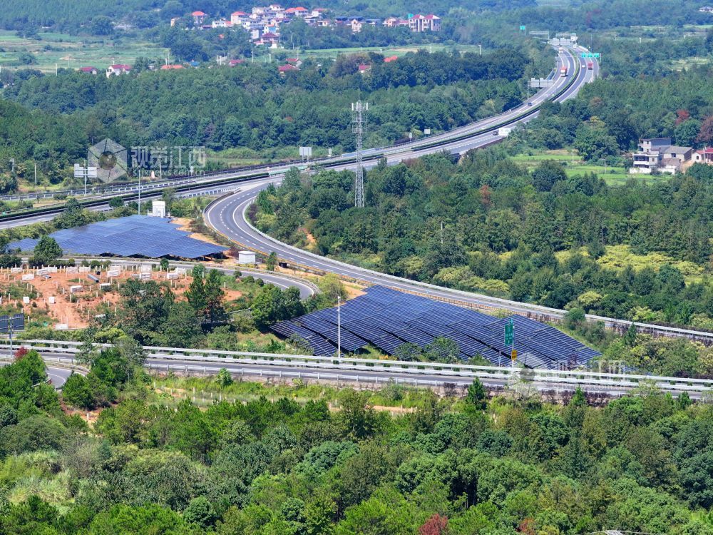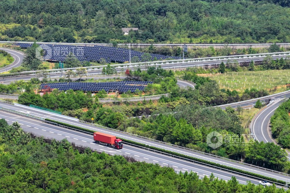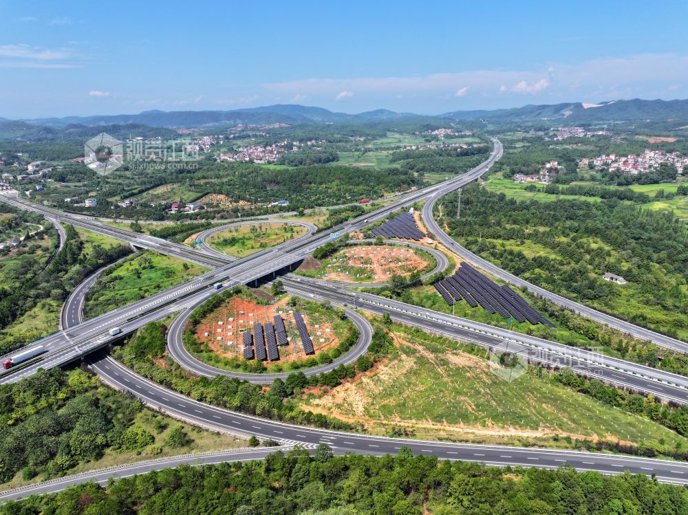 9月14日,江西省吉安市泰和县澄江镇大塘村境内,高速公路互通枢纽光伏发电产生的清洁能源“照亮”交通出行路。江西交投新能源集团充分开发利用高速公路互通枢纽闲置地,建设互通枢纽分布式光伏发电项目,助力高速公路绿色发展。