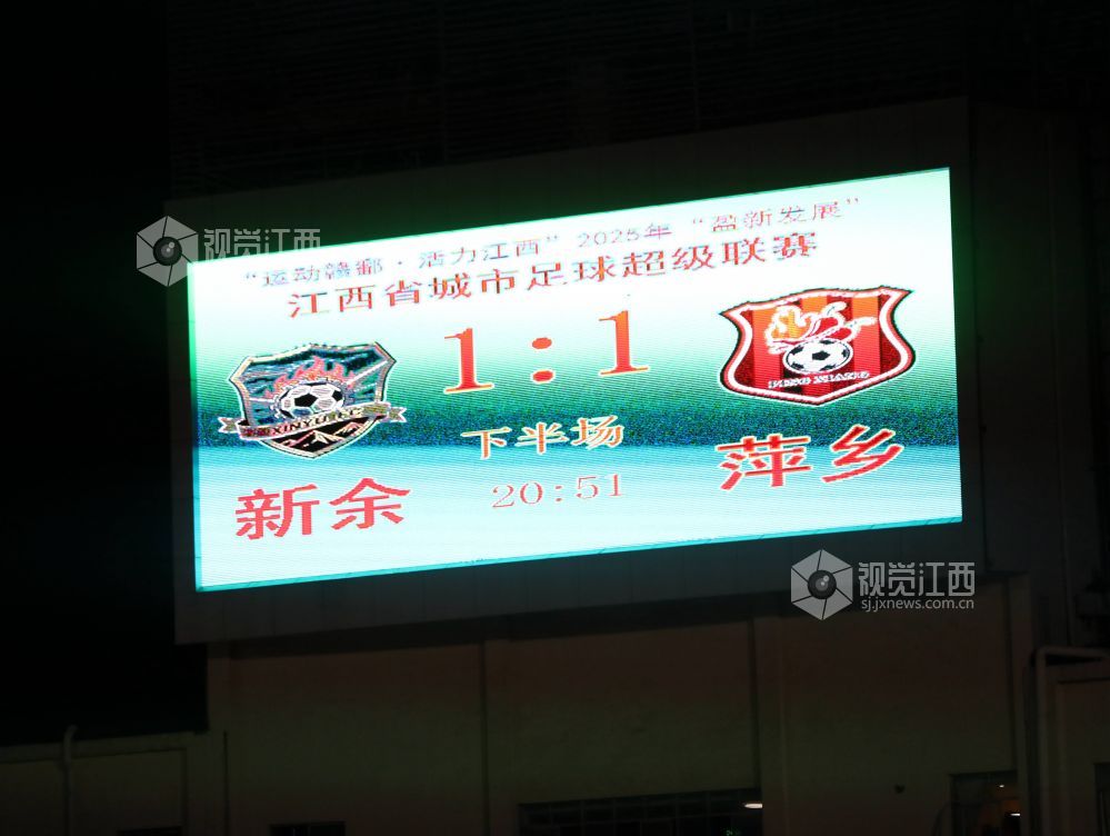 2025年9月13日,在赣超第十轮比赛中,新余队与萍乡队在新余市体育中心进行激烈比拼,争夺赣超最后一张八强门票。当晚,经过90分钟的激战,新余队以1:1的比分,战平萍乡队,顺利挺进赣超八强名单。