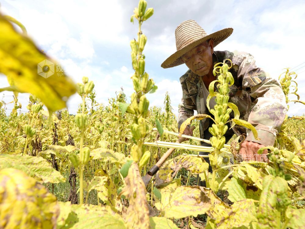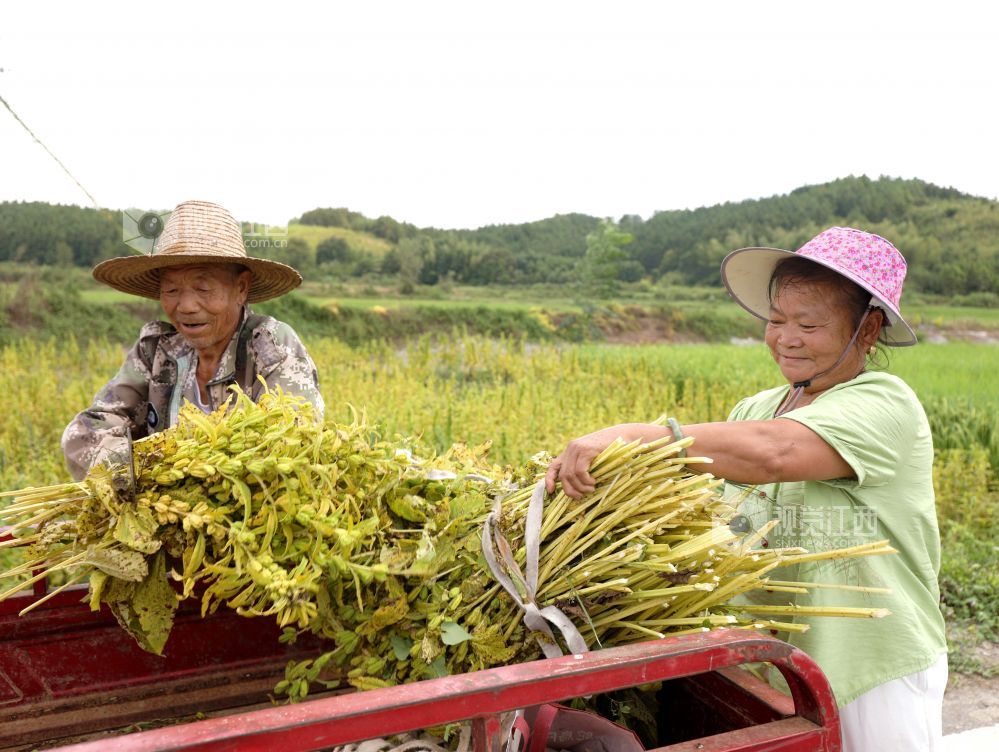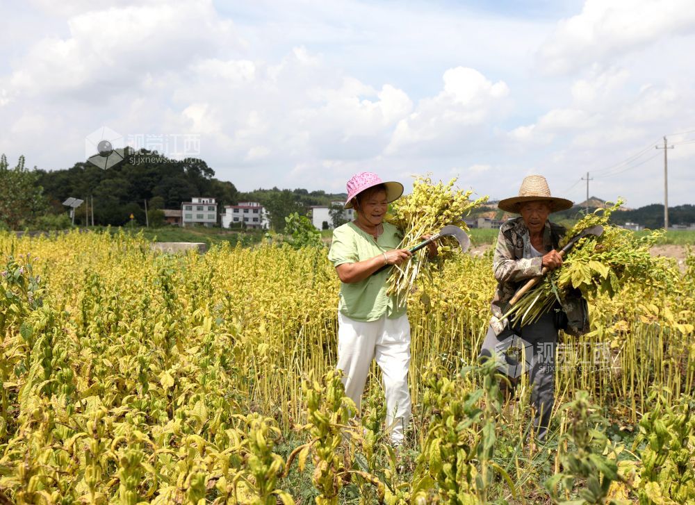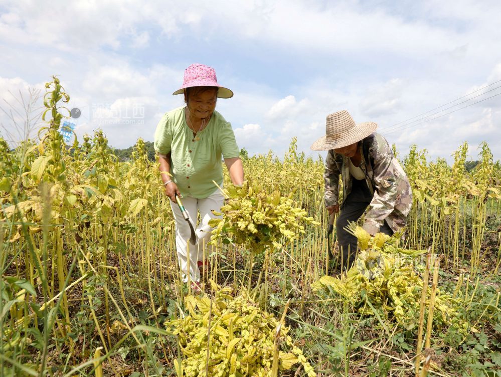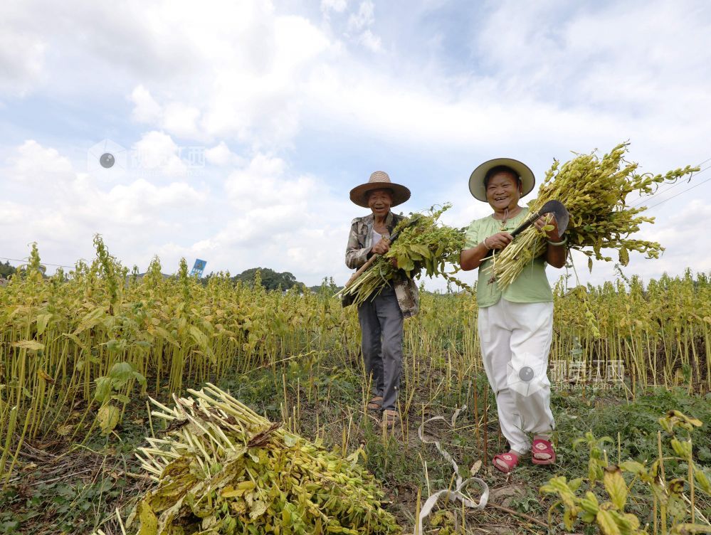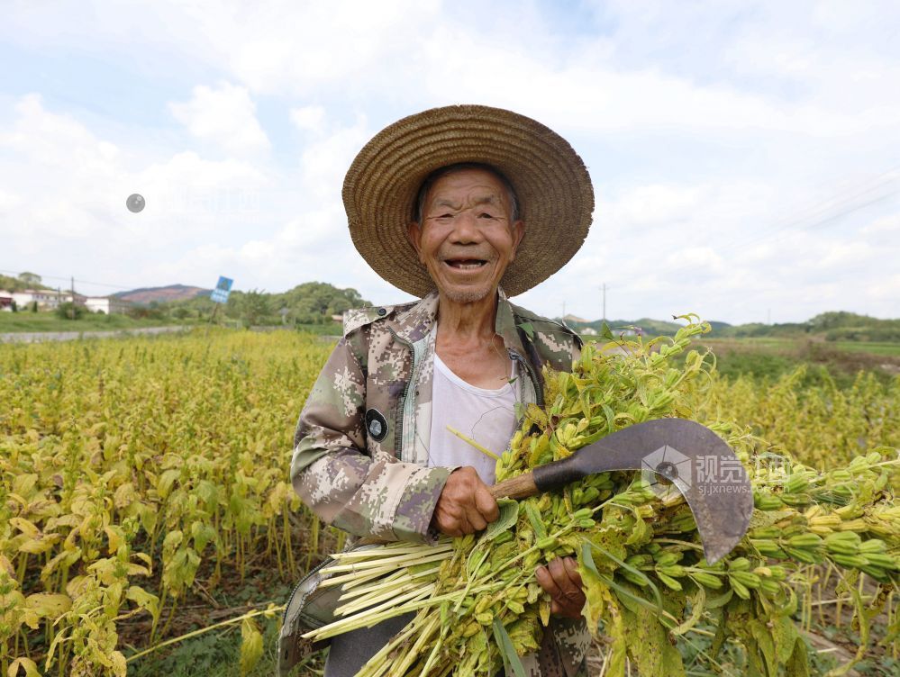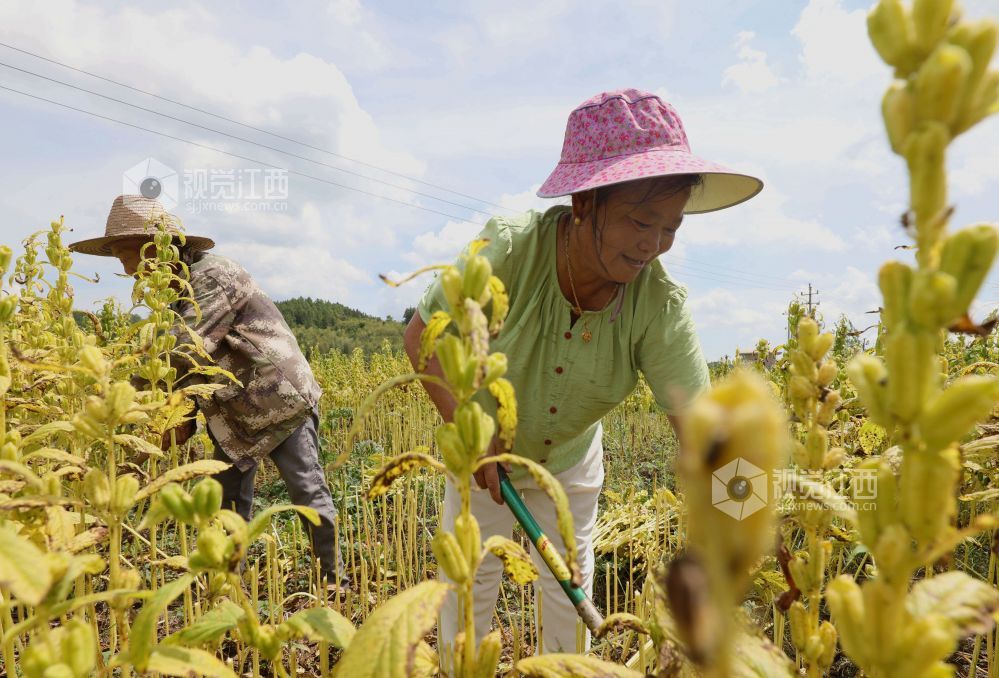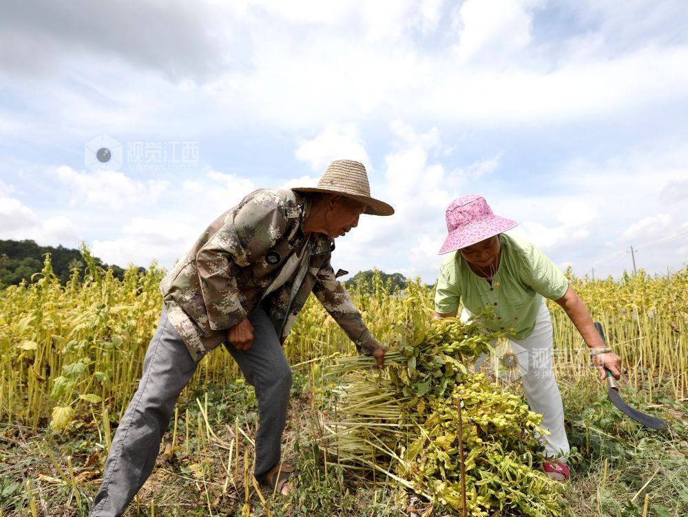 2025年9月12日,江西分宜县洋江镇前江村村民正在田间采收芝麻。