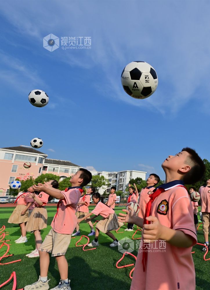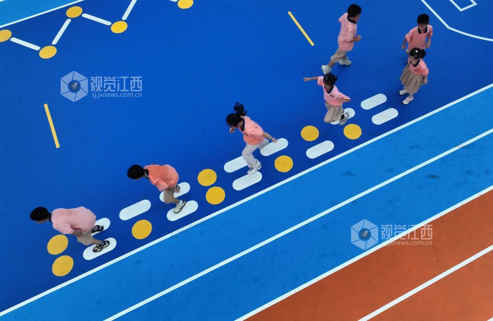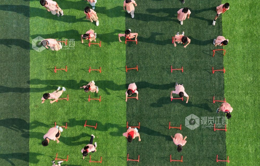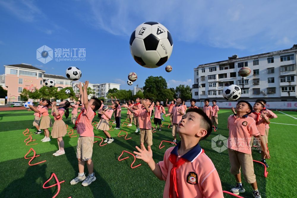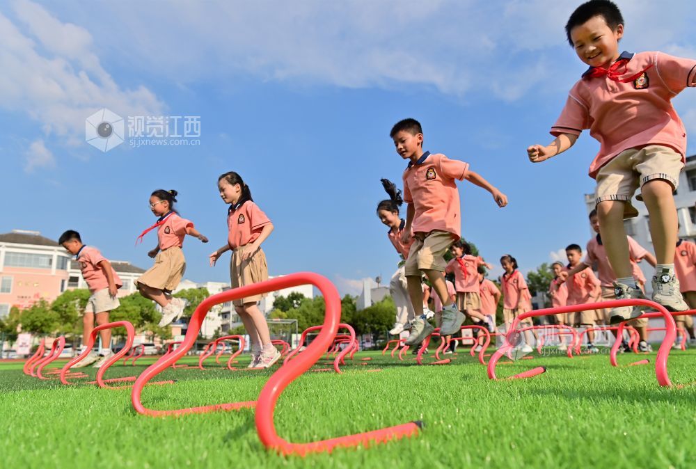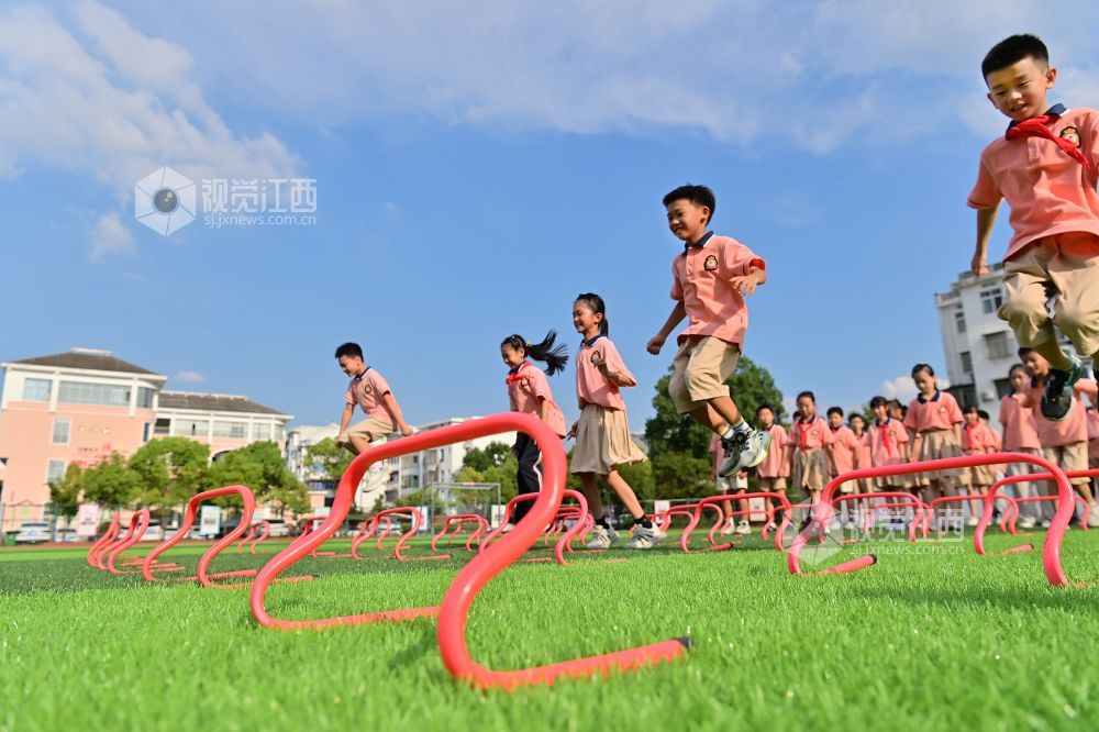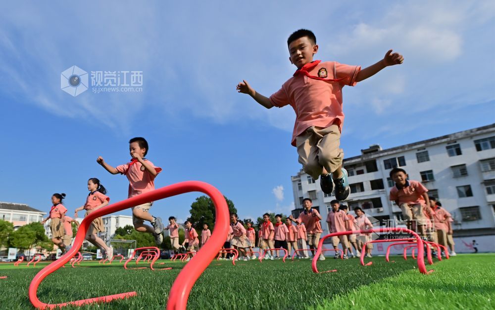 2025年9月15日,江西省宜春市万载县第一小学学生们开展足球、跨越障碍栏、智慧圈游戏、“彩绘格子阵”等趣味体育活动,乐享大课间欢乐时光。