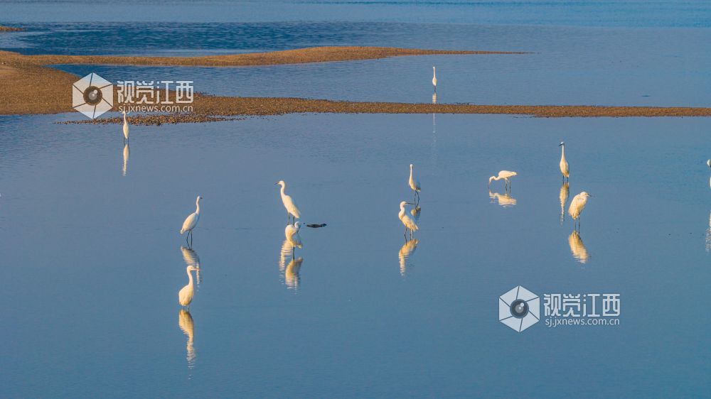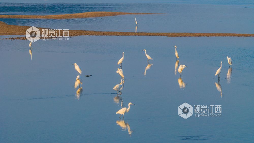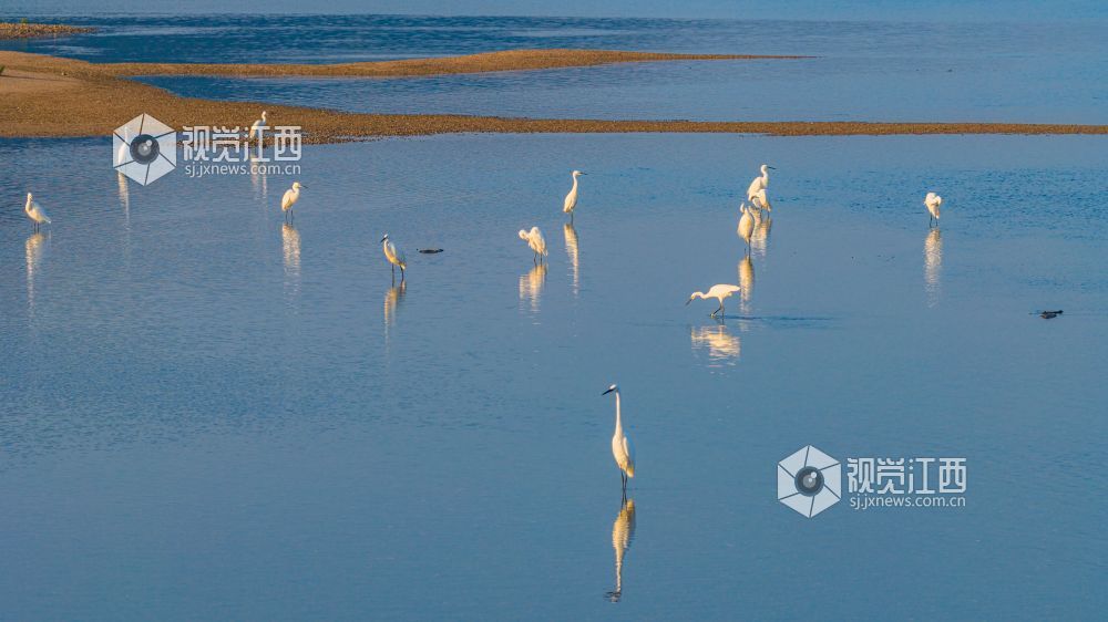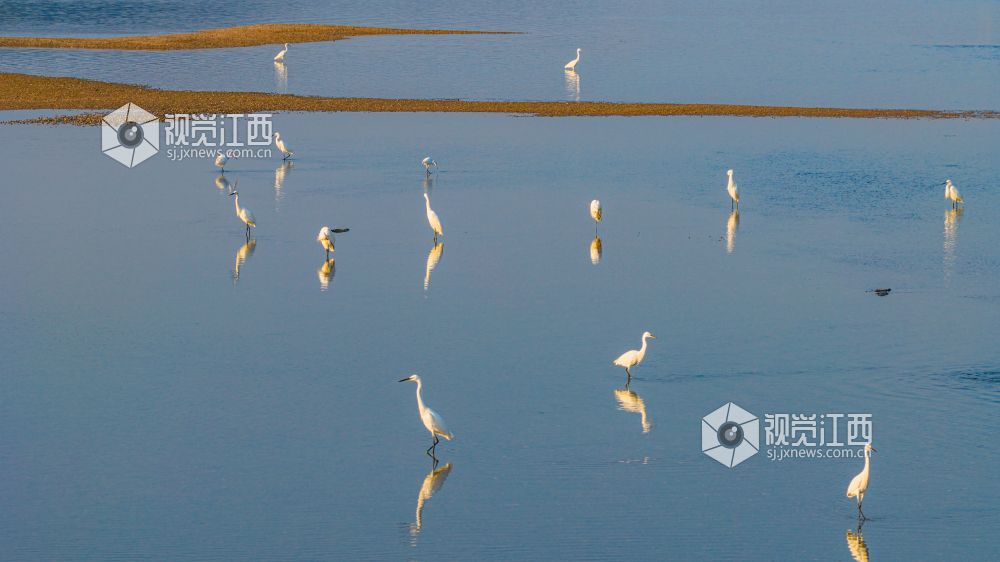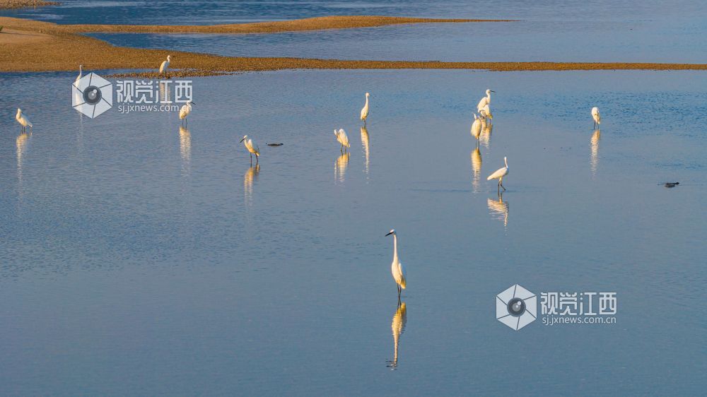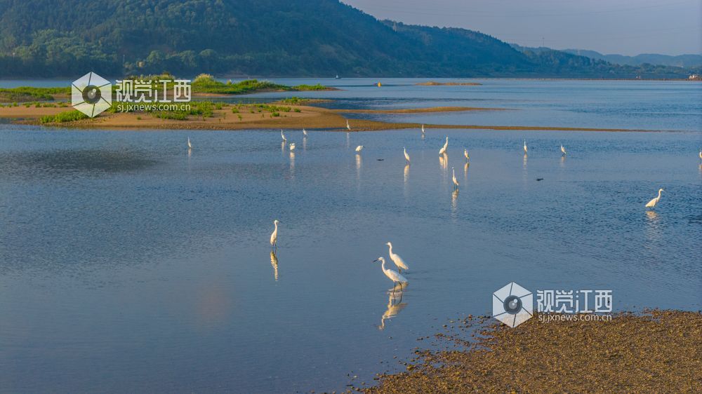9月14日,在江西省吉安市峡江县巴邱镇赣江水域,白鹭或飞或栖,与山水民居相映成趣。当地生态环境的持续改善,使这里成为白鹭的乐园,尽显人与自然的和谐之美。