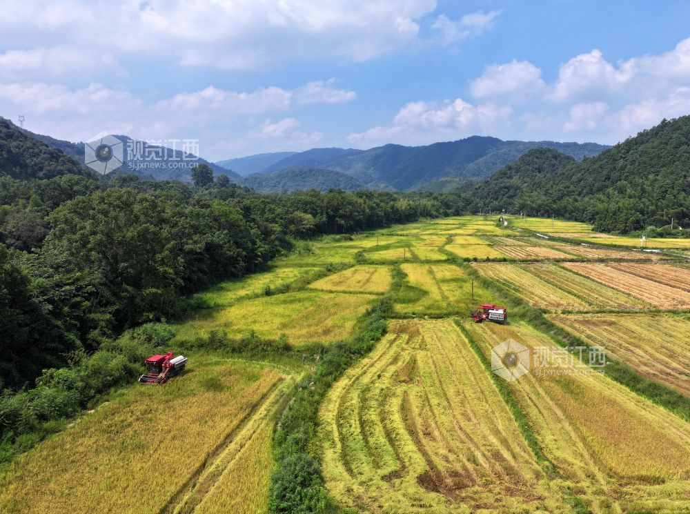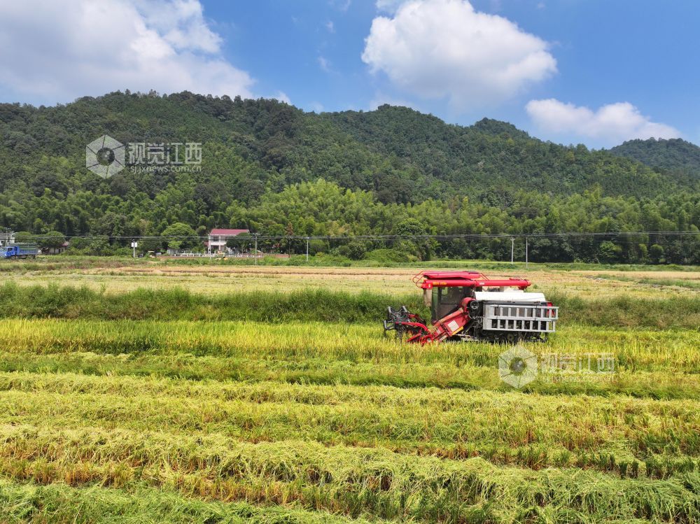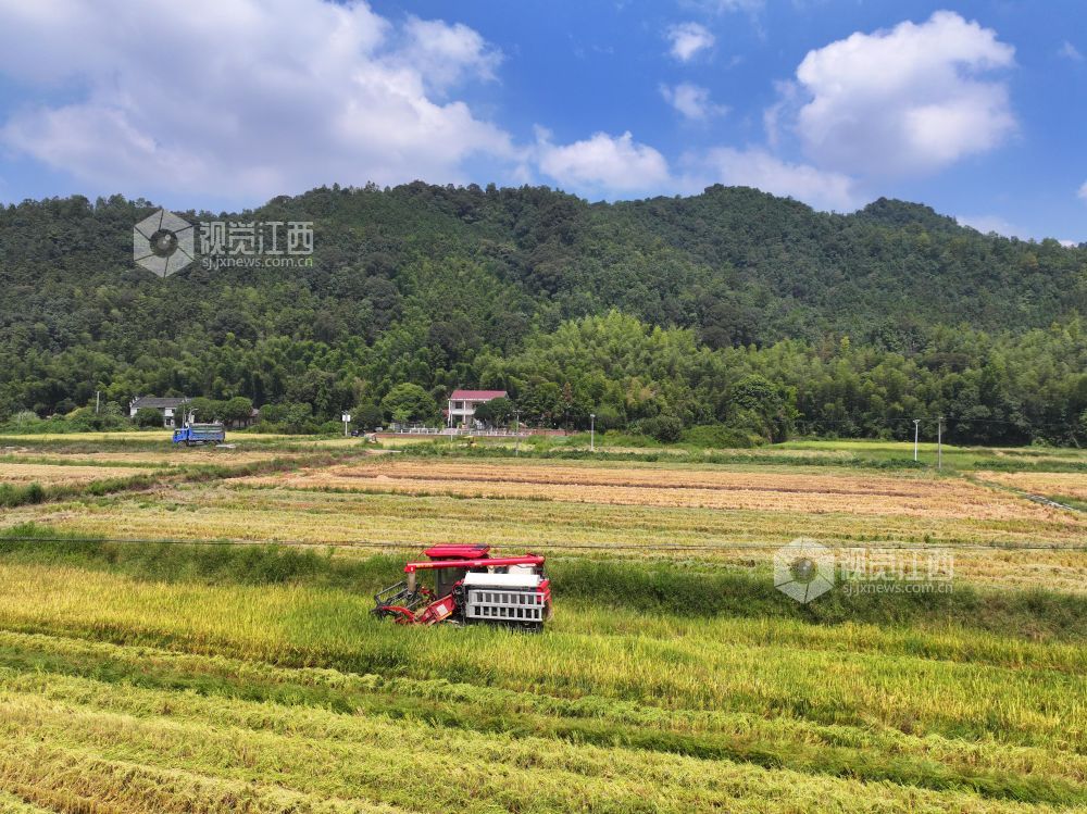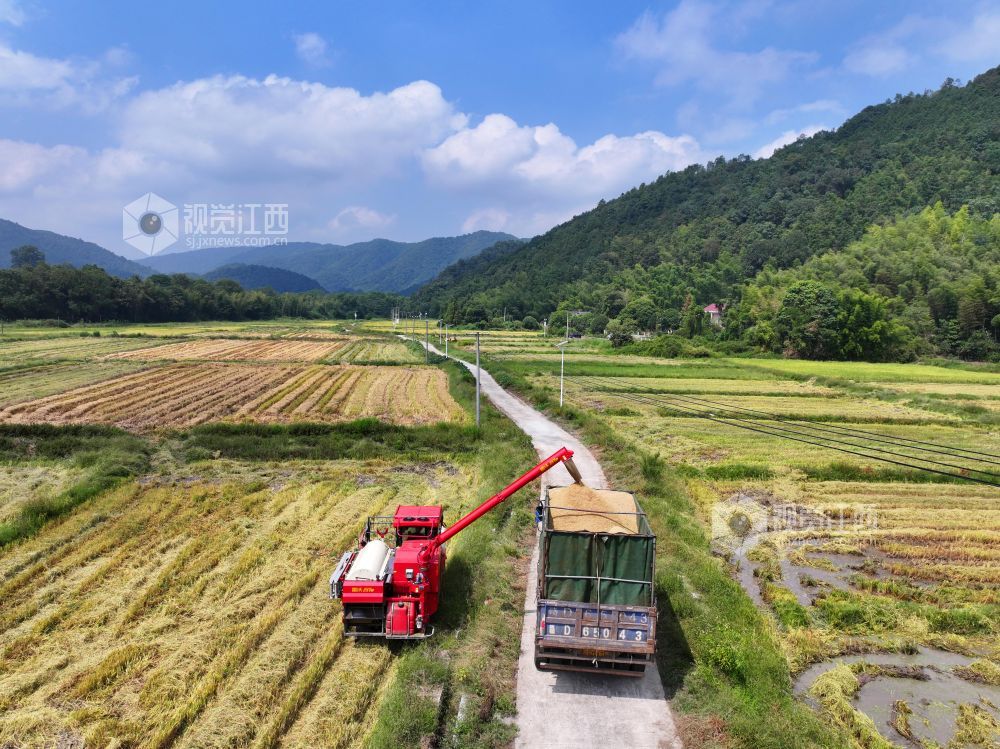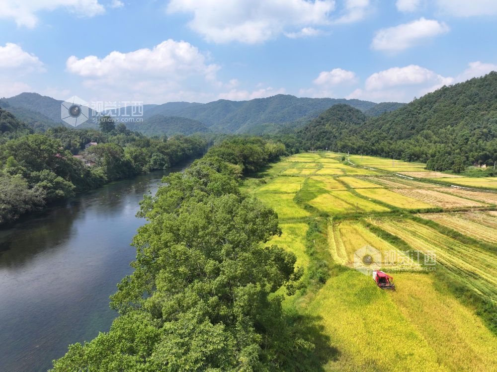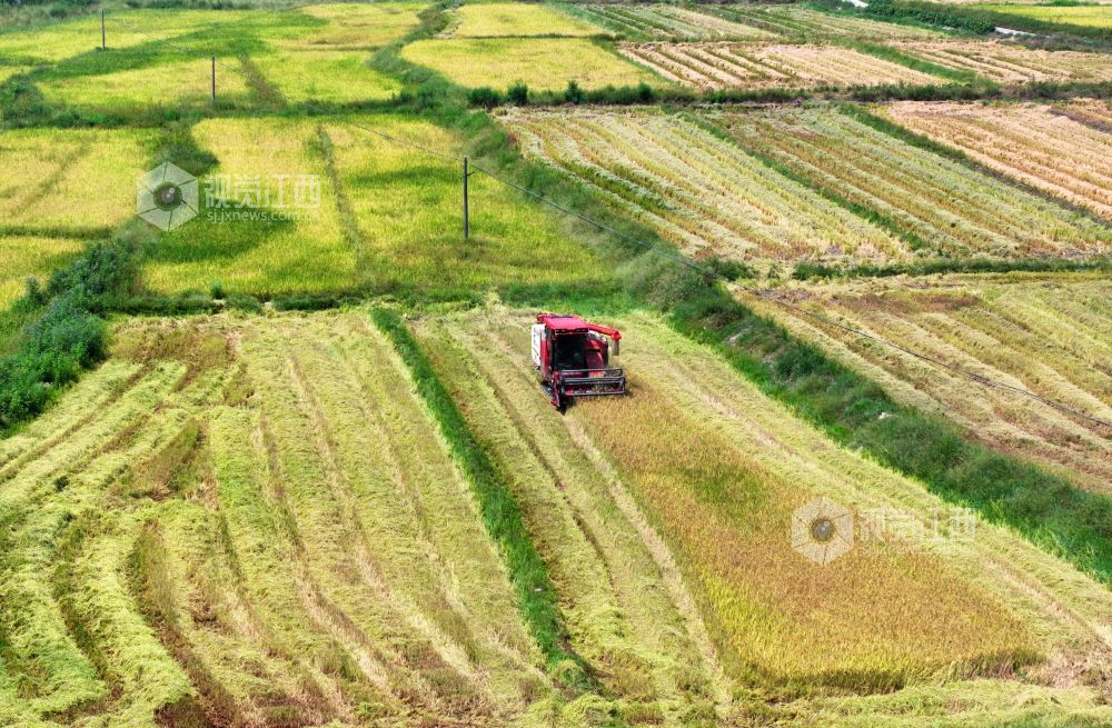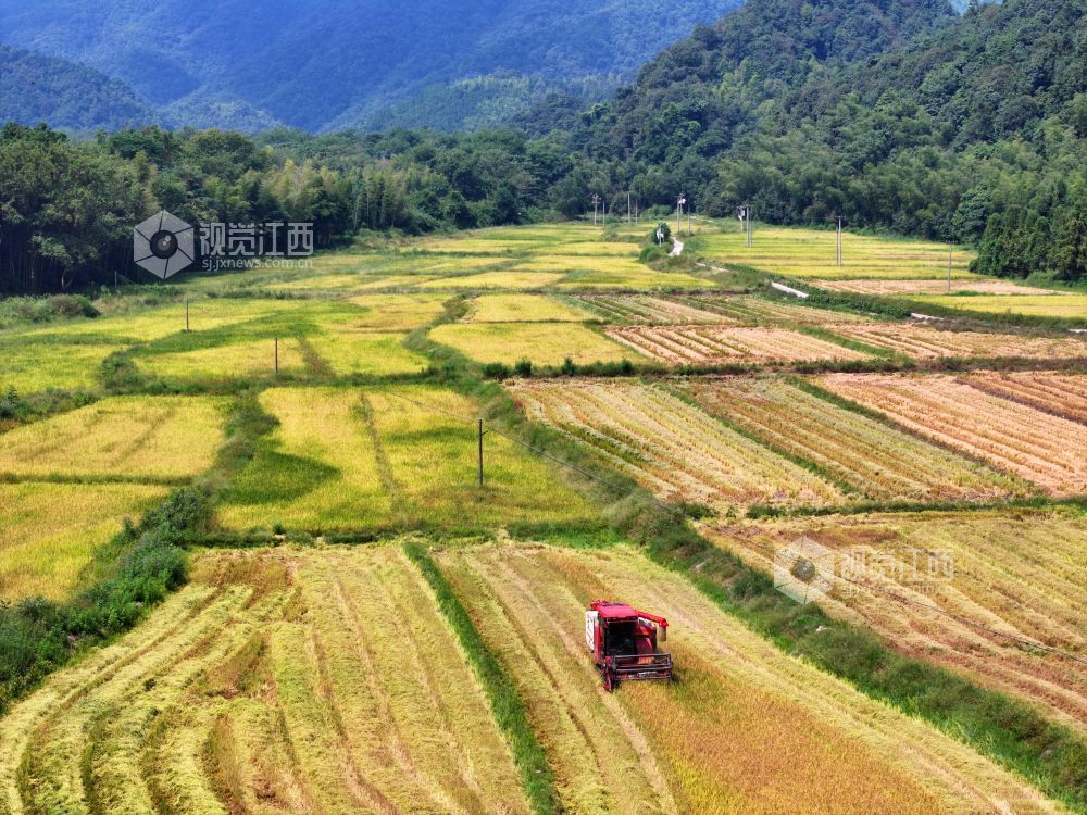 9月18日,江西省吉安市泰和县桥头镇湛口村,农机手驾驶收割机正在收割中稻。江西泰和县积极做好秋收农业生产工作,引导农民抢抓农时收割中稻,确保颗粒归仓。