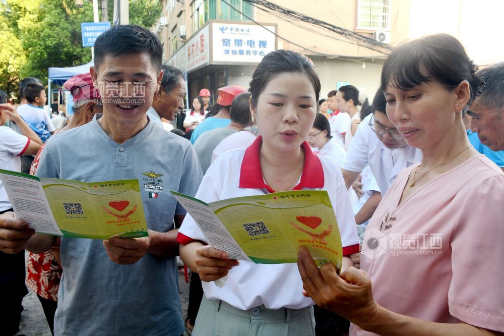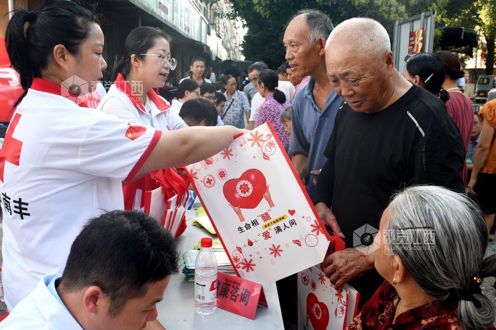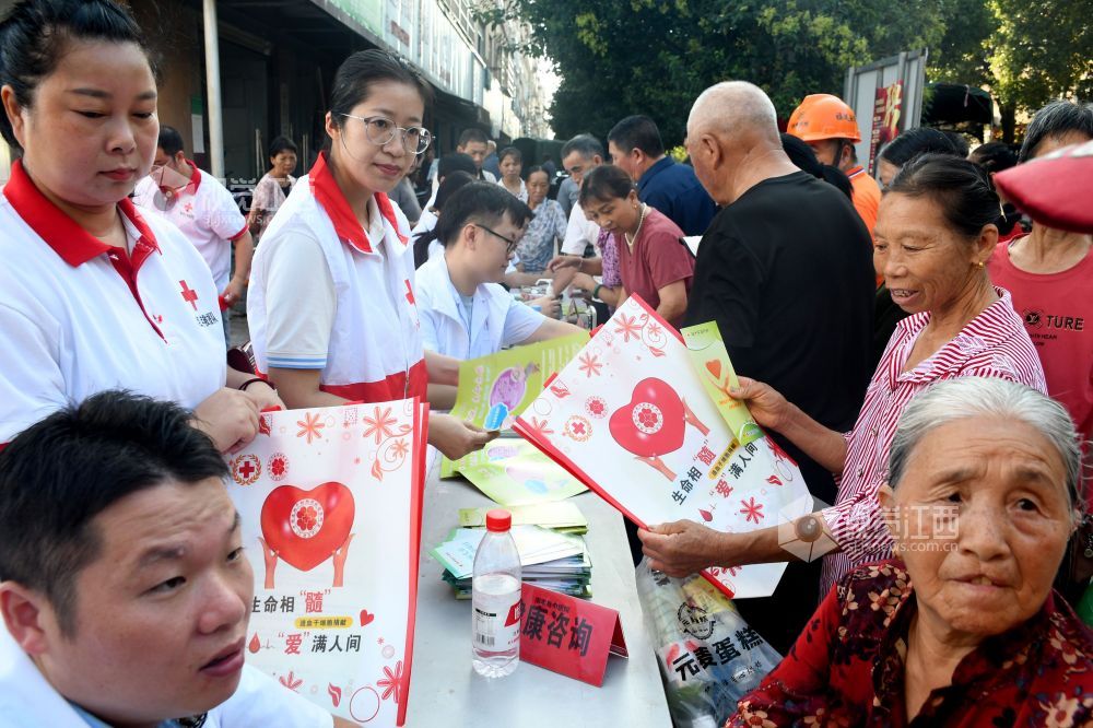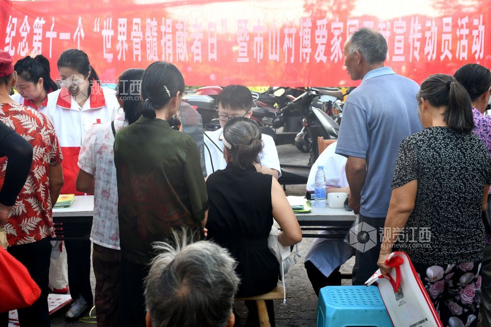 2025年9月18日,江西省抚州市南丰县红十字会组织开展的纪念第11个“世界骨髓捐献者日”暨三献宣传动员活动走进市山镇市山村博爱家园。活动现场,红十字会志愿者向过往群众发放宣传资料和手袋,宣传“三献”知识;县中医院医护人员为群众开展测量血压、血糖、中医问诊等义诊活动。