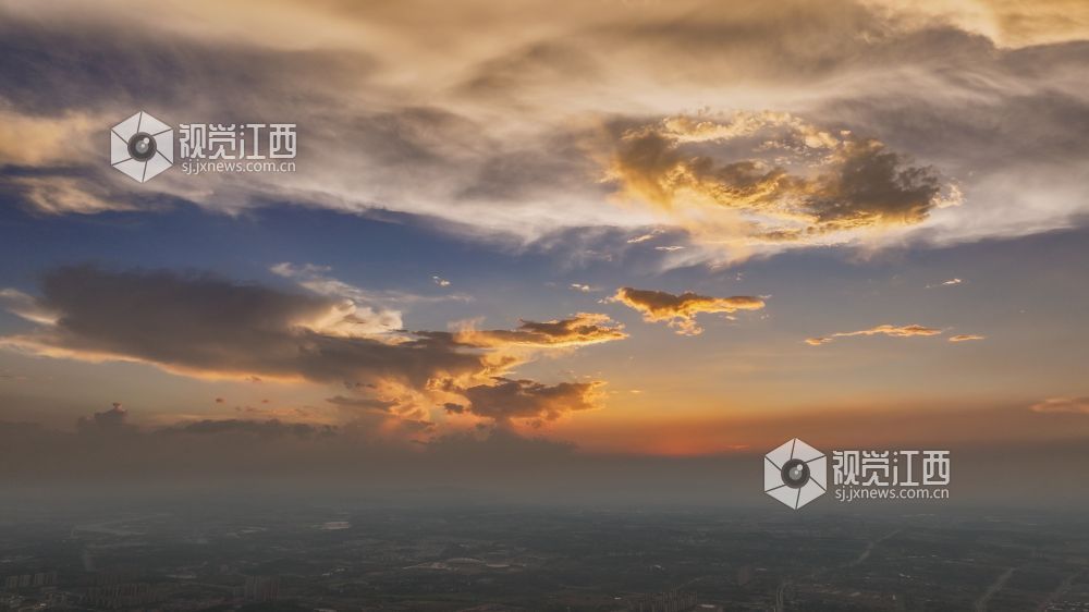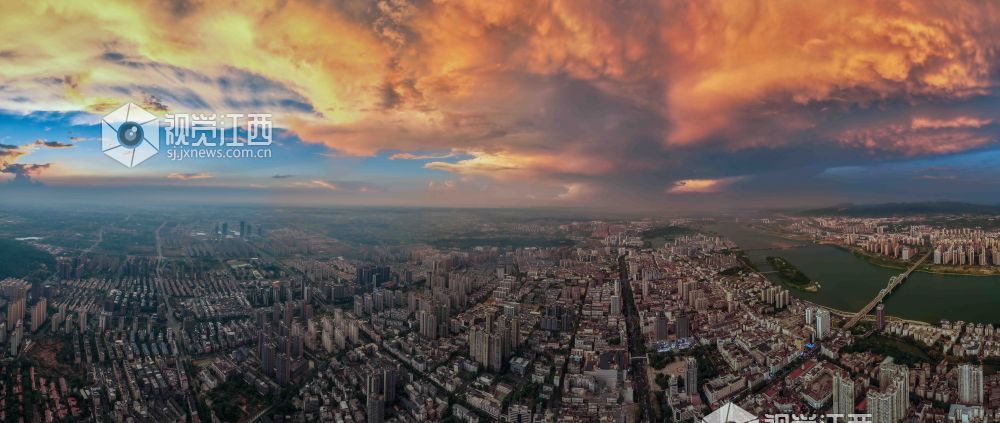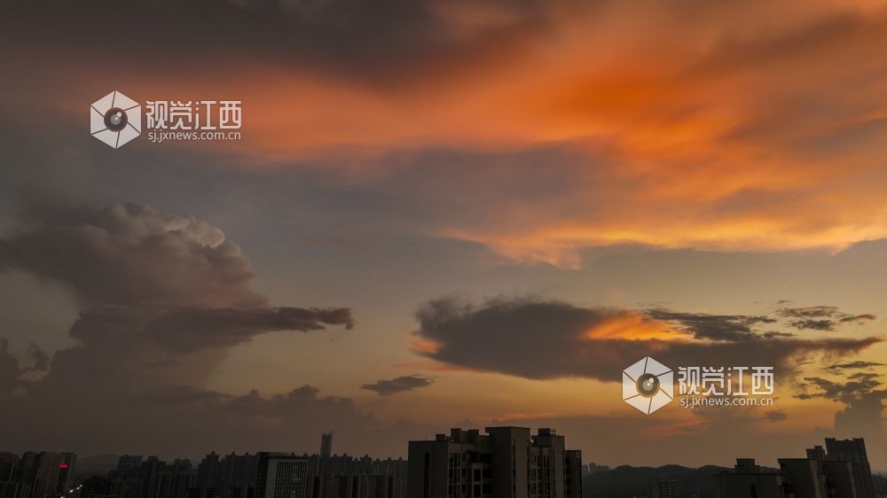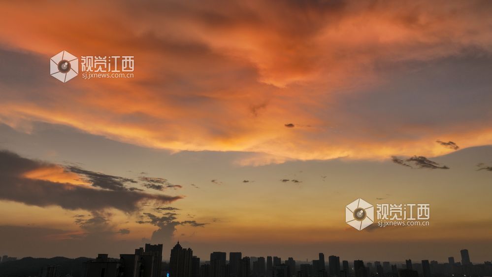 2025年9月18日傍晚,江西省吉安市上空的晚霞绚丽夺目,整个天空仿佛化作一幅流动的水彩画卷,色彩斑斓、梦幻迷人。