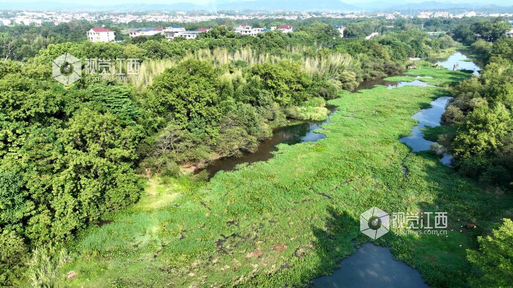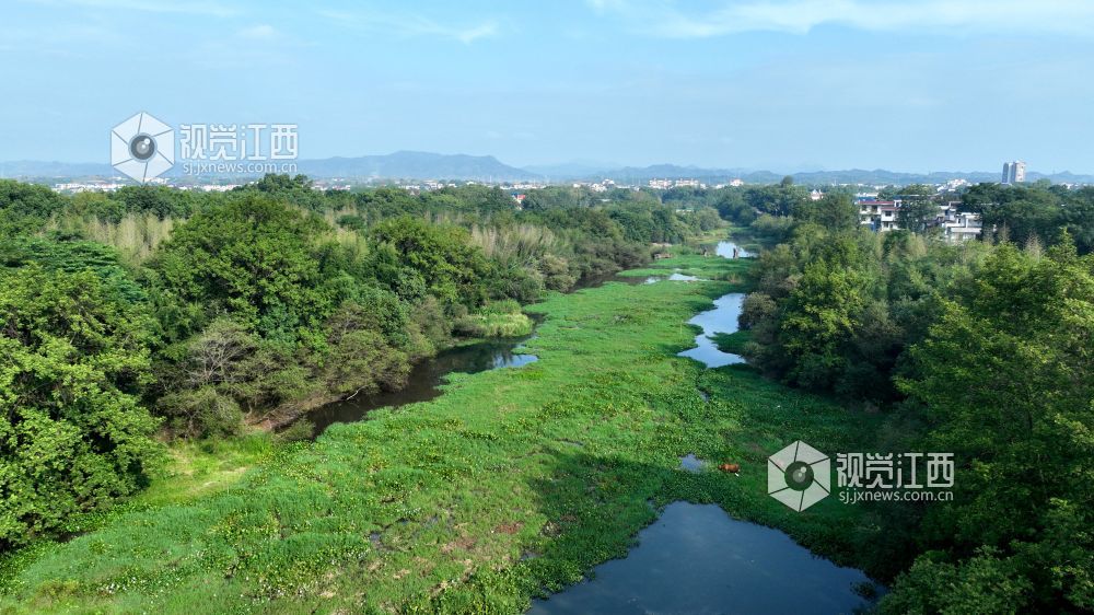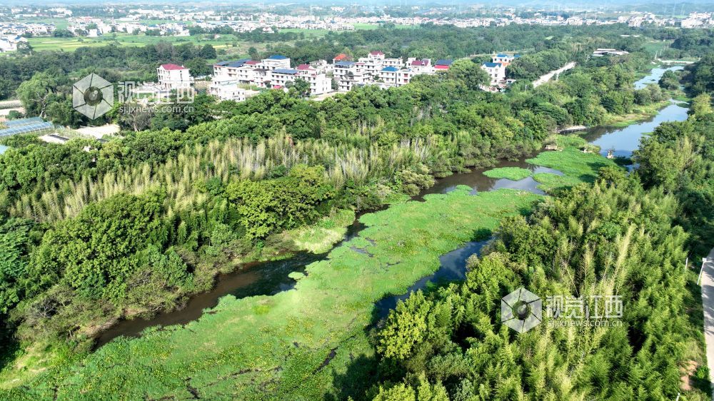 2025年9月19日,江西省吉安市遂川县遂川江干流周边,滩涂湿地生态景致宜人、草木繁茂,绿意盎然,江水与湿地交织成景,周边房屋错落有致,与生态湿地相映成趣,展现出一幅生态保护与人类生活和谐共生的美好图景。