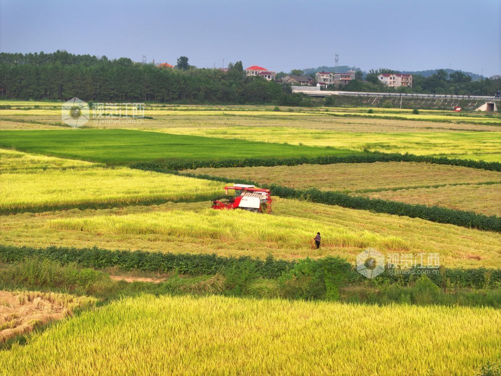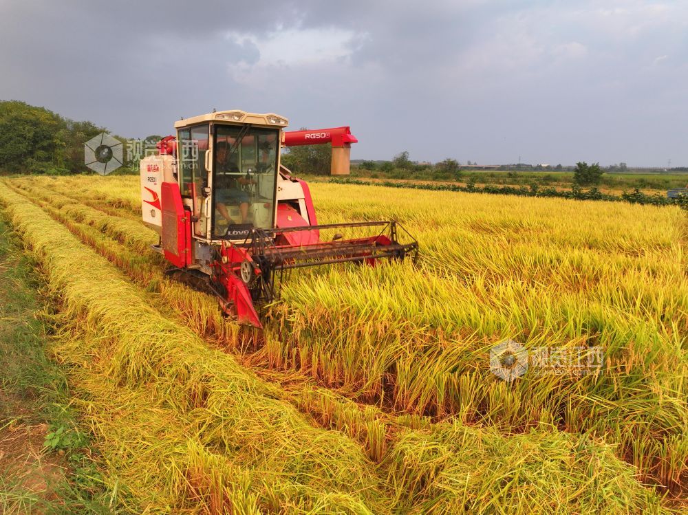 9月22日,江西省吉安市泰和县马市镇汉溪村,农民驾驶收割机正在抢收水稻。