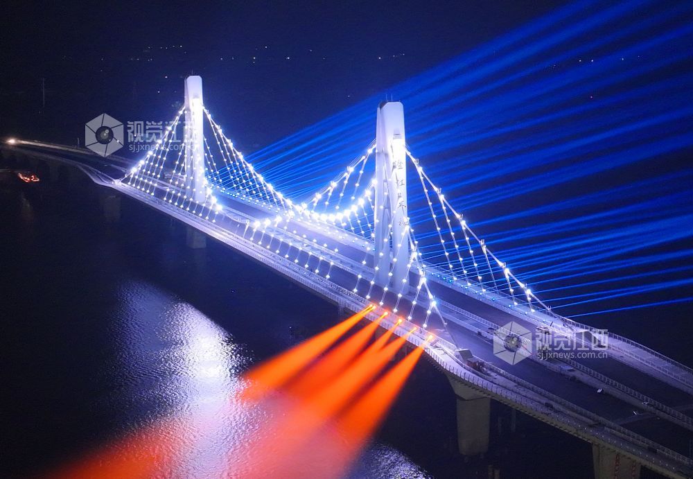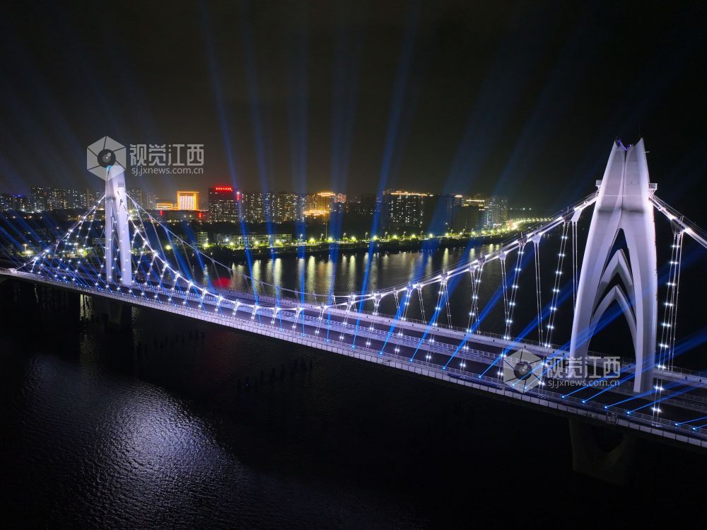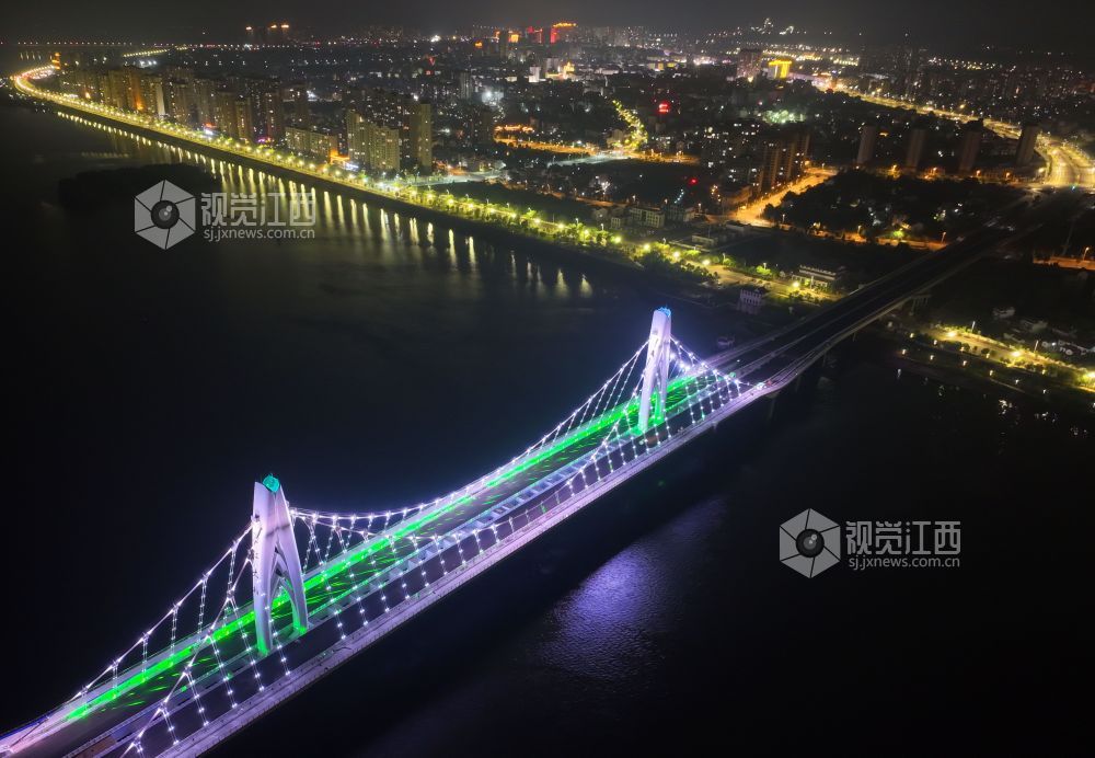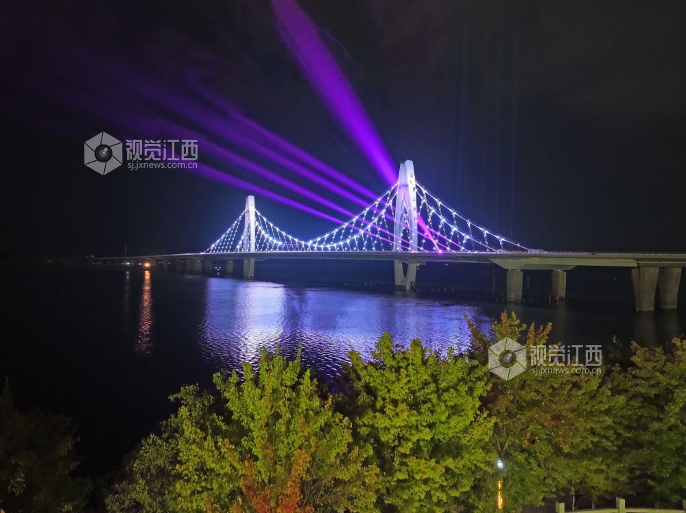 9月26日,江西省吉安市泰和县澄江大桥主桥正在进行景观灯灯光调试,为通车做好准备。澄江大桥是江西省重点工程。当日澄江大桥进行的灯光调试,五彩缤纷,吸引不少市民前来观看,将为国庆中秋双节增添节日的喜庆气氛。