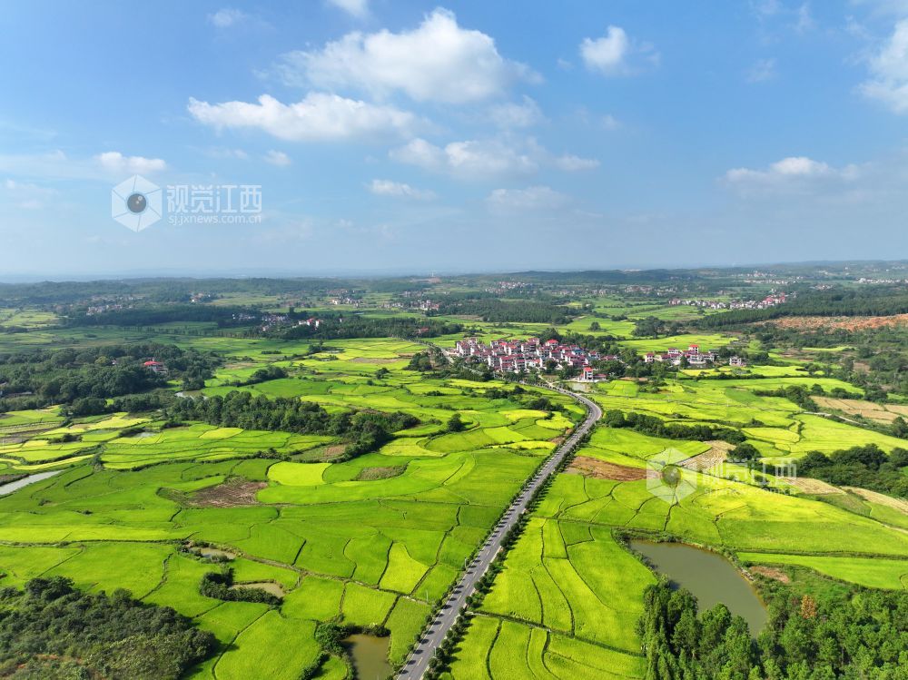9月26日,江西省吉安市泰和县马市镇水稻主产区,晚稻渐次泛黄,丰收在望,秋日田园景如画。