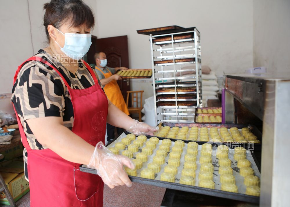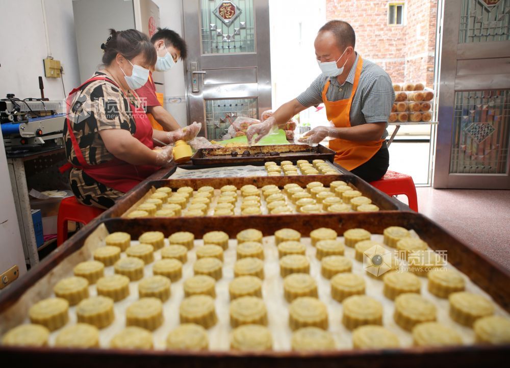9月27日,中秋节临近,江西省宜春市袁州区各月饼厂家赶制地方特色月饼,供应市场。