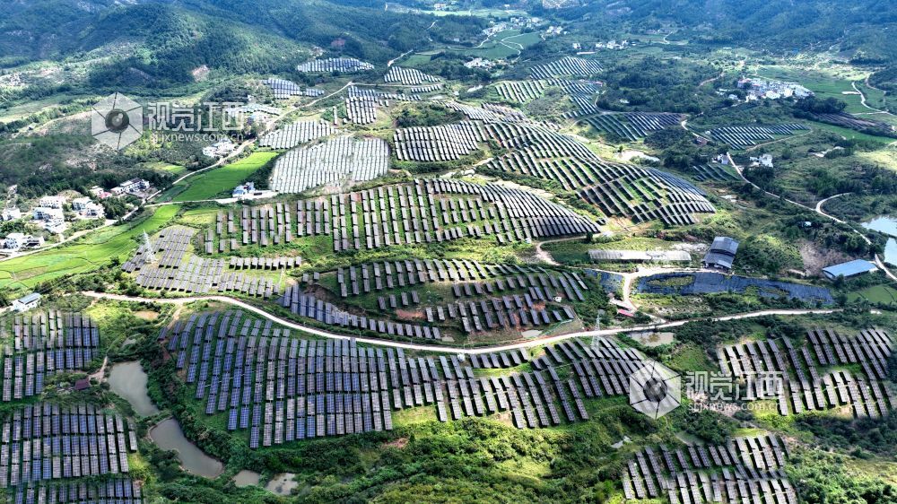 2025年9 月28日,江西省吉安市遂川县的群山间,大片光伏板错落铺展,银亮面板与周边的青绿植被、连片农田、澄澈水域相映成趣。阳光洒落,光能便转化为源源不断的清洁电力。