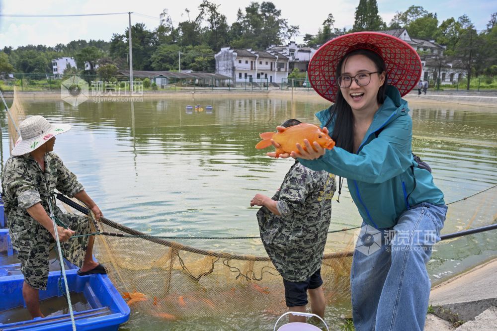 江西省婺源县养殖的荷包红鲤鱼因其体型饱满、鳞色鲜艳、肉质细嫩而闻名,被誉为“水中珍品”。它不仅是餐桌上的美味佳肴,还是带动乡村产业发展的“致富鱼”,成为婺源农旅融合的新亮点。