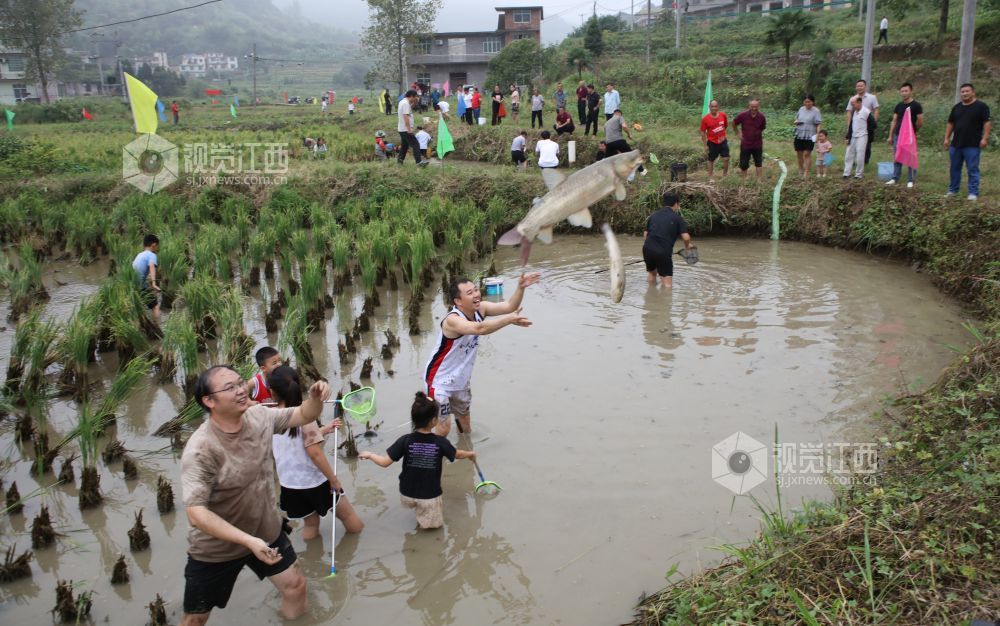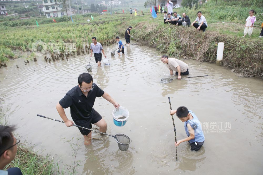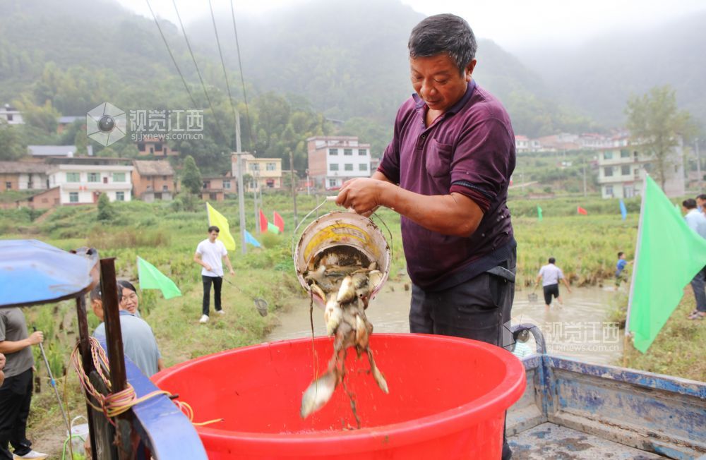 2025年9月27日,江西省宜春市袁州区水江镇小洞村举行稻田捕鱼文化节活动,村民和镇村干部代表在该村的稻田鱼养殖基地,一起捕捉稻花鱼,乐享丰收,喜迎国庆节和中秋节的到来。