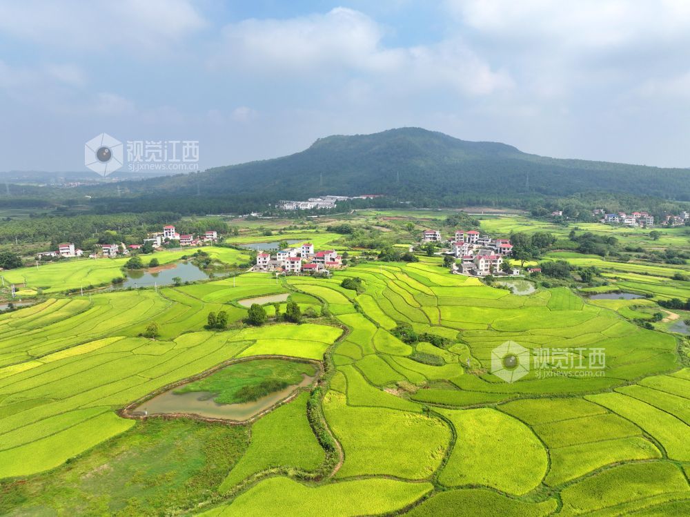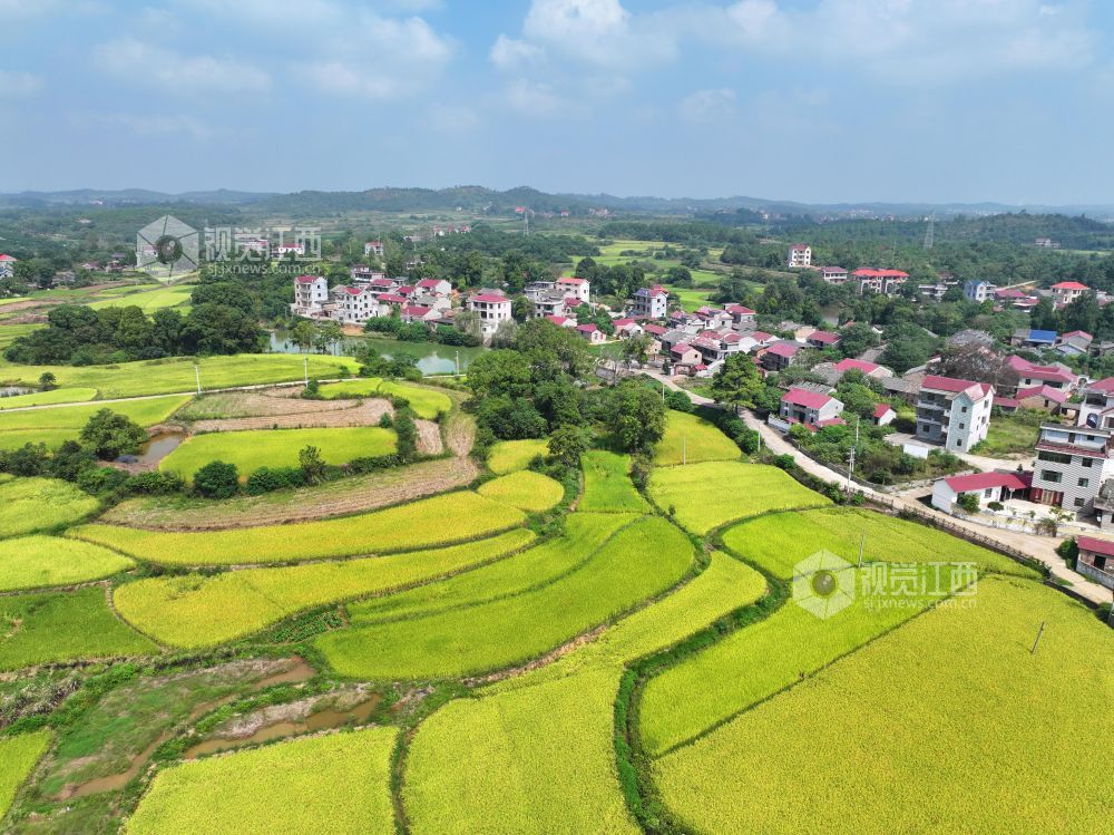 9月28日,江西省吉安市泰和县马市镇乡村田园,晚稻渐次泛黄,“丰”景如画。