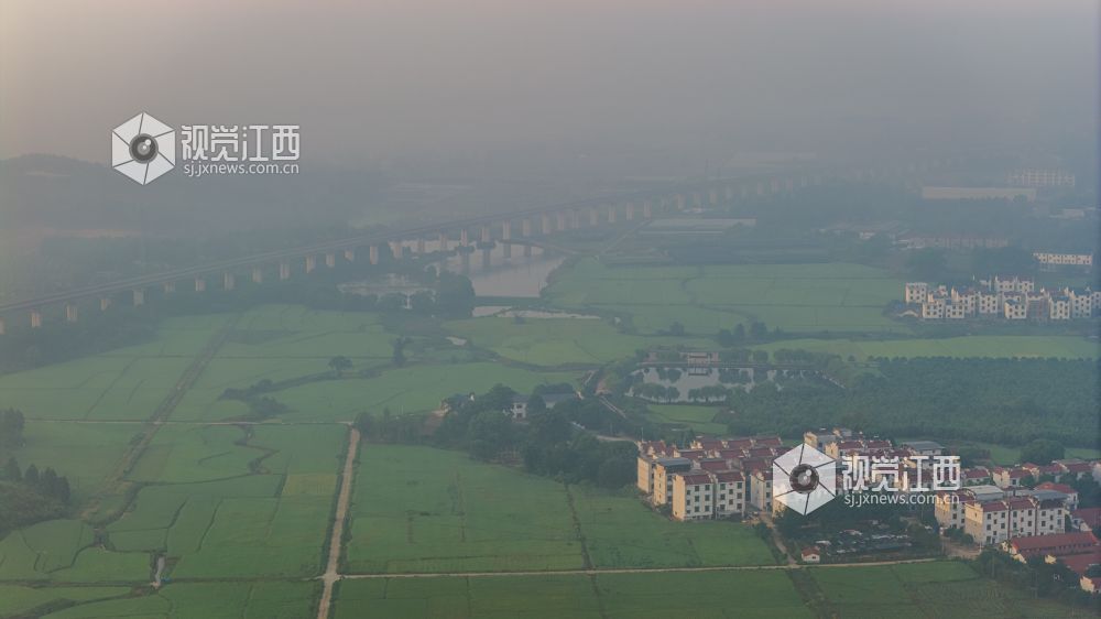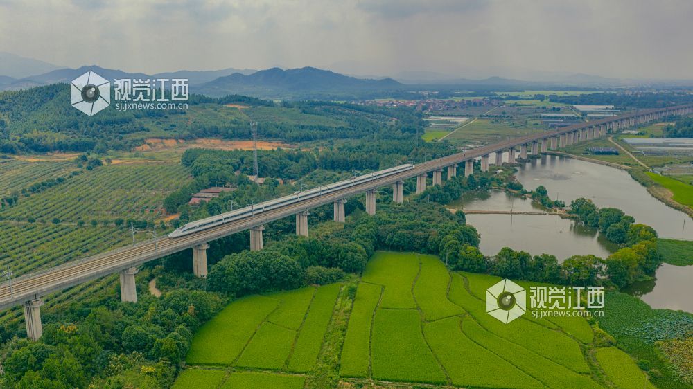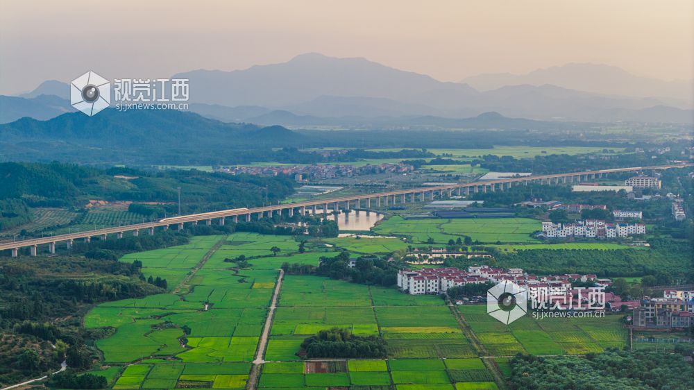 9月27日,江西省吉安市峡江县金坪民族乡秋意正浓,移山水库、龙坑水库与田园间的高铁沿线景致相映交织,生动勾勒出生态保护与经济发展共生共荣的美好画面。