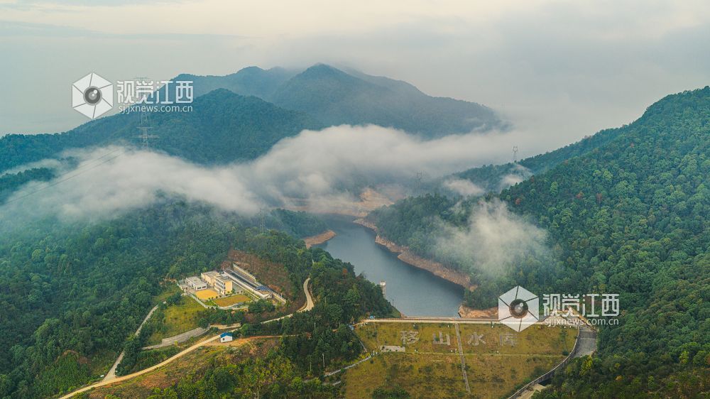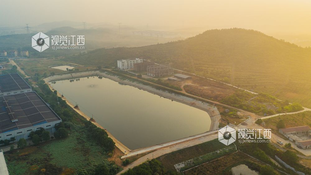 移山水库区域云雾缭绕,云海漫过天际,远山在朦胧中若隐若现,碧水如镜镶嵌于群山之间,景致宛若仙境。高铁列车穿梭田间,在翠绿田野间疾驰而过,现代交通的活力与田园风光的静谧形成鲜明对比、相映成趣,尽显乡村振兴的蓬勃生机。傍晚时分,龙坑水库的晚霞更添韵味。夕阳余晖为水面镀上一层金辉,与周边村落、产业厂房融为一体,绘就出产业发展与自然生态和谐共处的动人图景。