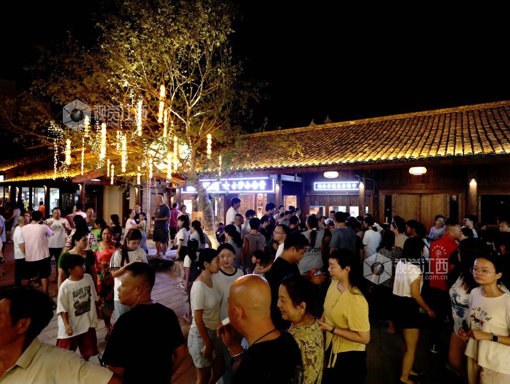 2025年10月3日晚,江西省分宜县介桥古村景区灯火通明,人声鼎沸,吸引许多游客和市民到此感受古村魅力。国庆中秋假期,当地通过不断优化夜游、夜购、夜食等夜间消费业态,举办赏非遗、音乐会等系列主题活动,打造“夜经济”品牌,激发消费新活力。