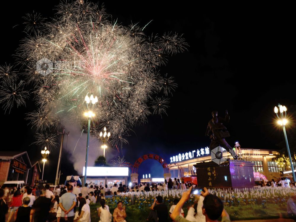 2025年10月4日晚,江西省分宜县电厂螺蛳小镇景区灯火璀璨,绚丽绽放的烟花吸引了众多市民游客前来观赏,共度国庆假期。