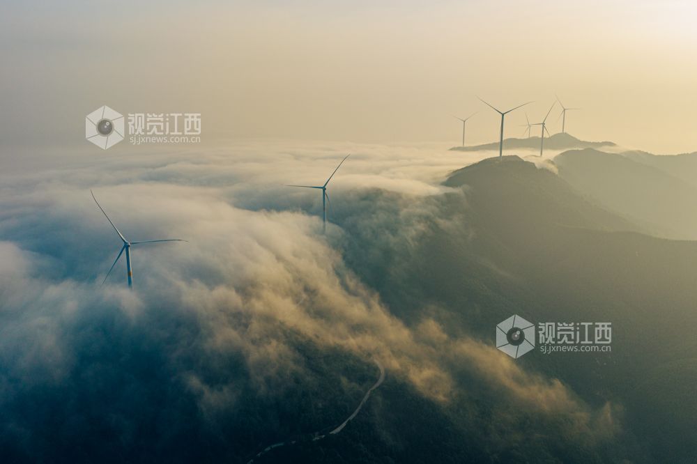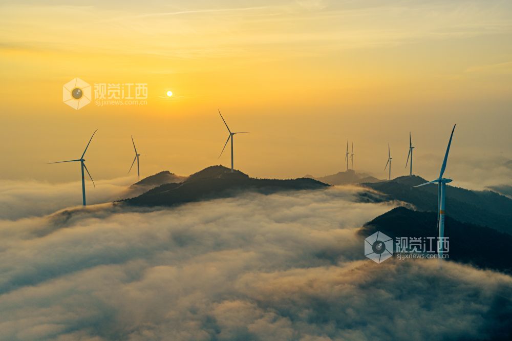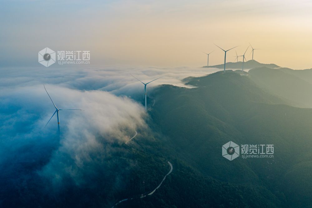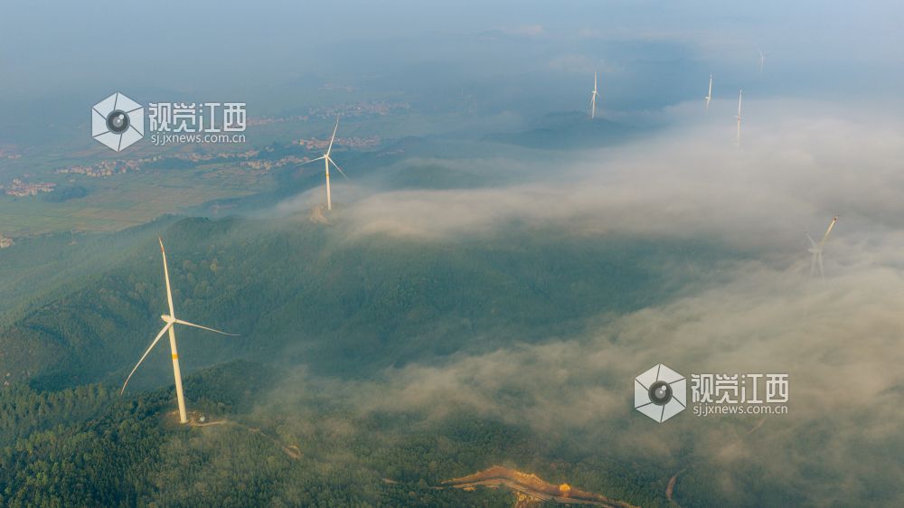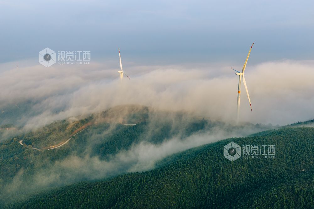 2025年10月1日在江西省吉安市峡江县罗田镇风车电场拍摄的画面。