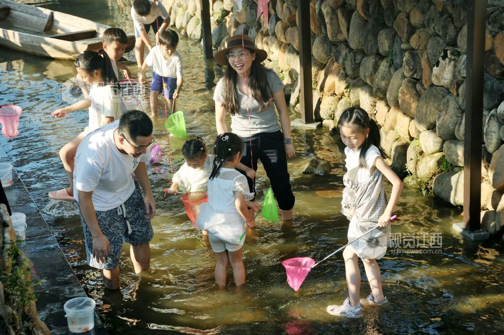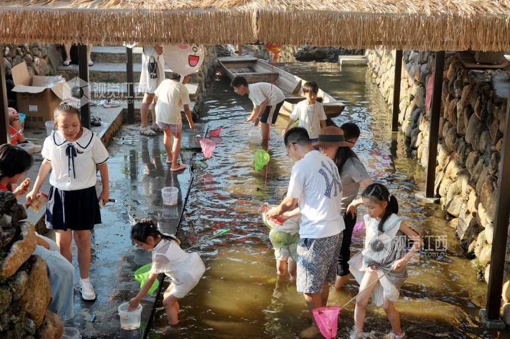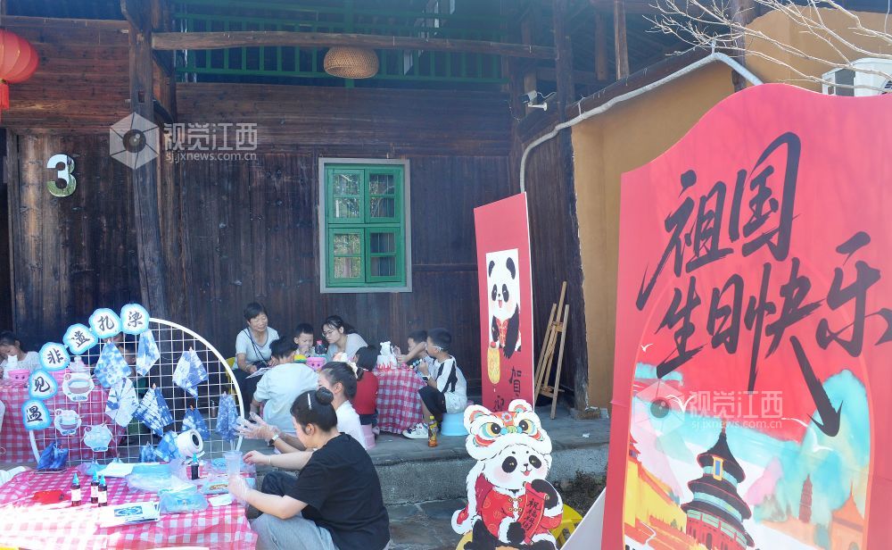 2025年10月5日,在江西省德兴市花桥镇昭林村,小目源景区推出的小河捞鱼、月饼制作、绘制陶画等活动,吸引了众多游客前来游玩,让孩子们开心体验儿时的乐趣,乐享国庆假日美好时光。