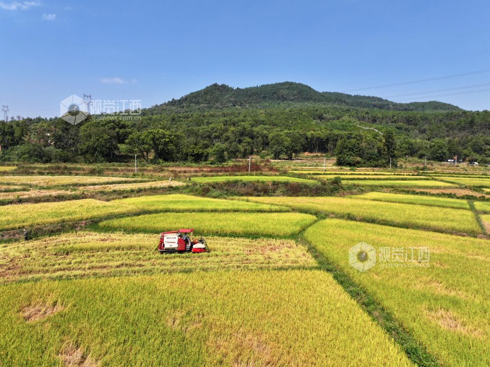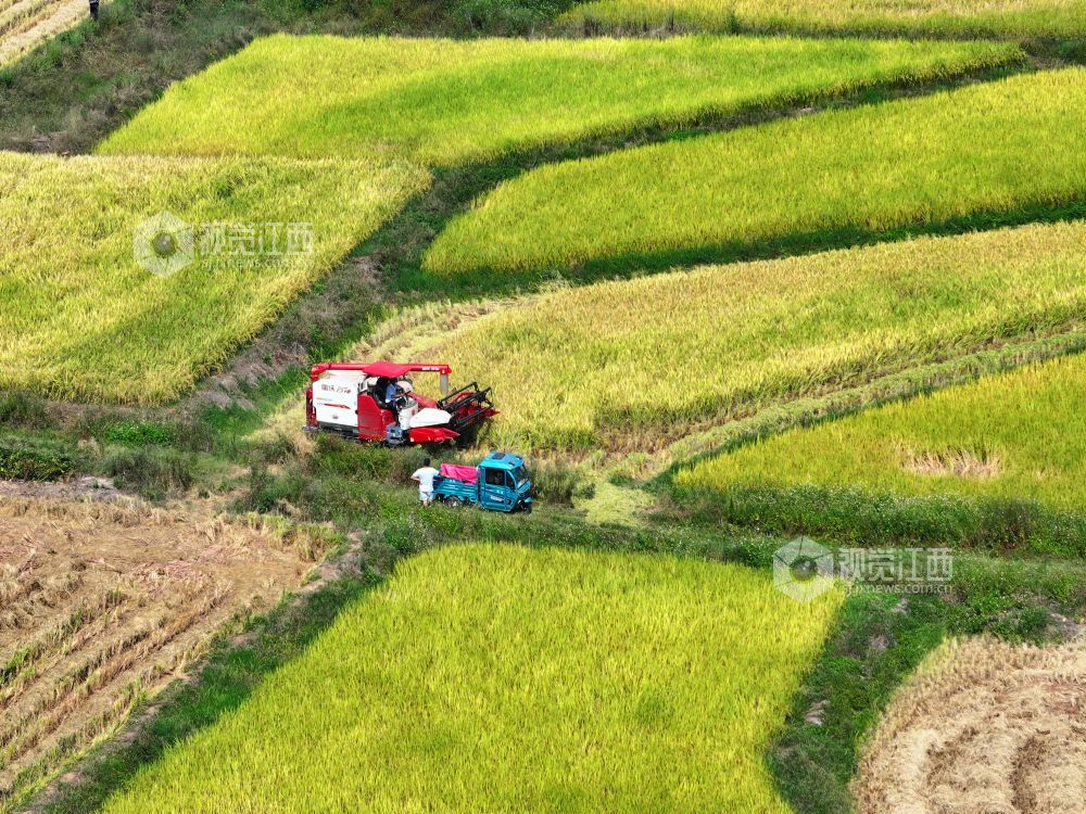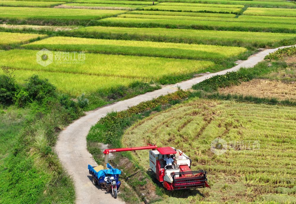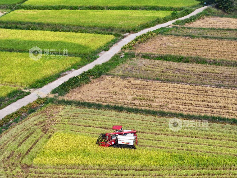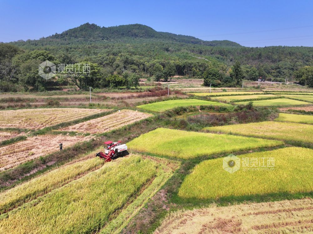 10月8日,江西省吉安市泰和县马市镇东来村,农民驾驶收割机正在收割水稻。江西泰和县秋粮喜获丰收,农民抢抓农时收割,确保秋粮颗粒归仓。
