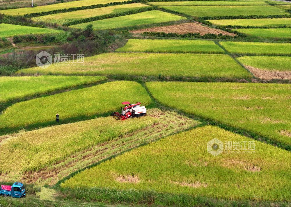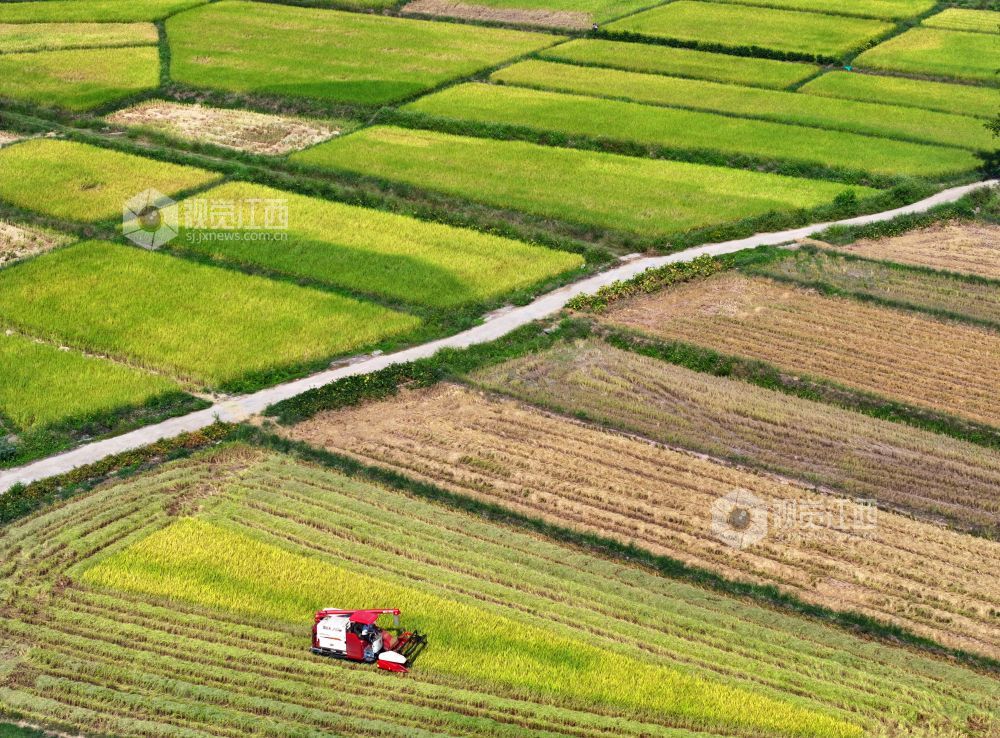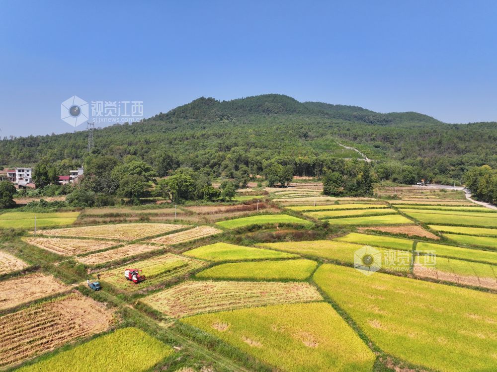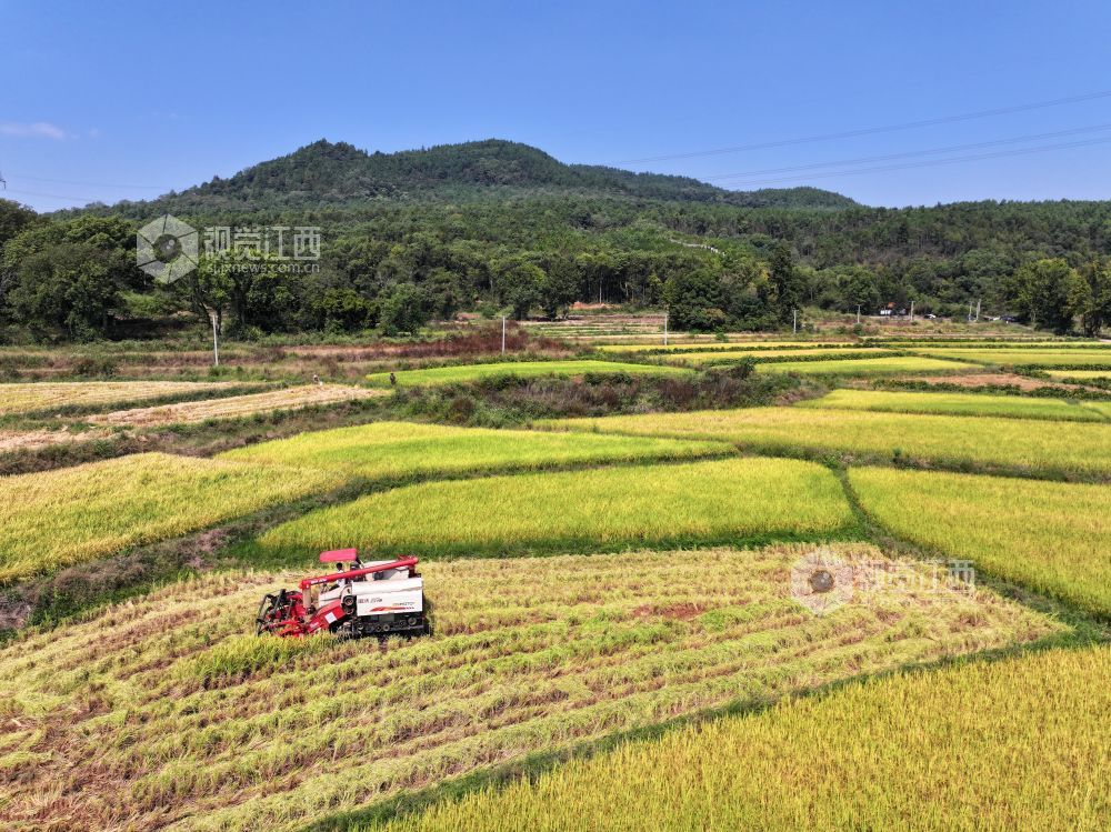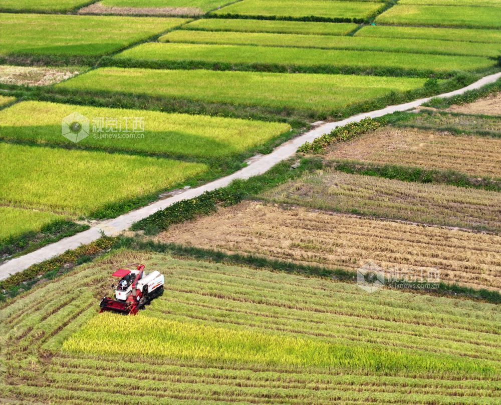 10月8日,江西省吉安市泰和县马市镇东来村,农民驾驶收割机正在收割水稻。江西泰和县秋粮喜获丰收,农民抢抓农时收割,确保秋粮颗粒归仓。