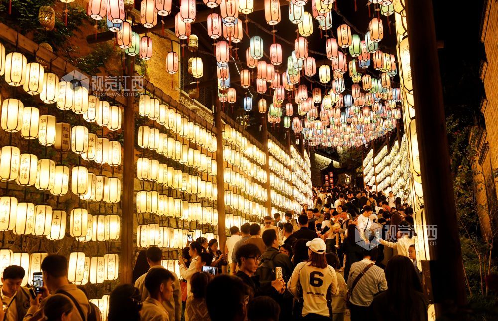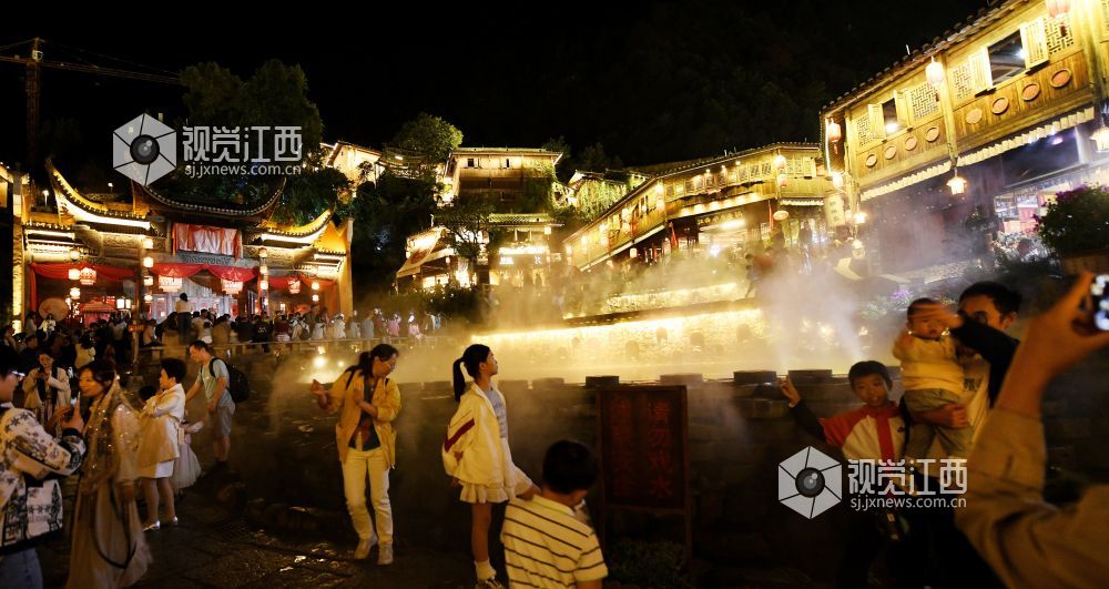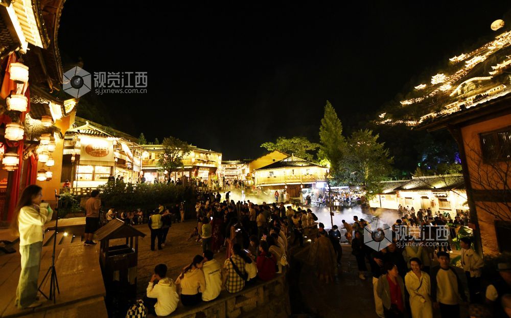 10月7日,夜幕下的江西省上饶市广信区望仙谷景区,吸引了来自全国各地的2.5万余游客观看。