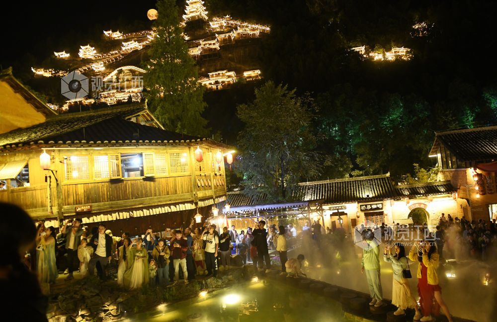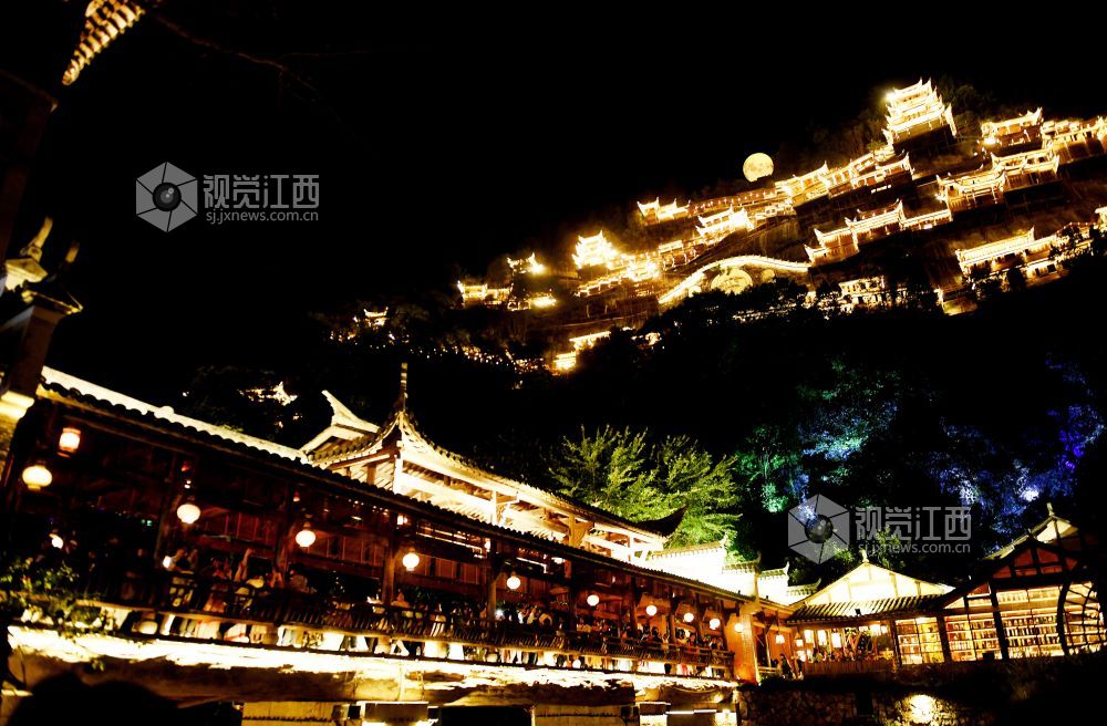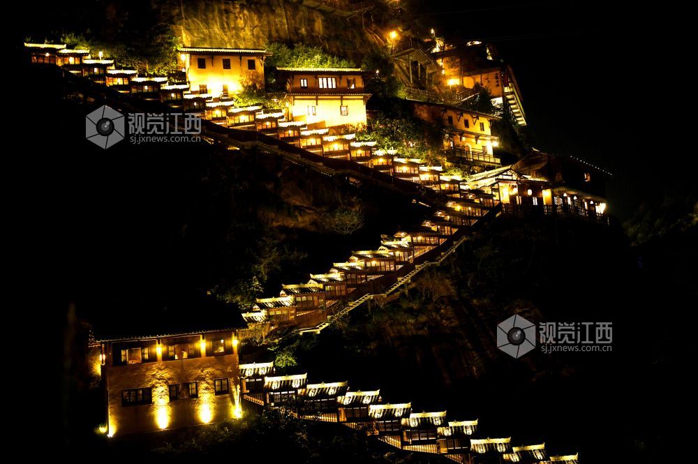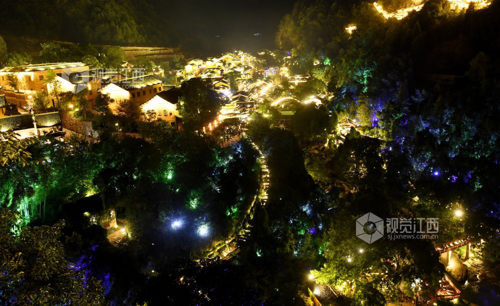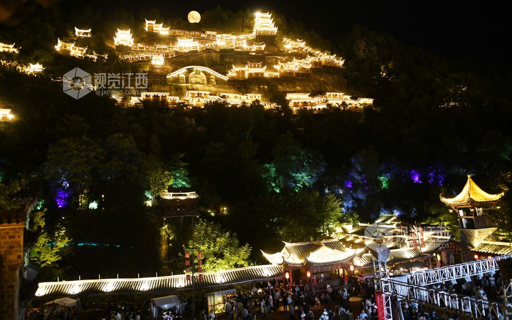 据了解,江西省上饶市广信区望仙谷景区是“悬挂”在当地110多米的白鹤崖崖壁之上的“民宿景观”,也是集旅游观光、乡村民宿、休闲体验为一体的文旅产业。每当夜幕降临,精心打造的峡谷古村、阁楼和崖上“民宿”、游步悬道等,在色彩斑斓的灯光映衬下, 宛如一幅幅岁月静好的山居图,大有“深山夜色彩尽染,崖上“民宿”不夜天”的意境,让人看了流连忘返。国庆假日期间,慕名前来江西省上饶市广信区望仙谷景区观光的游客多达20余万人。