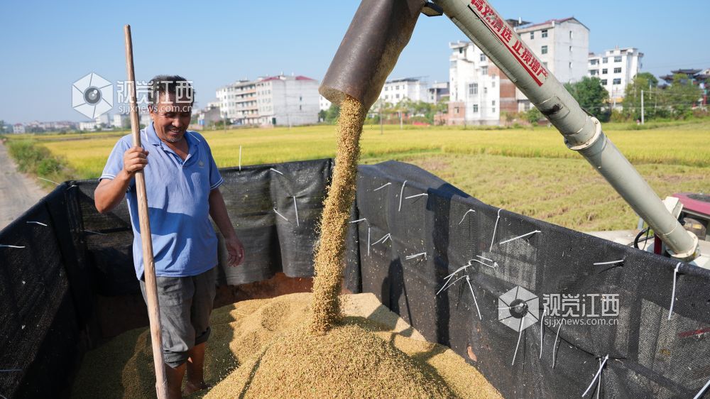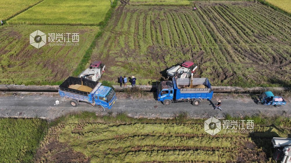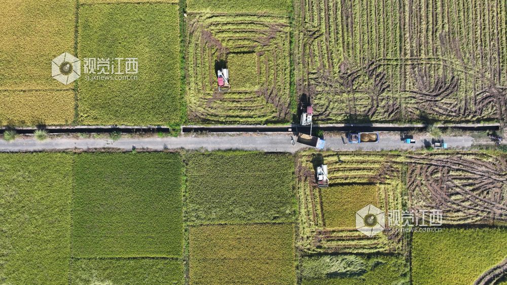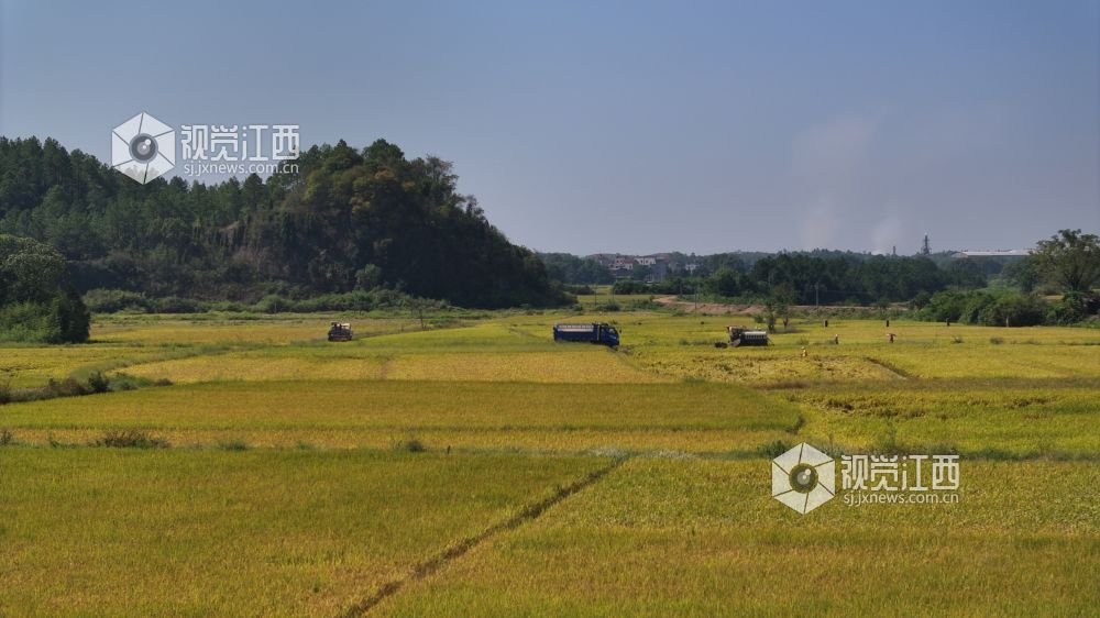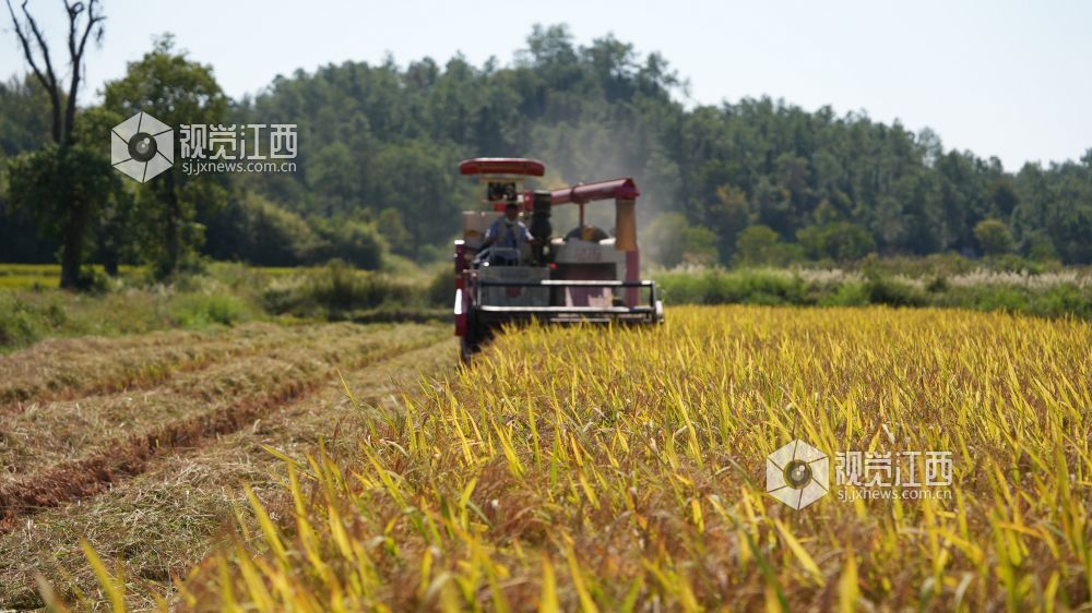 10月9日,在江西省永丰县沿陂镇沿陂村,联合收割机轰鸣穿梭,金黄稻穗被整齐切割、脱粒,稻谷如流水般涌入机仓,秸秆粉碎还田,一派繁忙的丰收景象。连日来,江西省永丰县37.6万晚稻相继成熟,进入集中收割期,处处都是一片丰收的景象。