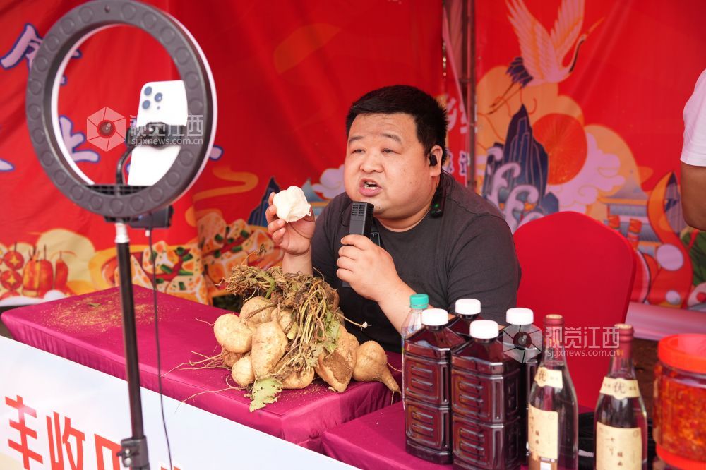 2025年9月26日,在江西省宜春市上高县田心镇农贸市场的丰收集市上,“迎国庆 庆丰收”互联网营销行业劳动和技能竞赛火热开赛,来自全县20名网络主播齐聚现场,通过直播带货PK的形式角逐奖项。