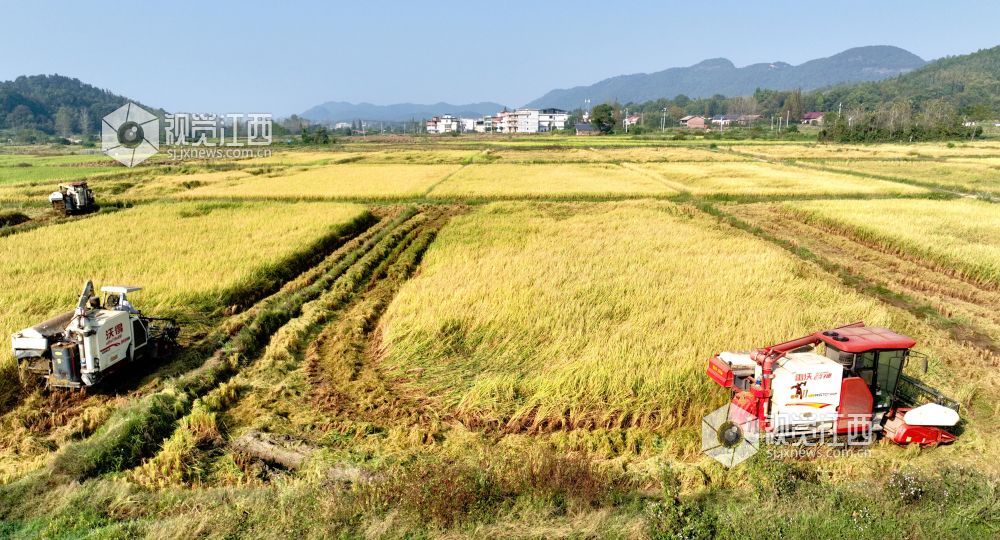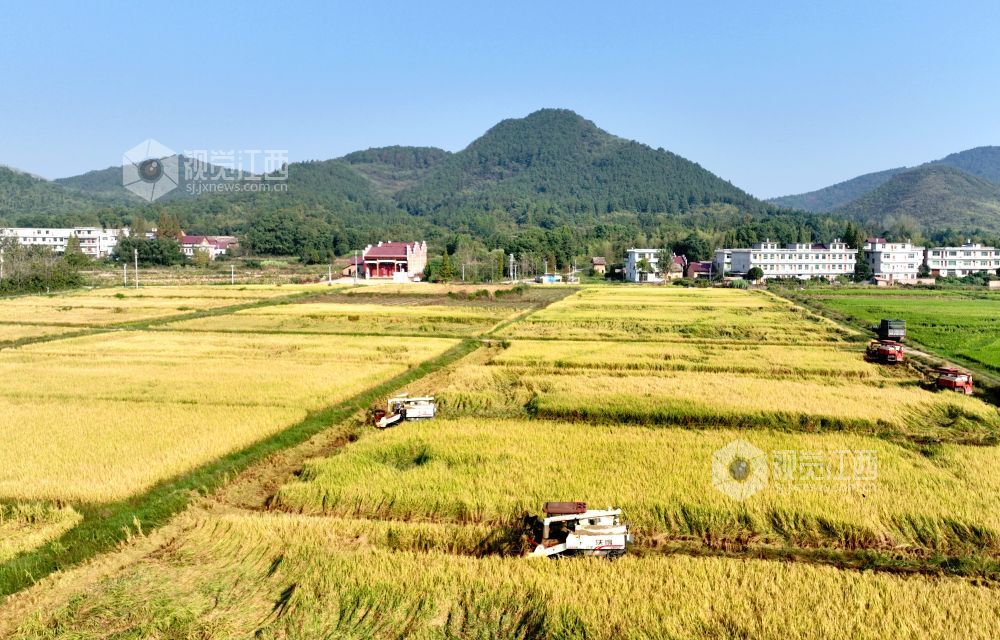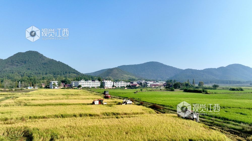 连日来,分宜县各乡镇田野染“金”,晚稻陆续成熟,饱满的谷穗压弯了稻秆,广袤的田野里稻香四溢,在金秋暖阳的照耀下,金灿灿的,甚是喜人。当地村民抢抓晴好天气加紧收割、晾晒稻谷,确保颗粒归仓,田间地头一派繁忙的劳作景象。