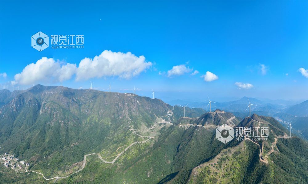 2025年10月13日,江西省遂川县禾源镇山间,一排排白色风力发电机伫立在群山之巅,在蓝天与青山的映衬下显得格外醒目。遂川县依托丰富的风能等绿色能源资源,大力发展清洁能源产业,风电等清洁能源项目在山间有序推进,既守护住了生态之美,又为当地经济发展注入绿色动力,走出一条生态与发展共赢的道路。