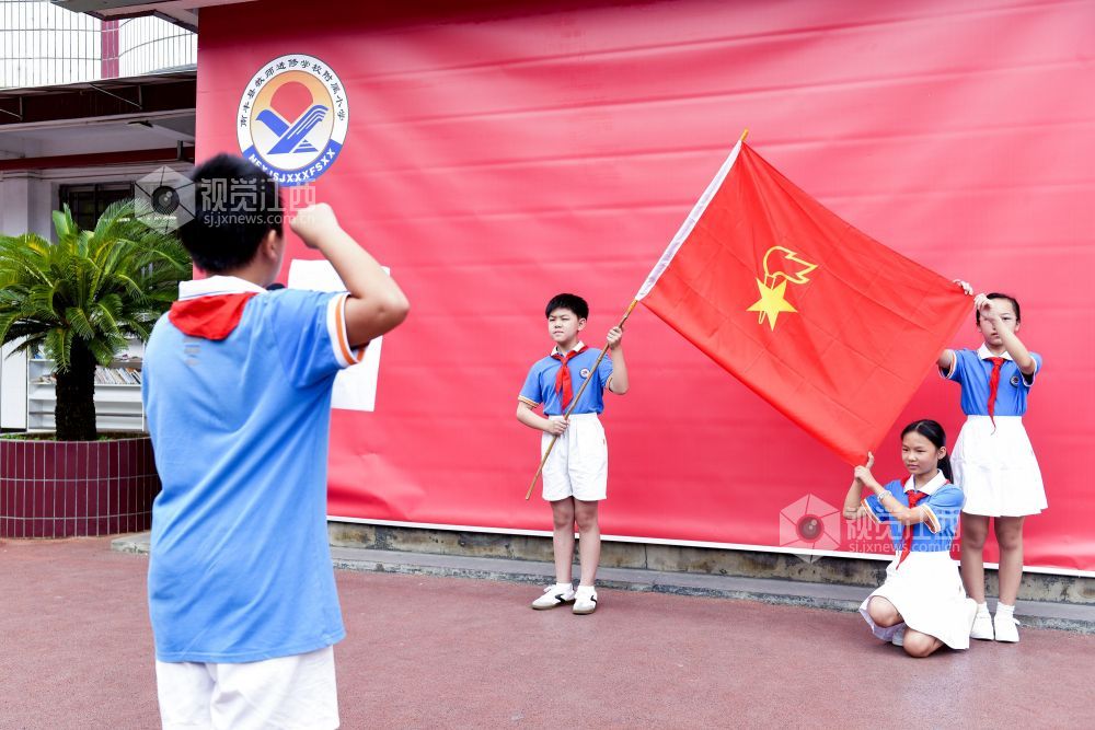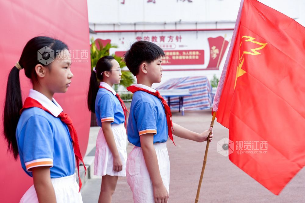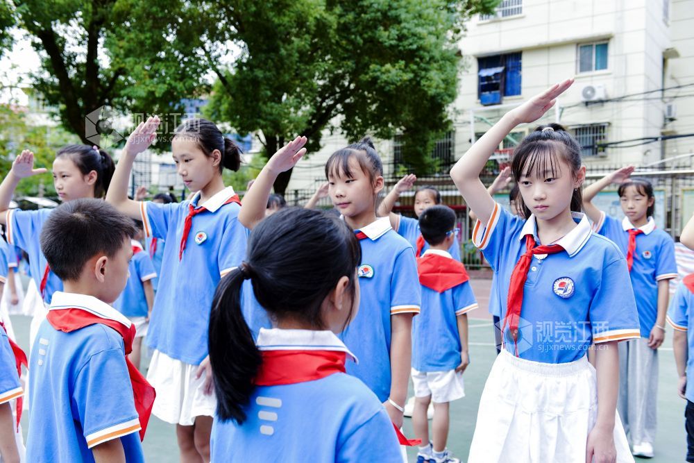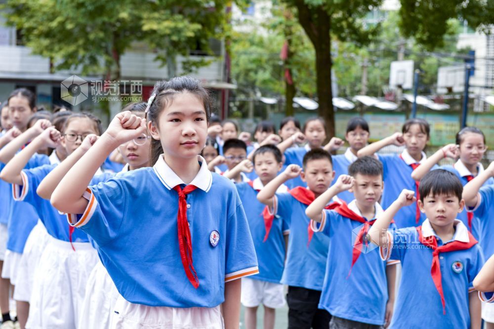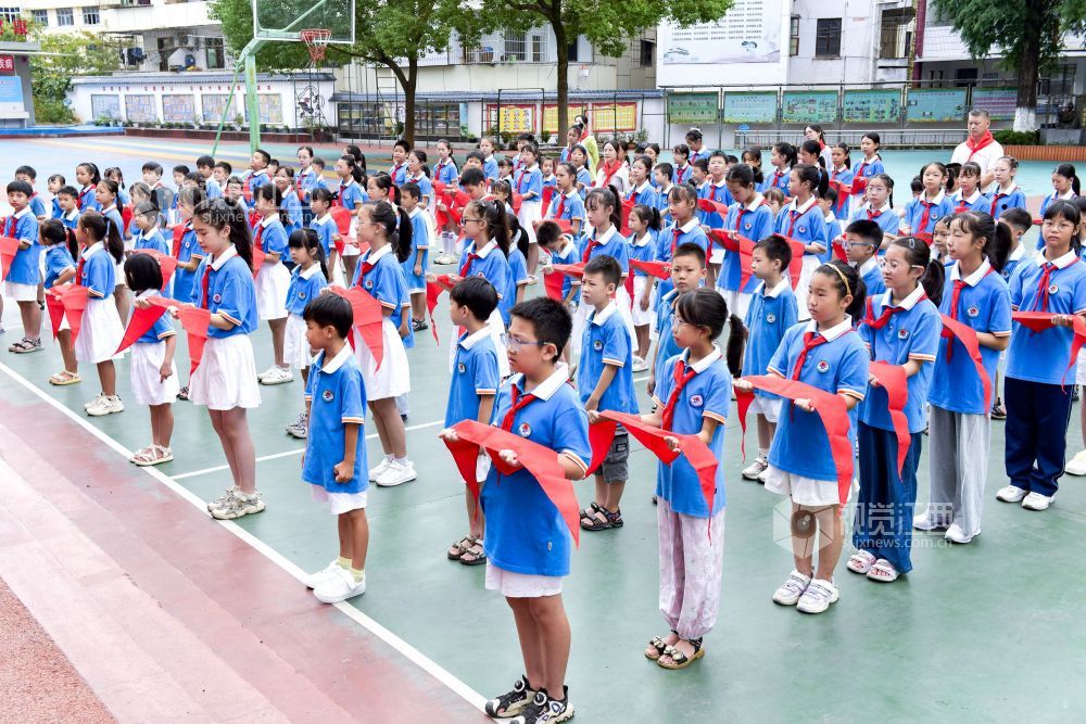 活动在国歌声中拉开帷幕,五星红旗冉冉升起,少先队员行队礼,全体师生高唱国歌,爱国情怀在每个人心中激荡。随后,中国少年先锋队队旗在出旗曲中缓缓入场,少先队员目光坚定,神情肃穆,展现了新时代少先队员的精神风貌。
