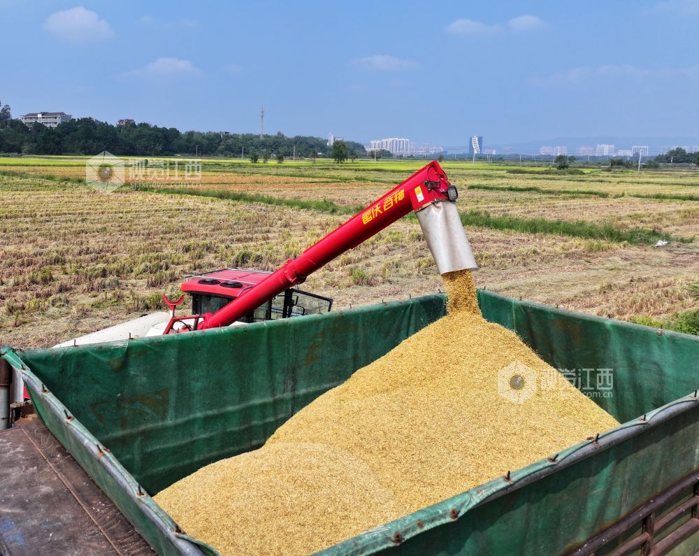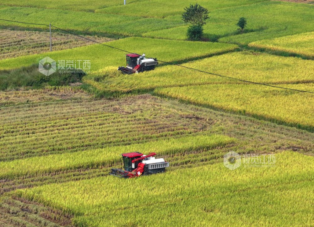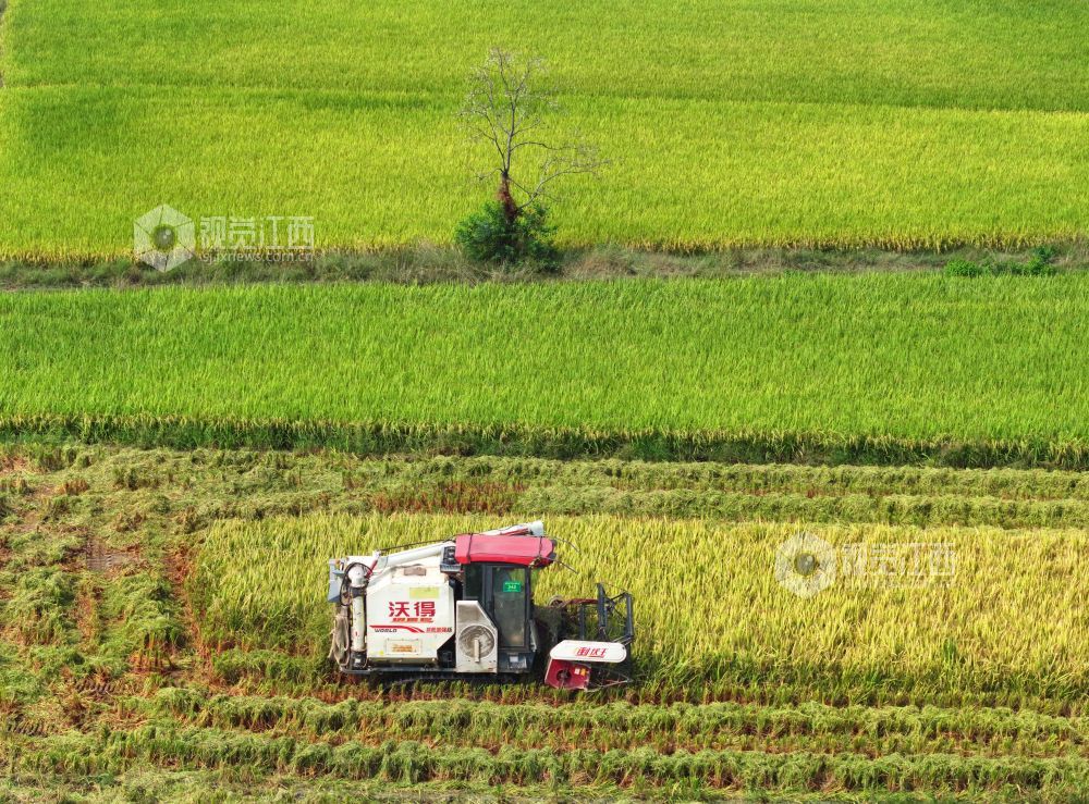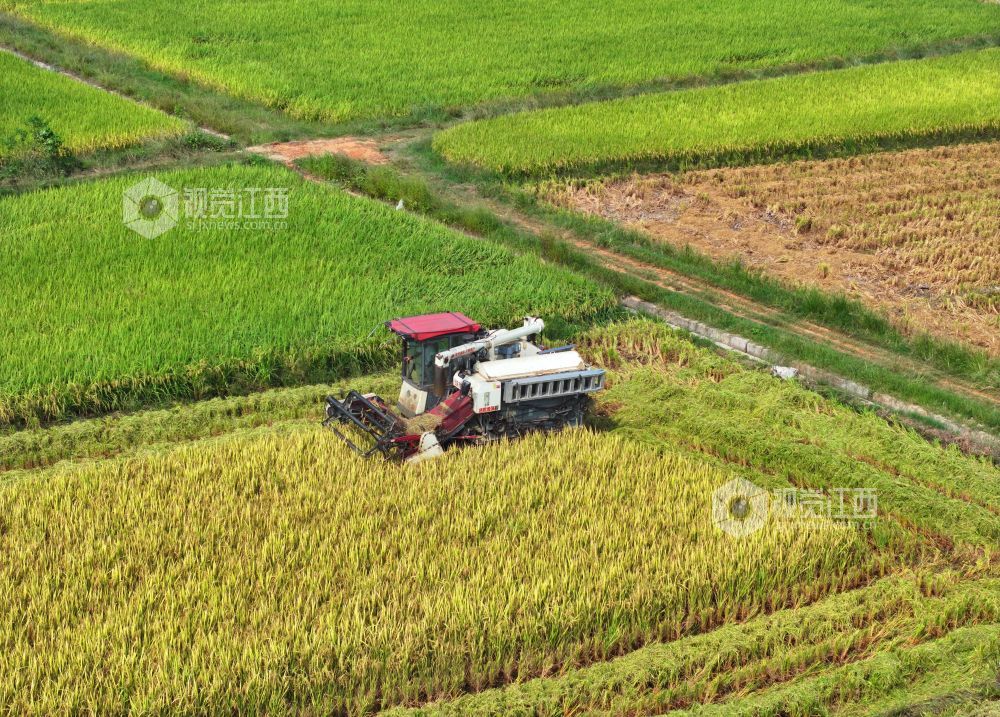 10月17日,江西省吉安市泰和县塘洲镇永昌村,农民驾驶收割机正在抢收晚稻。