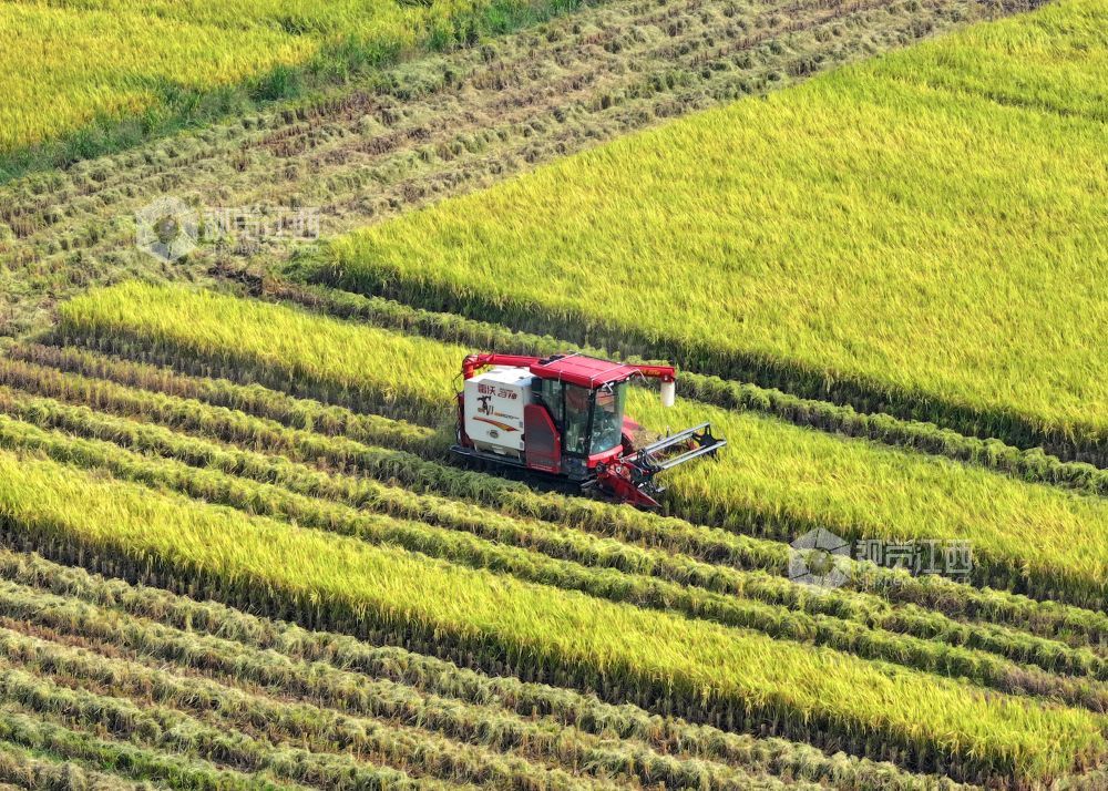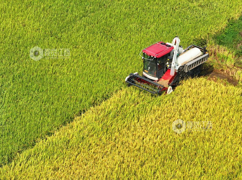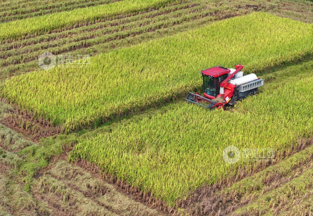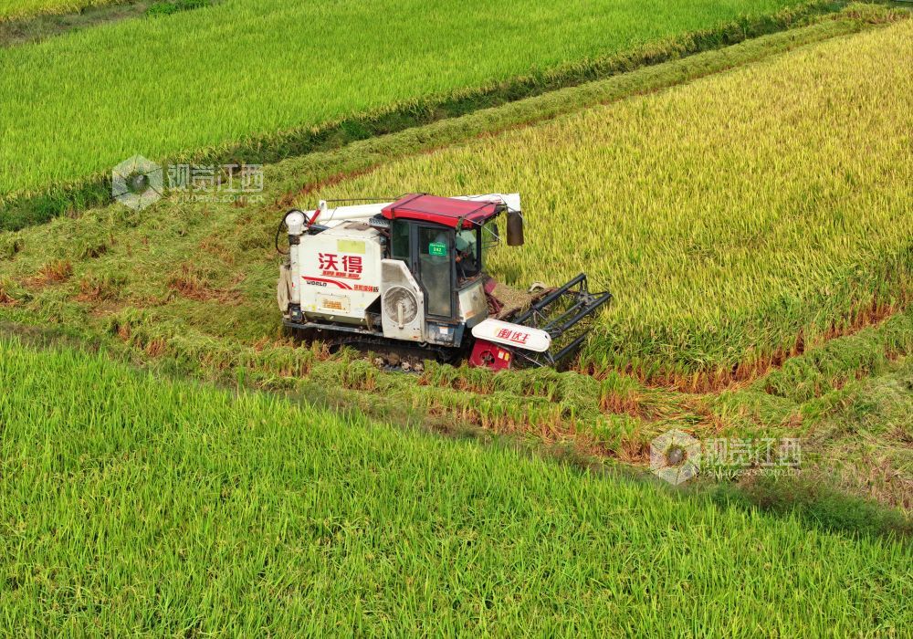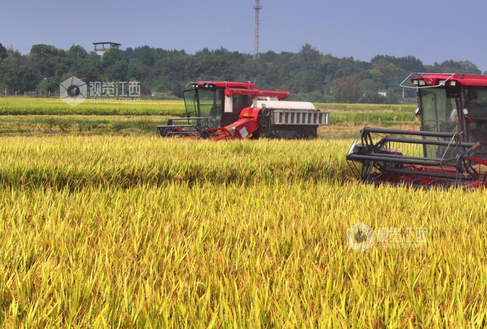 10月17日,江西省吉安市泰和县塘洲镇永昌村,农民驾驶收割机正在抢收晚稻。